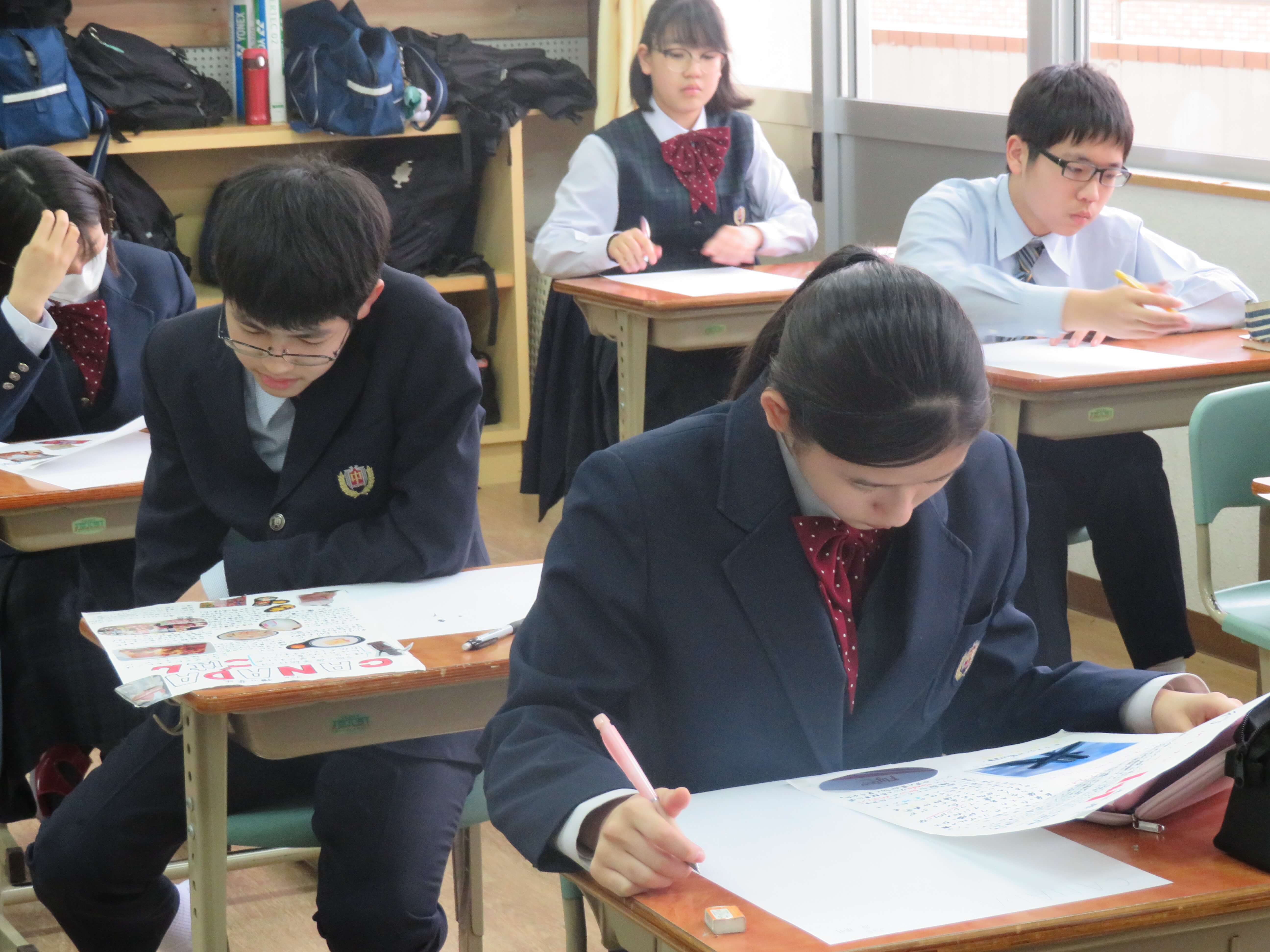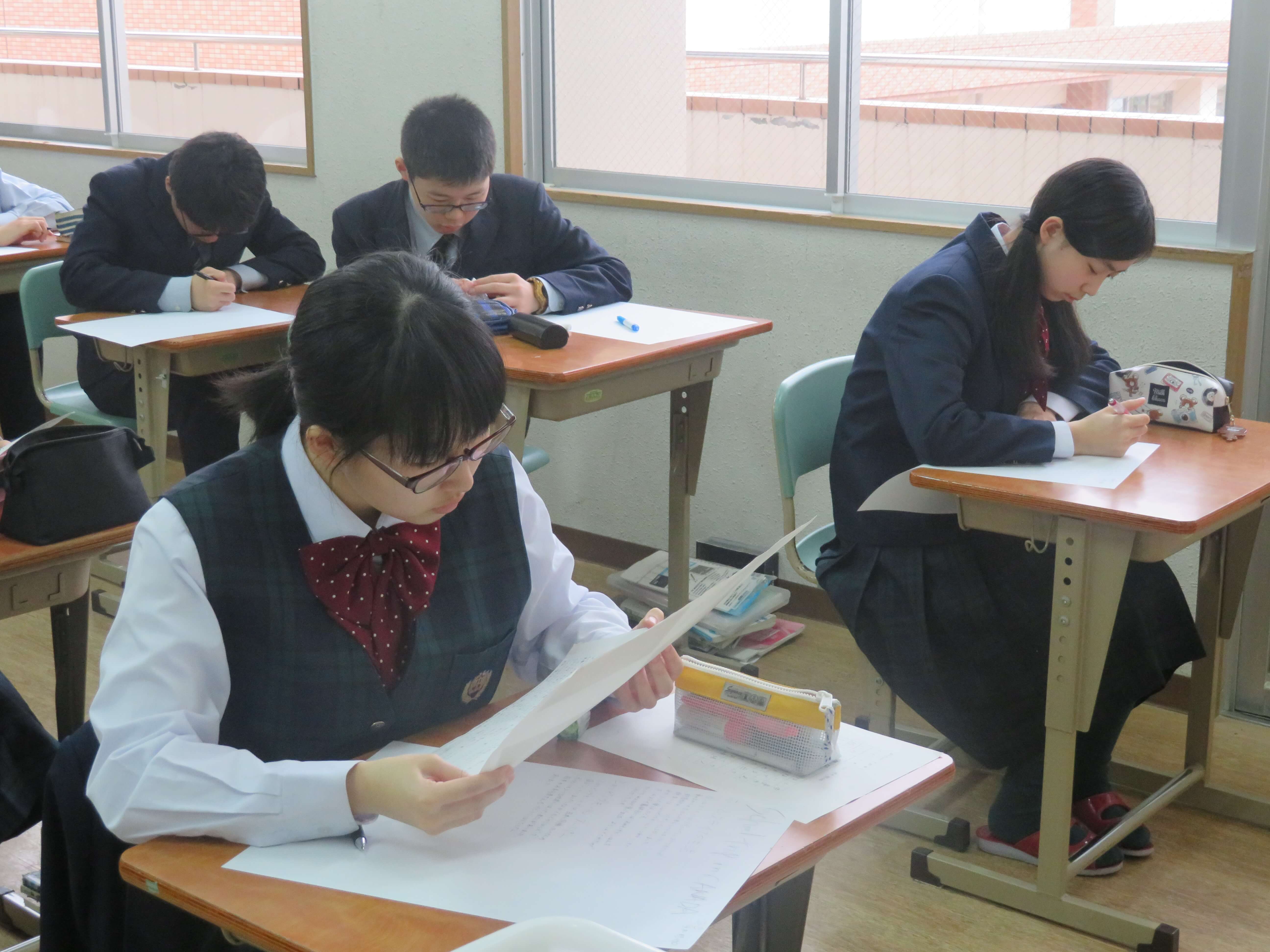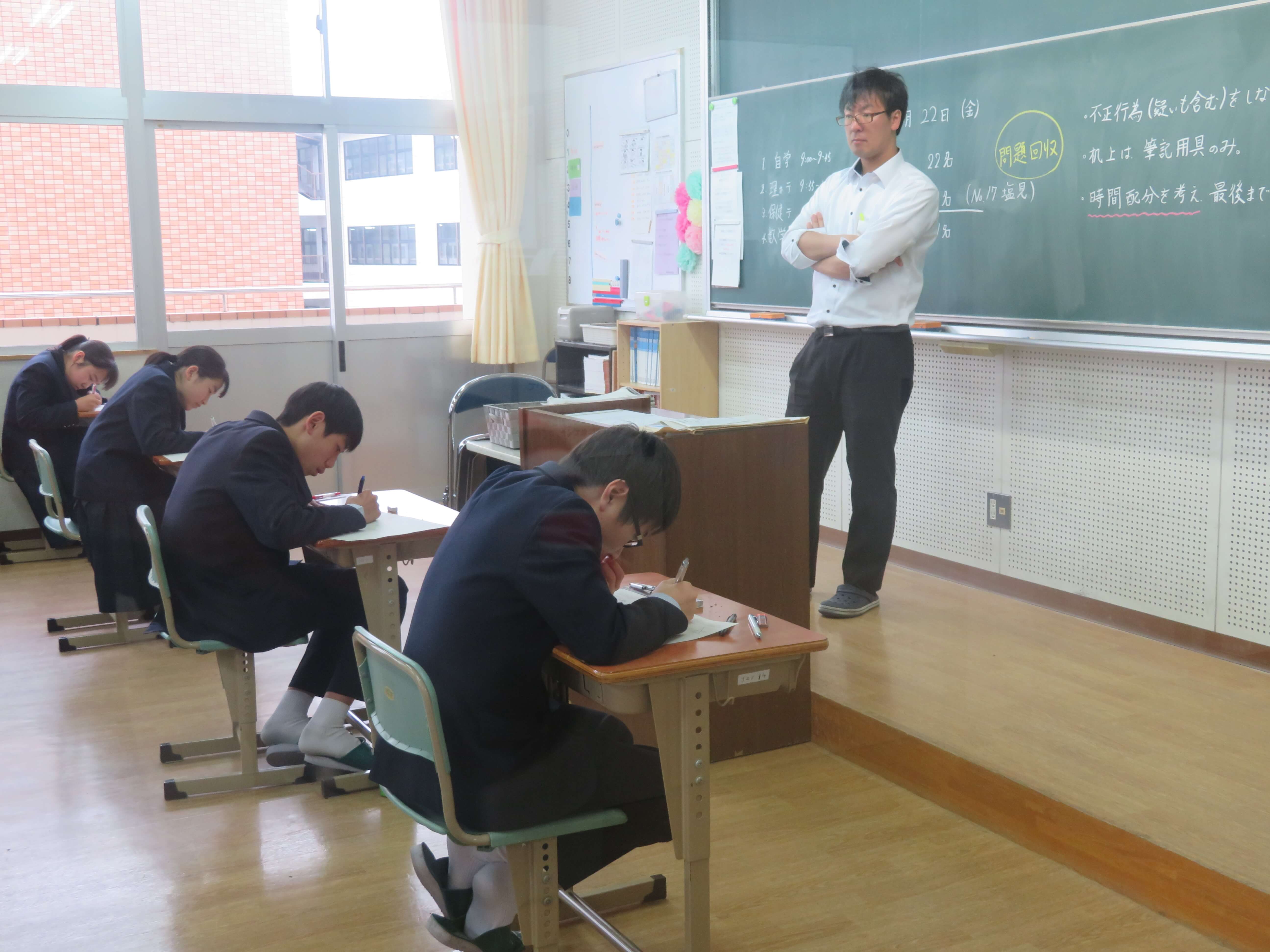本日、第5回定期考査(4日目)が終了しました。4日間ベストを尽くすことが出来ましたか?明日からは、気持ちを切り替えて次の目標に向かって頑張りましょう! J1・J2の皆さん、4日間お疲れ様でした! J3は、修学旅行のまとめを行いました。
