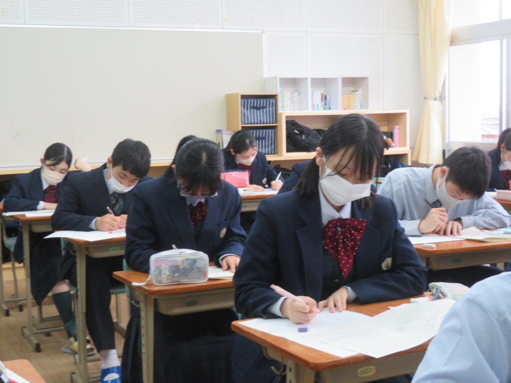 明日は今の教室で過ごす最後の日となります。いい締めくくりができるよう最後まで集中して授業に取り組みましょう。