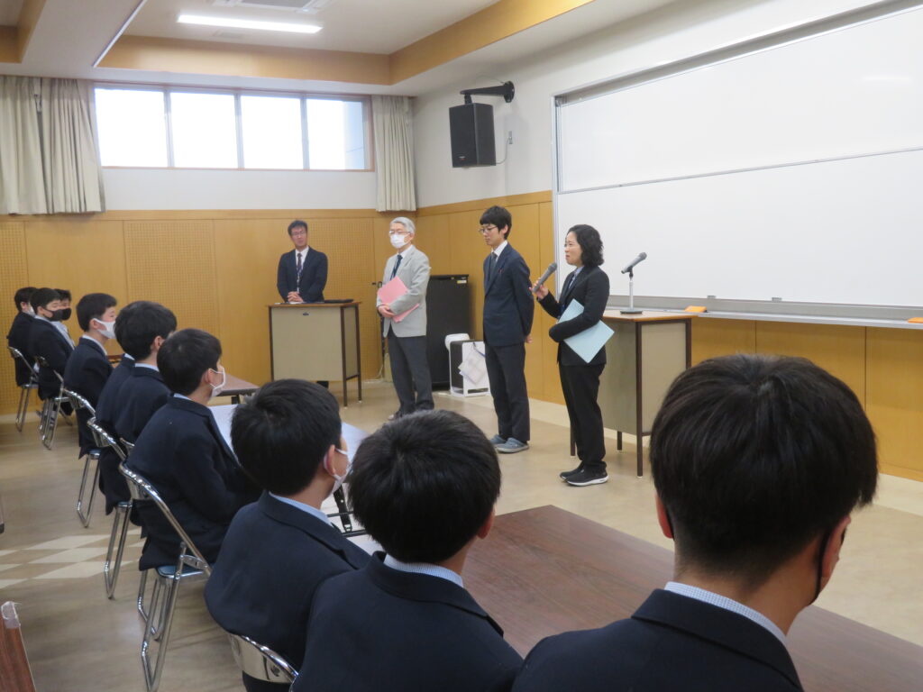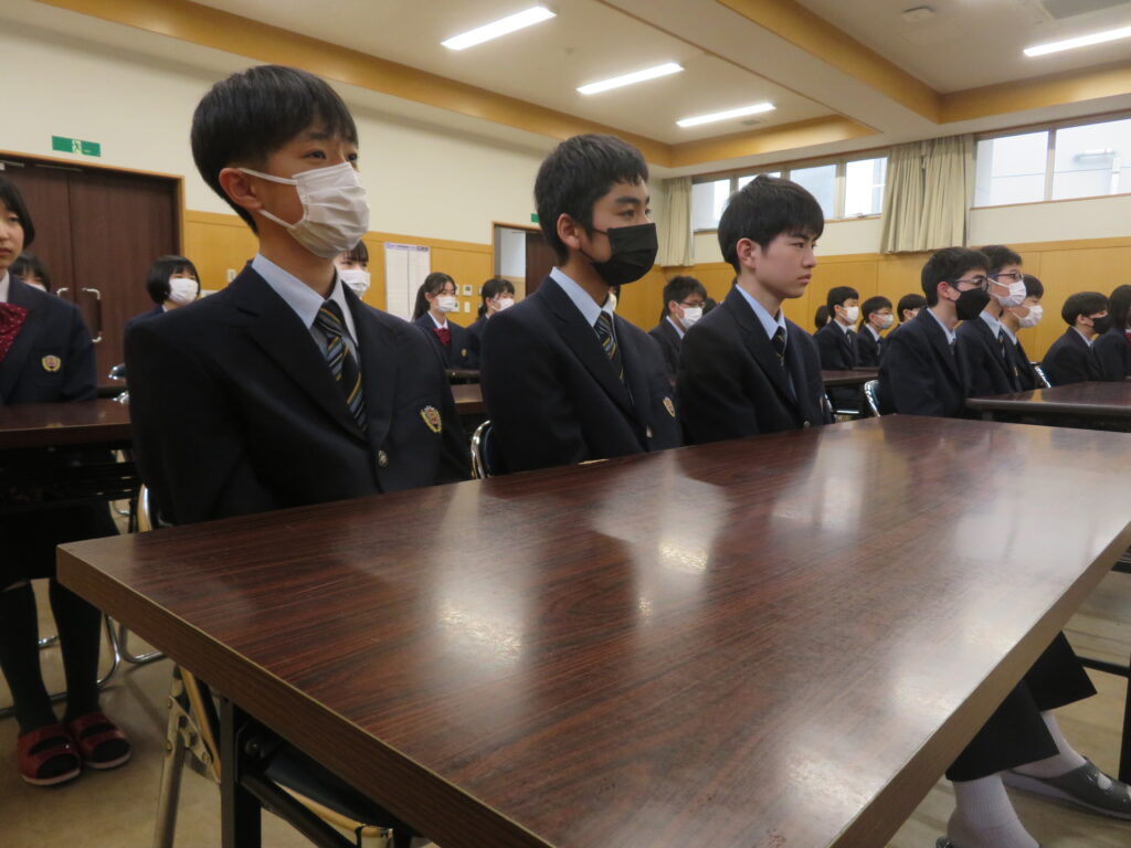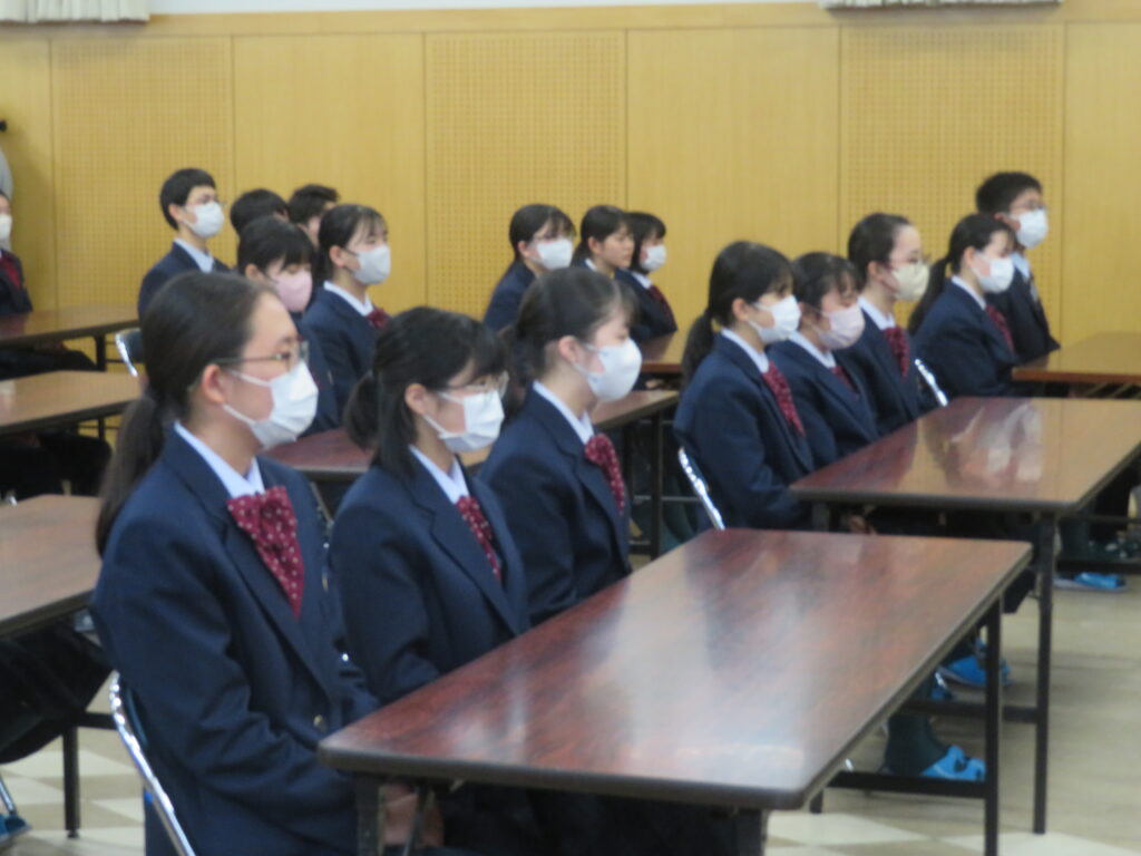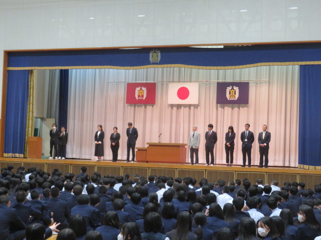 その後の中学部集会でも、教頭先生をはじめ先生方から新年度を迎えて生徒たちにお話しがありました。 また、今年度新しく、黒木敏浩先生(国語)、大萱大輔先生(数学)、マックスウェル桂子先生(英語)が中学部に来てくださいました。