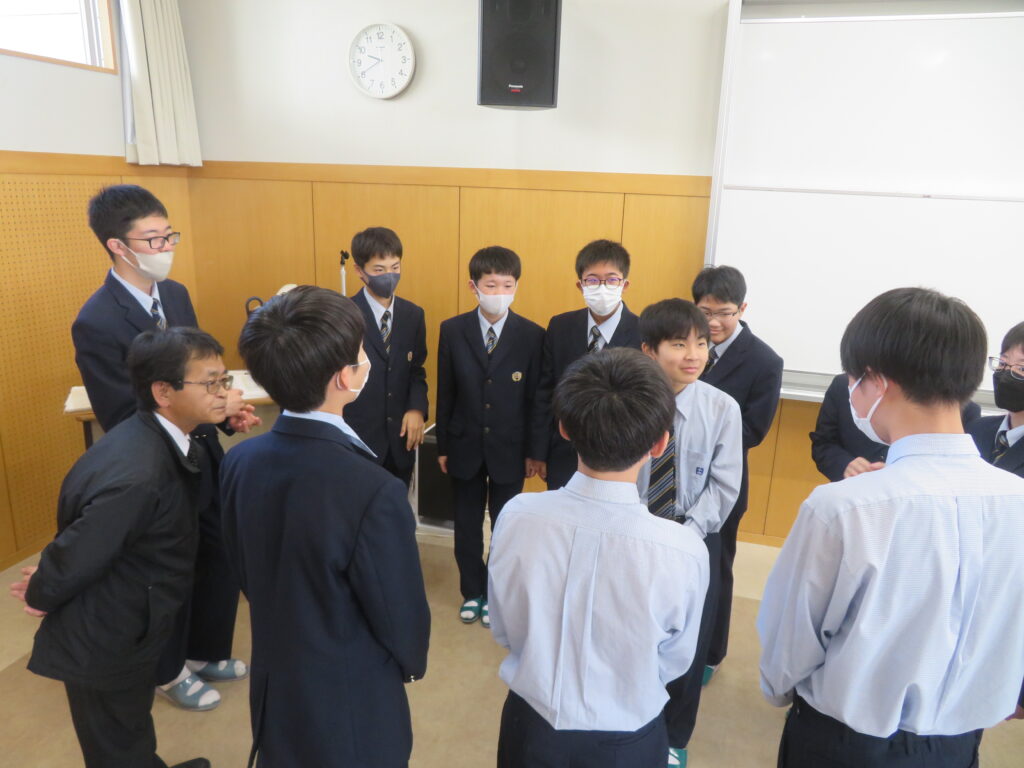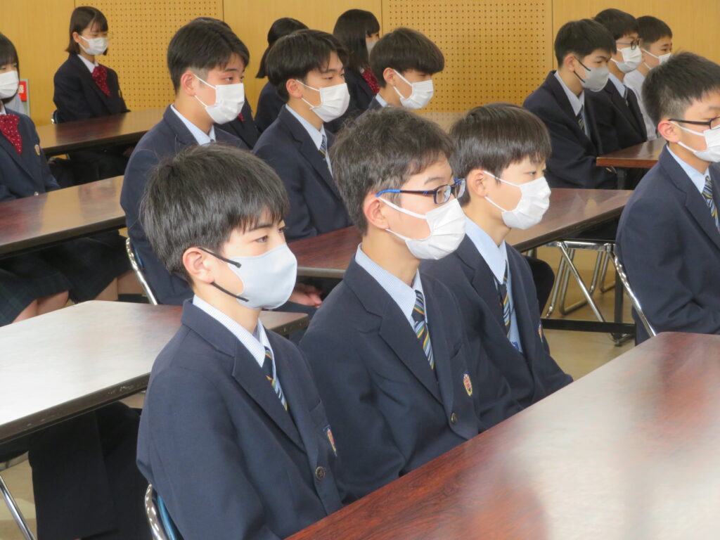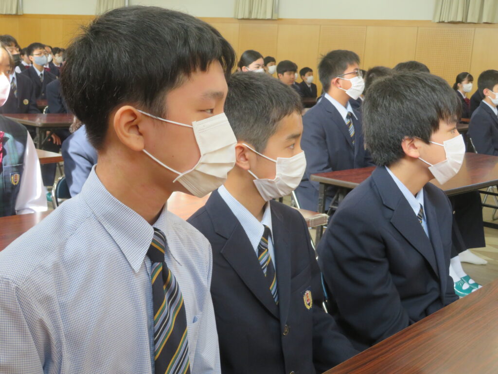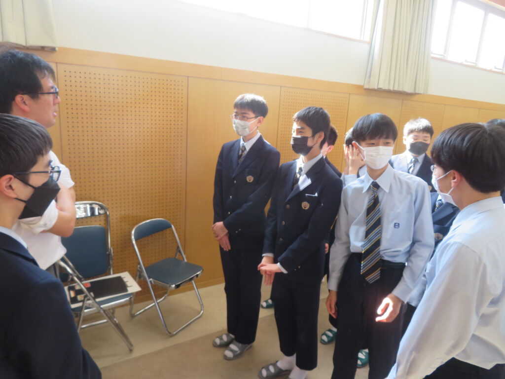 本日、J2・J3生のファミリー対面式を行いました。各班のチューターの先生の紹介があり、その後、それぞれ班に分かれて、自己紹介や清掃場所の確認などを行いました。