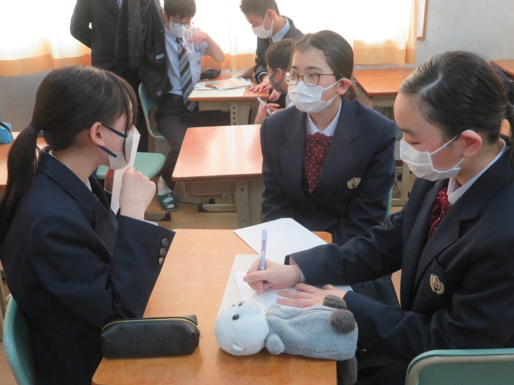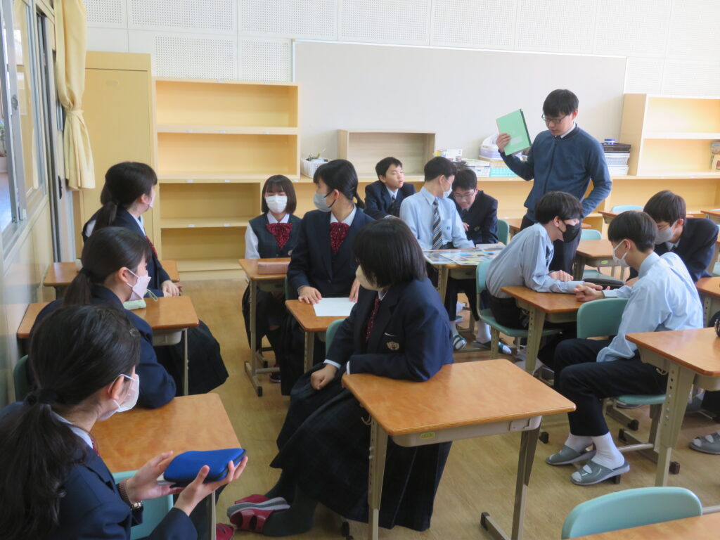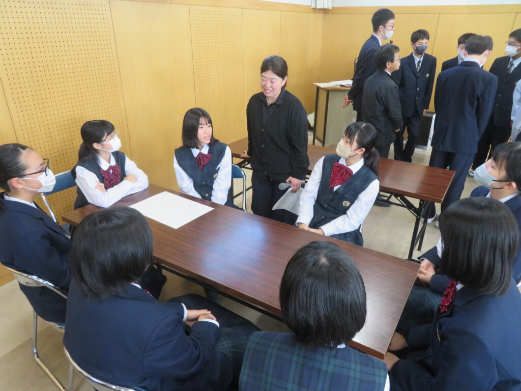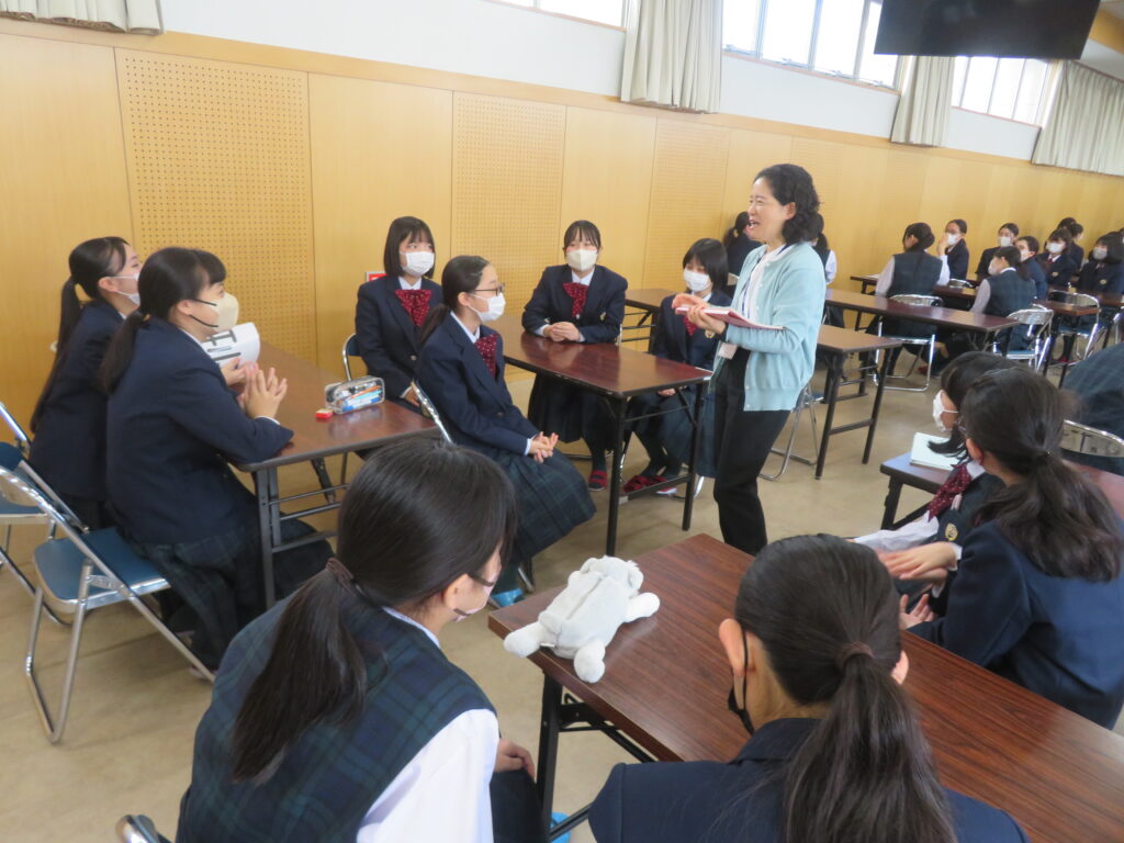 本日、J2・J3生のファミリー対面式を行いました。各班のチューターの先生の紹介があり、その後、それぞれ班に分かれて、自己紹介や清掃場所の確認などを行いました。