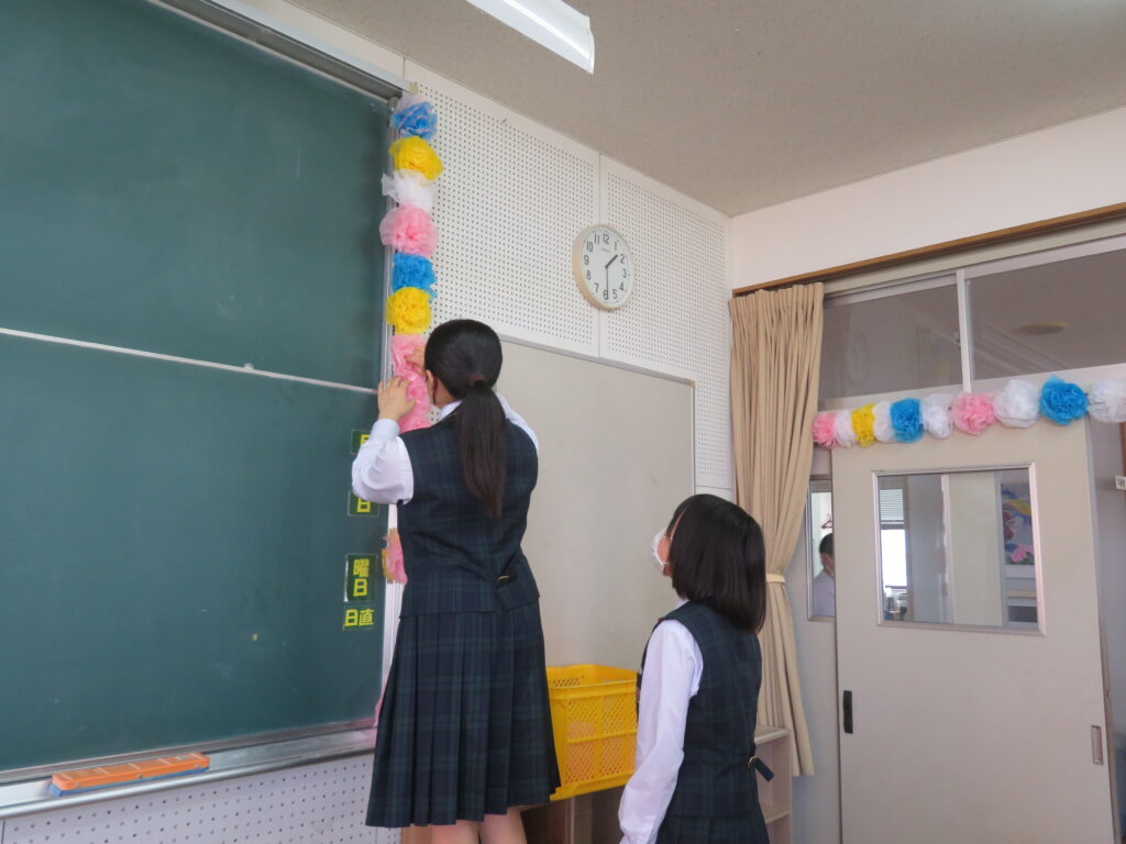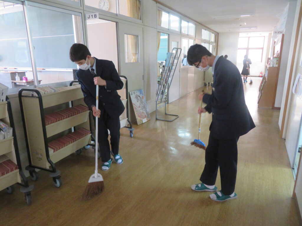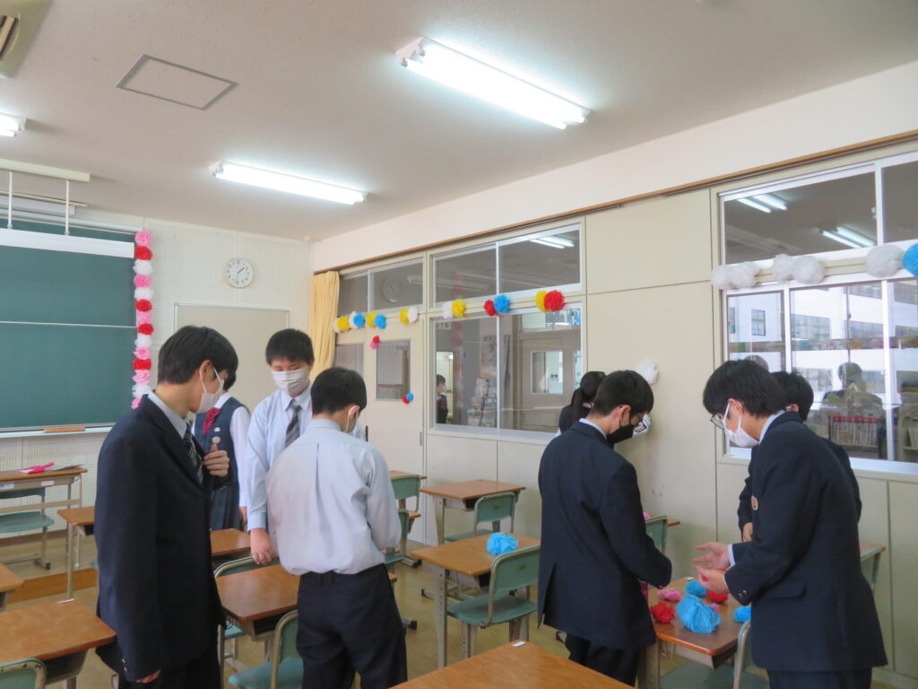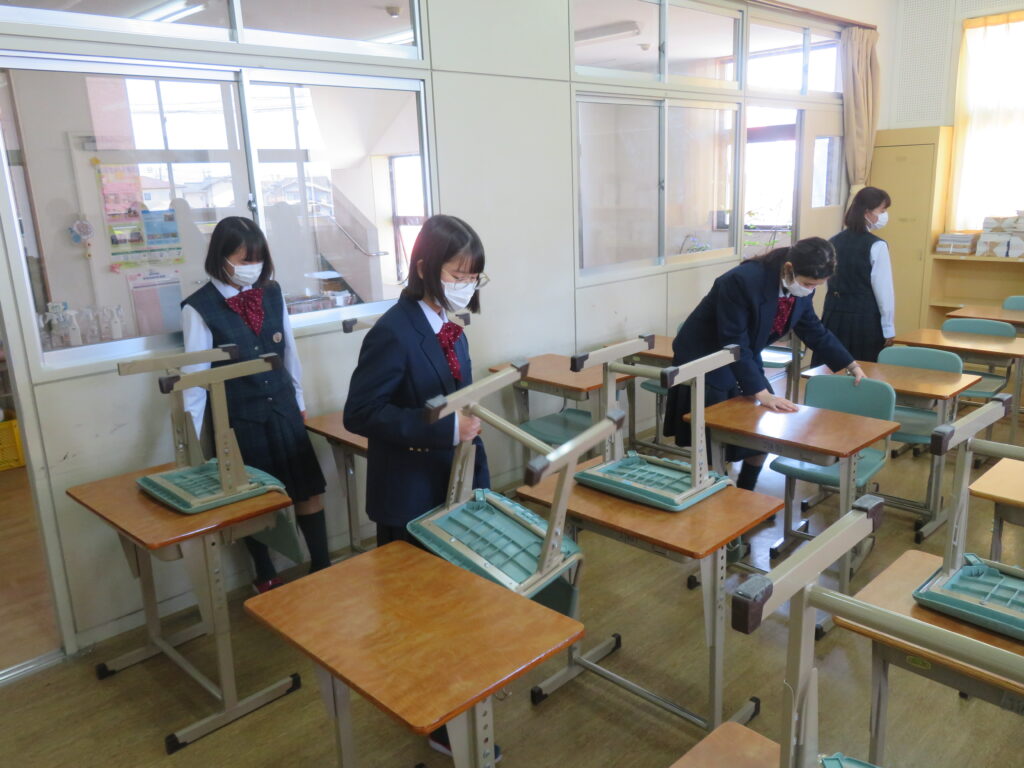 午後は、新J1生の教室設営等を行いました。J2生が清掃を担当し、J3生が教室の設営担当です!