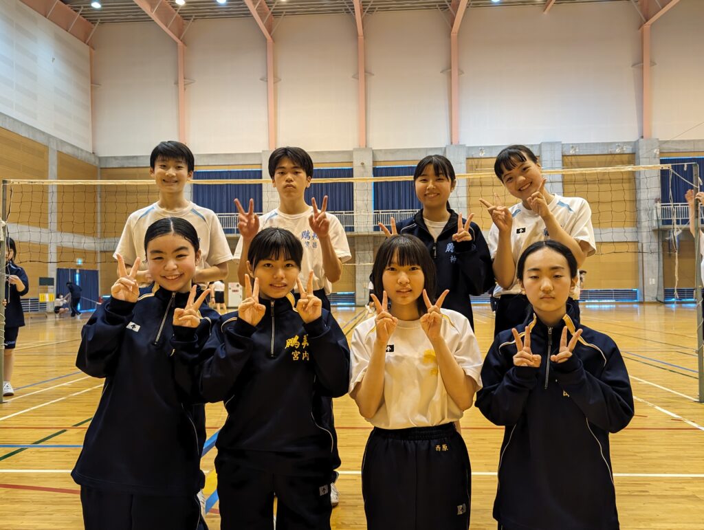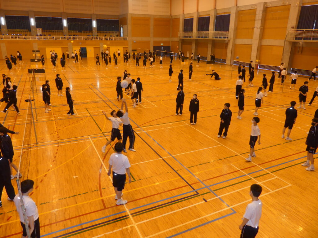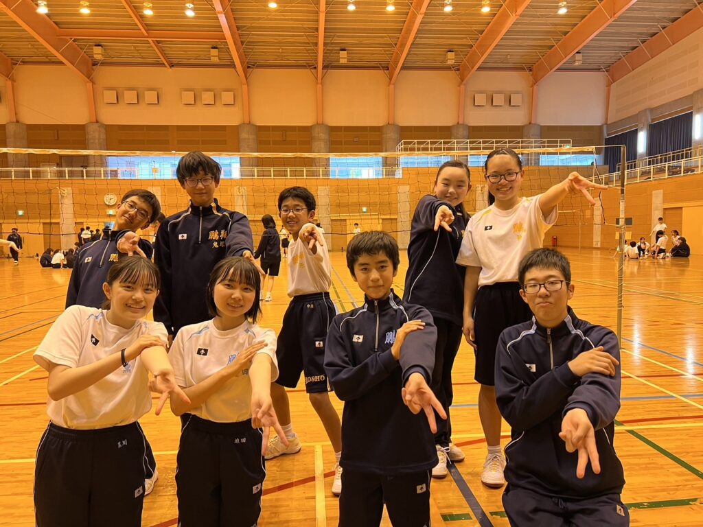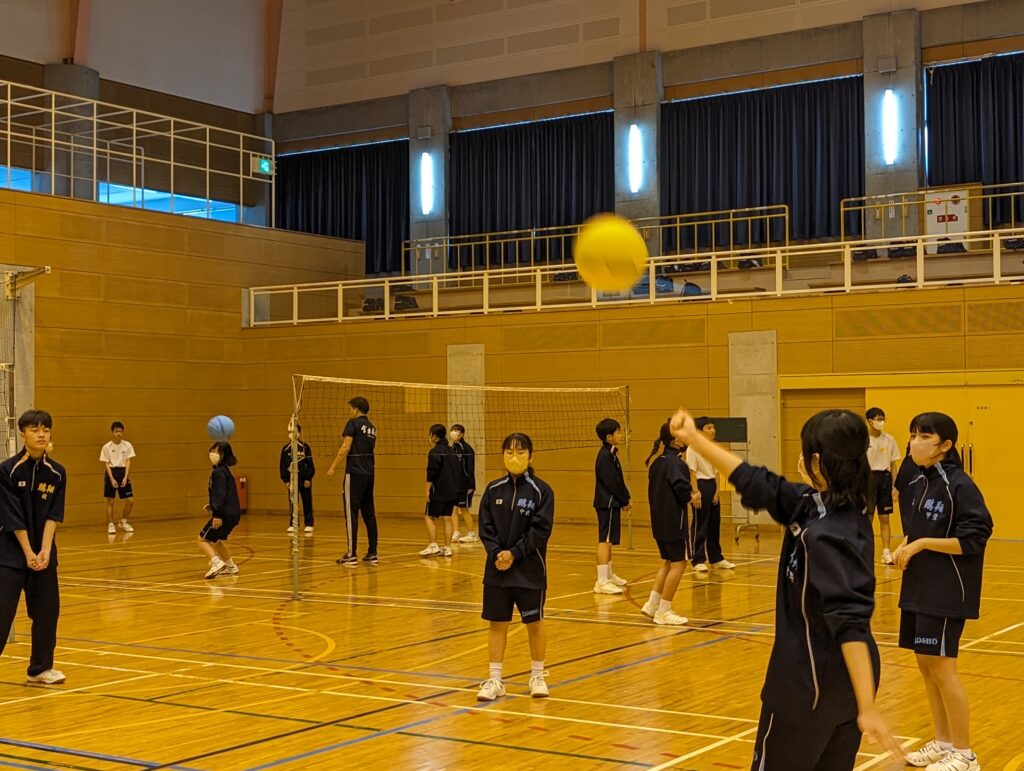 J2、J3生で校外学習を行いました。北郷体育館(さくらアリーナ)にて、学年混合のミニバレー大会を開催しました。