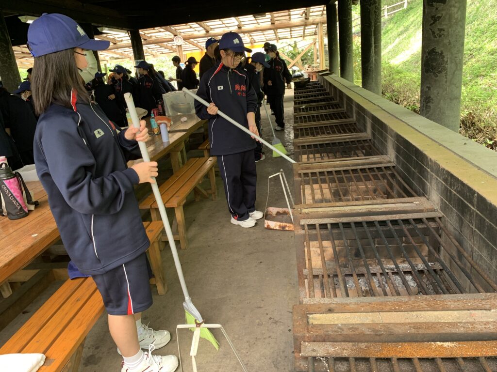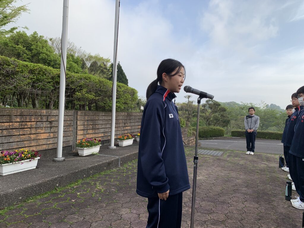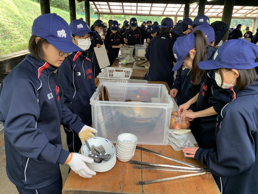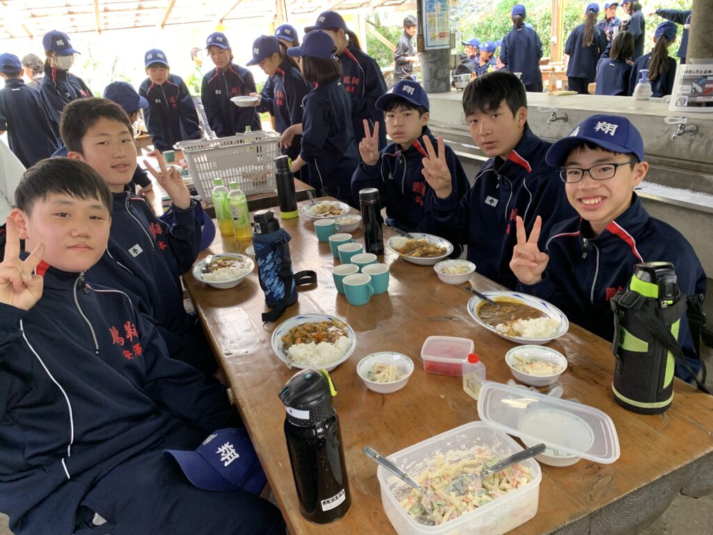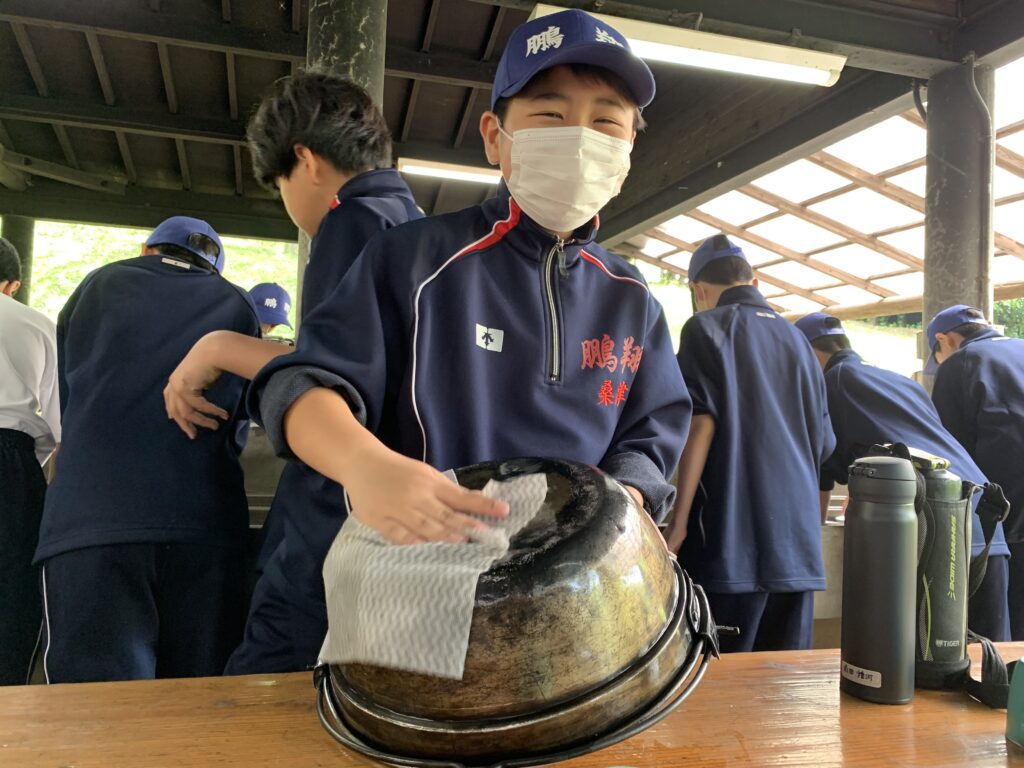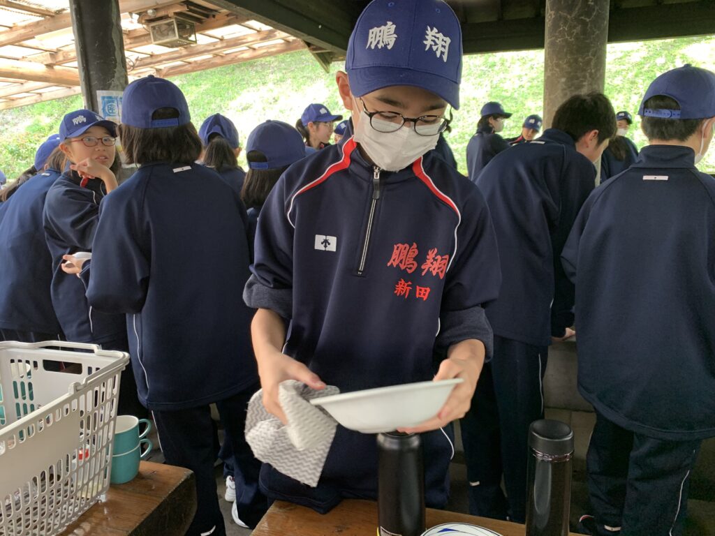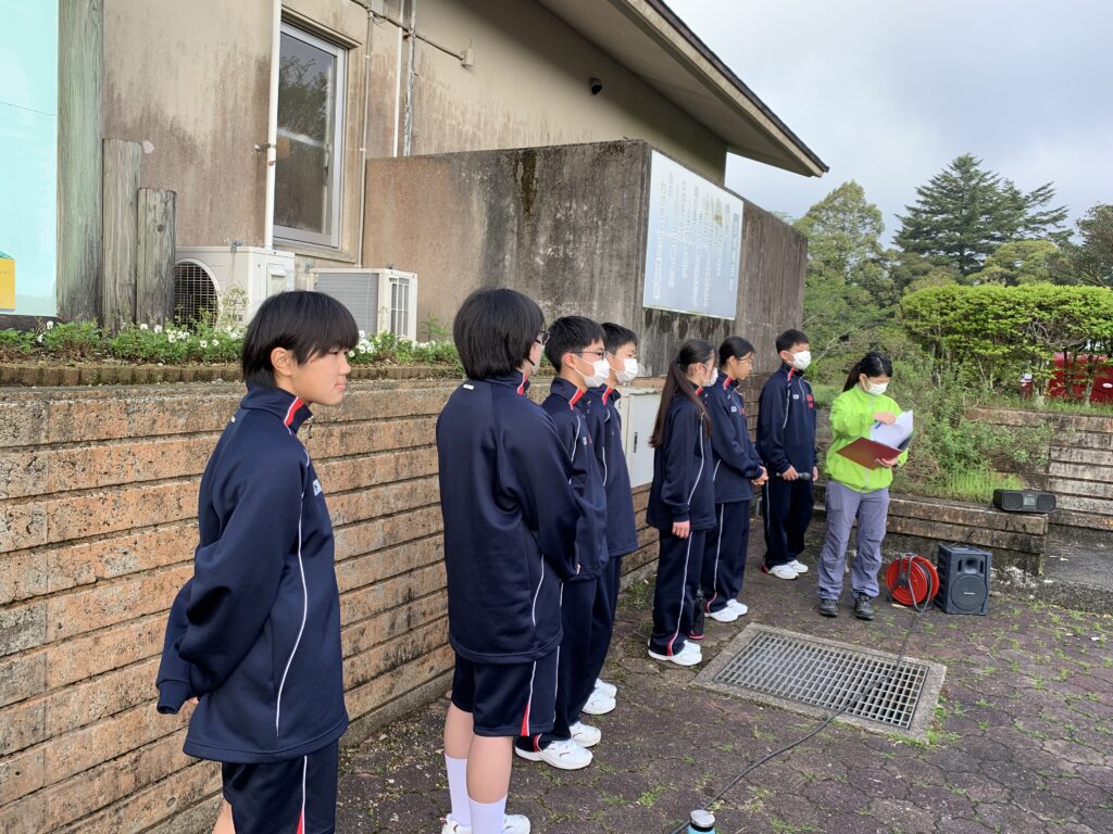 野外炊飯後、活動終了式を行いました。生徒代表の言葉を河野さんに述べてもらいました。