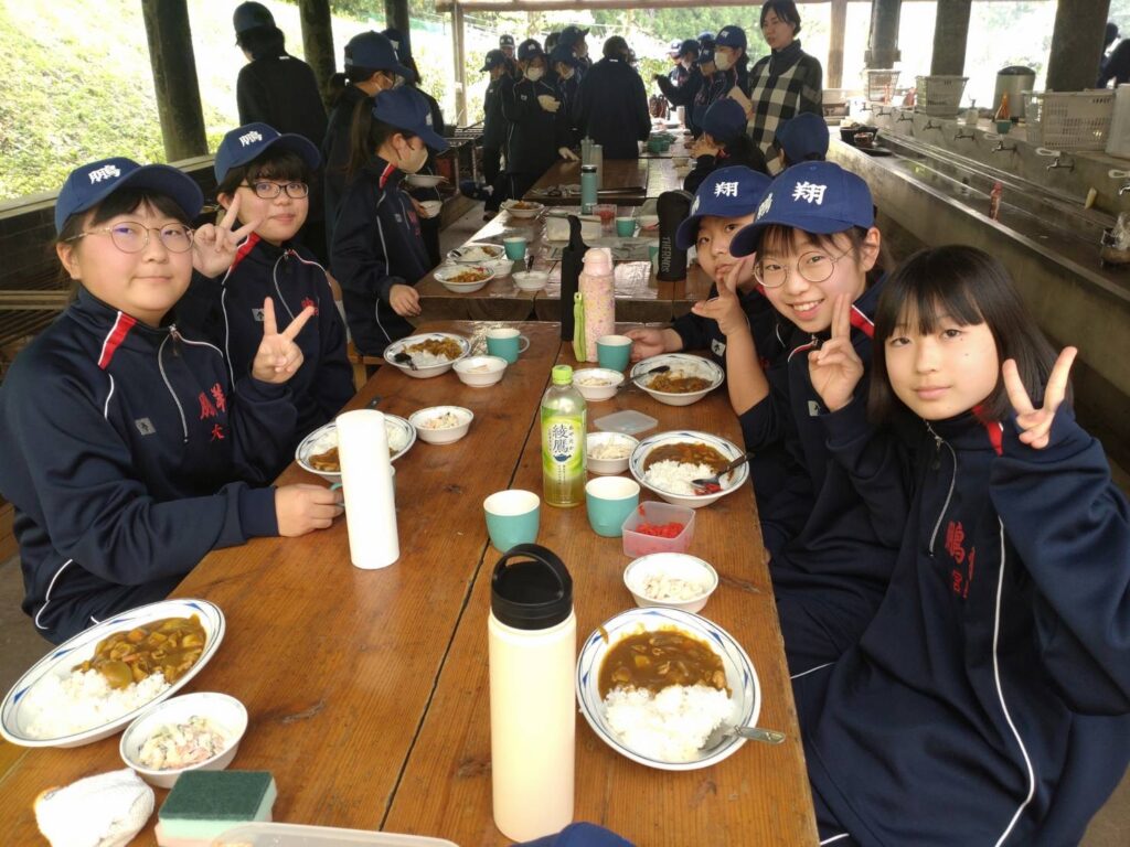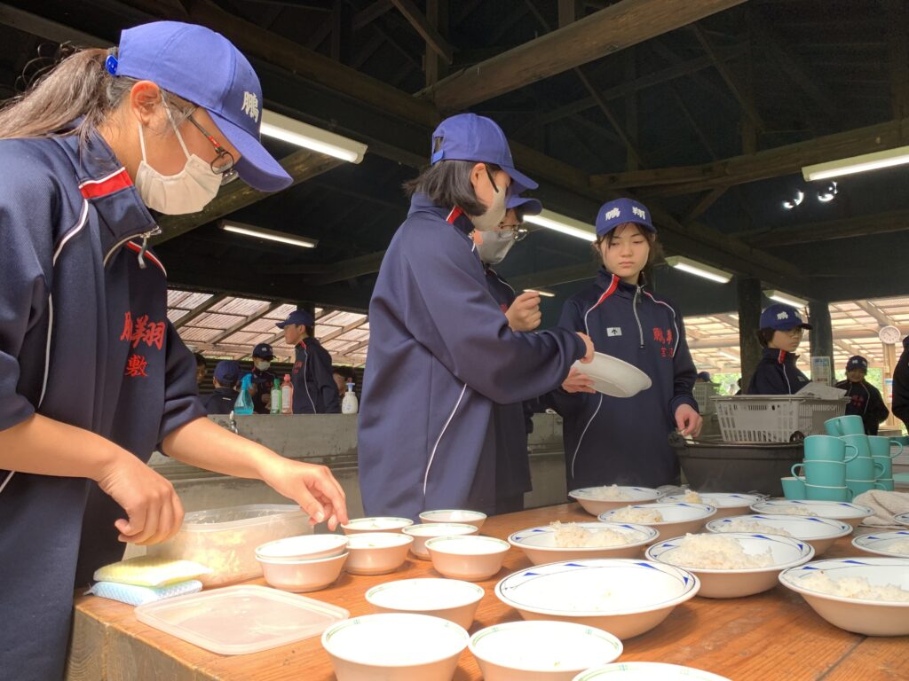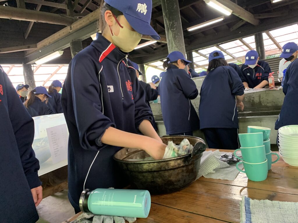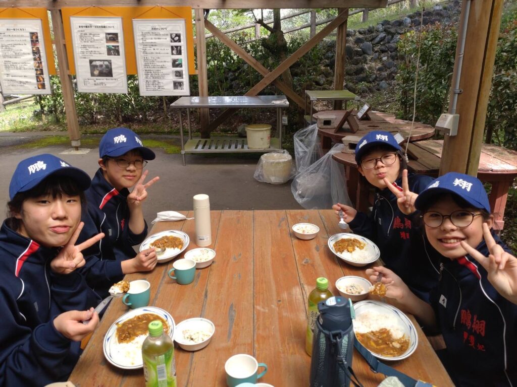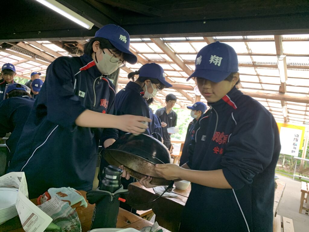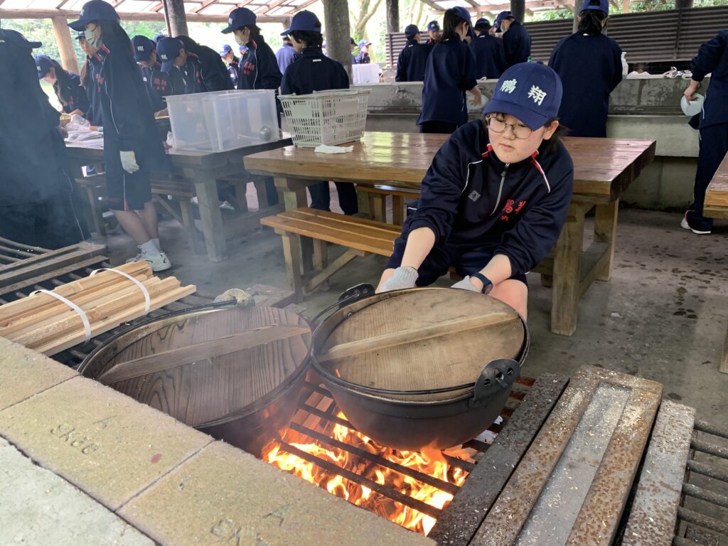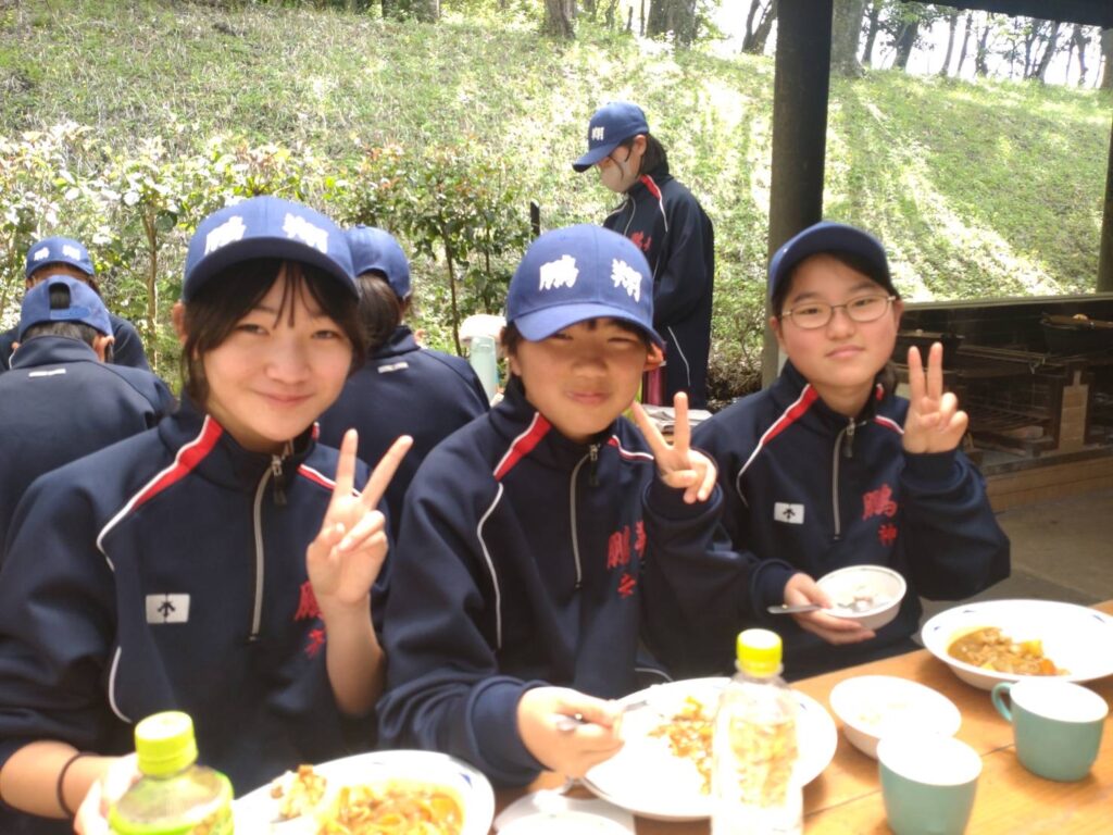 野外炊飯後、活動終了式を行いました。生徒代表の言葉を河野さんに述べてもらいました。
