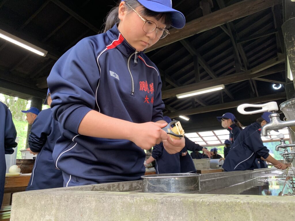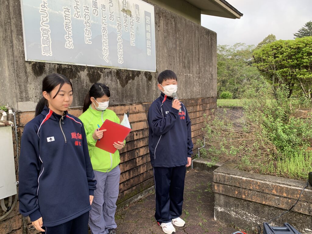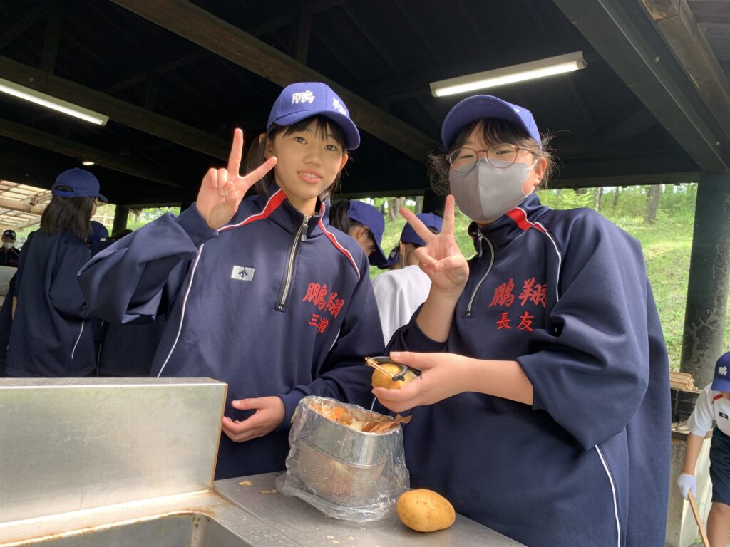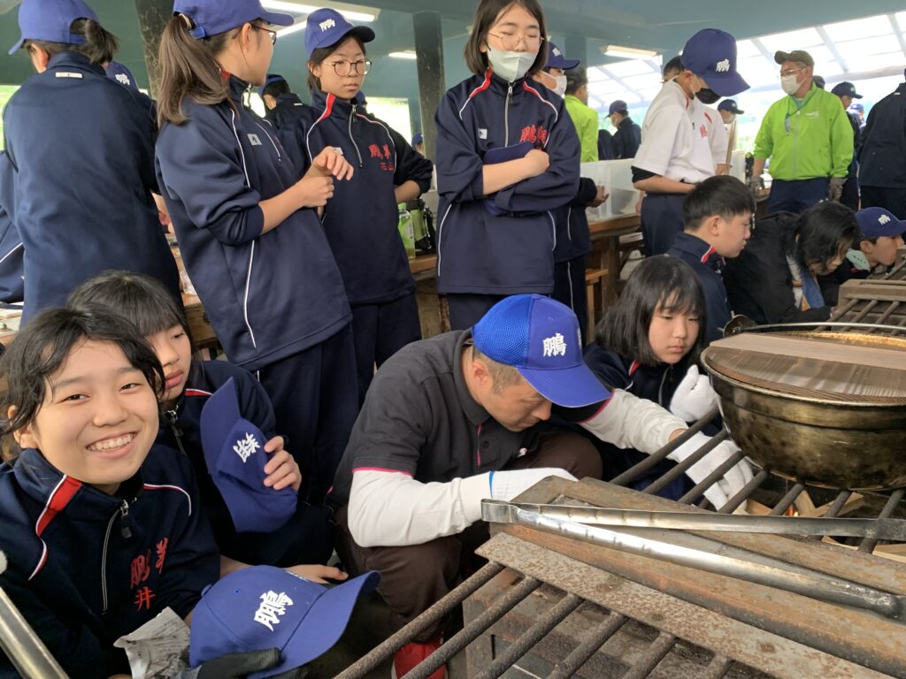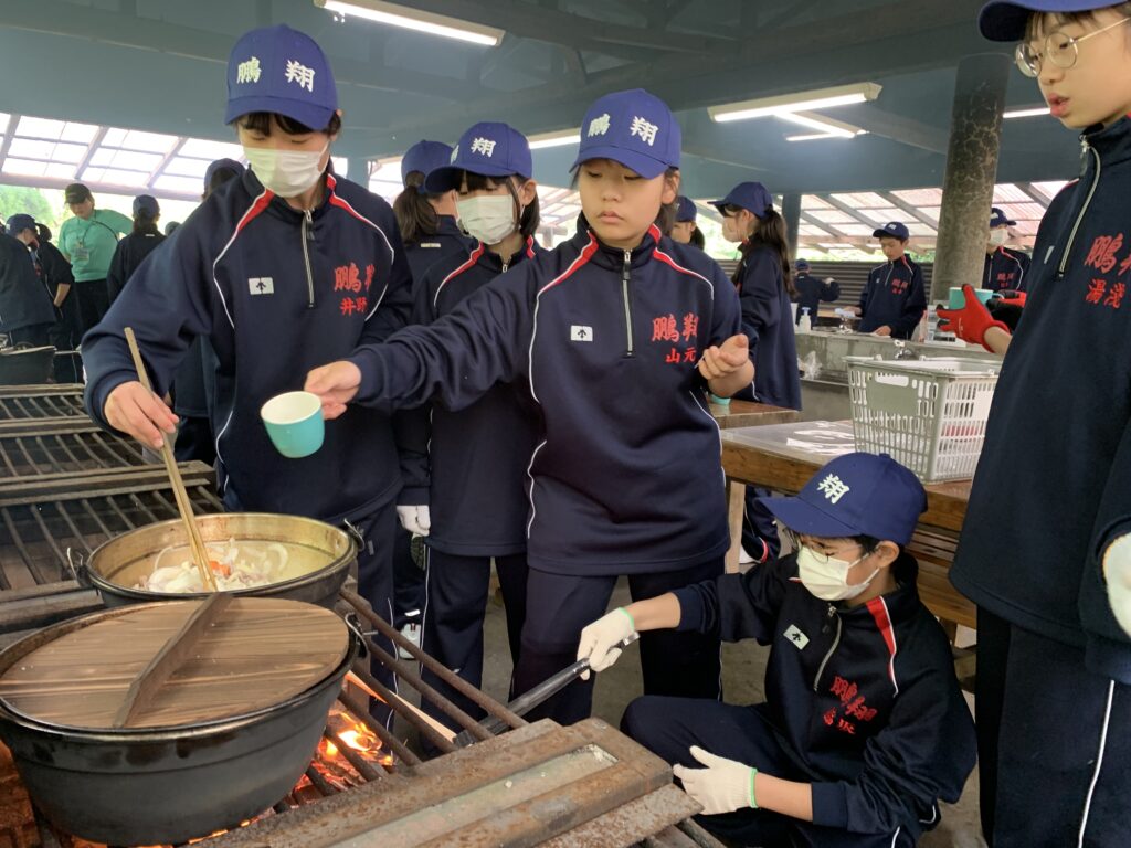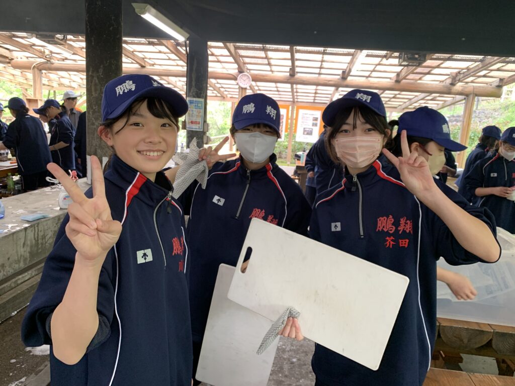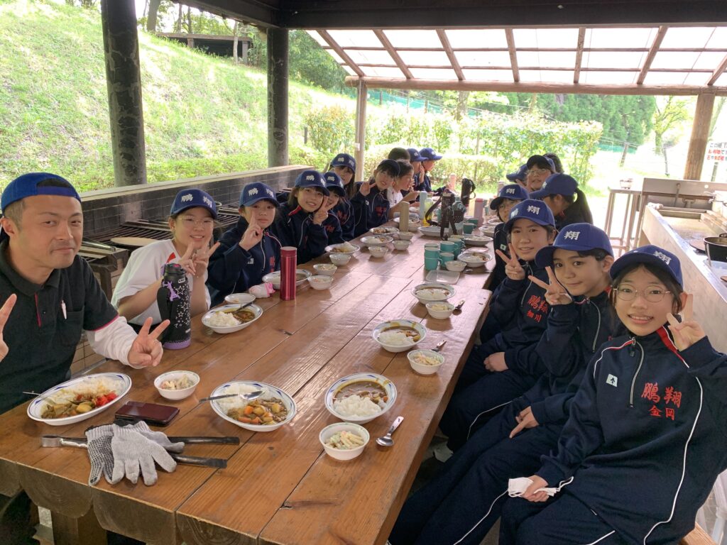 野外炊飯後、活動終了式を行いました。生徒代表の言葉を河野さんに述べてもらいました。