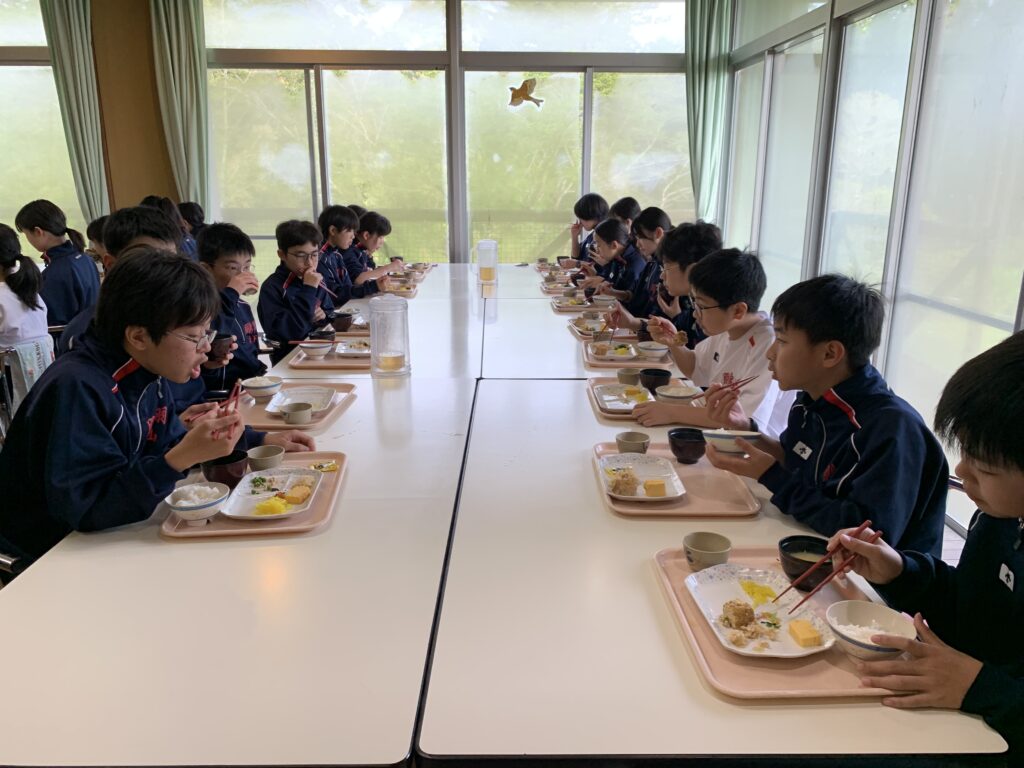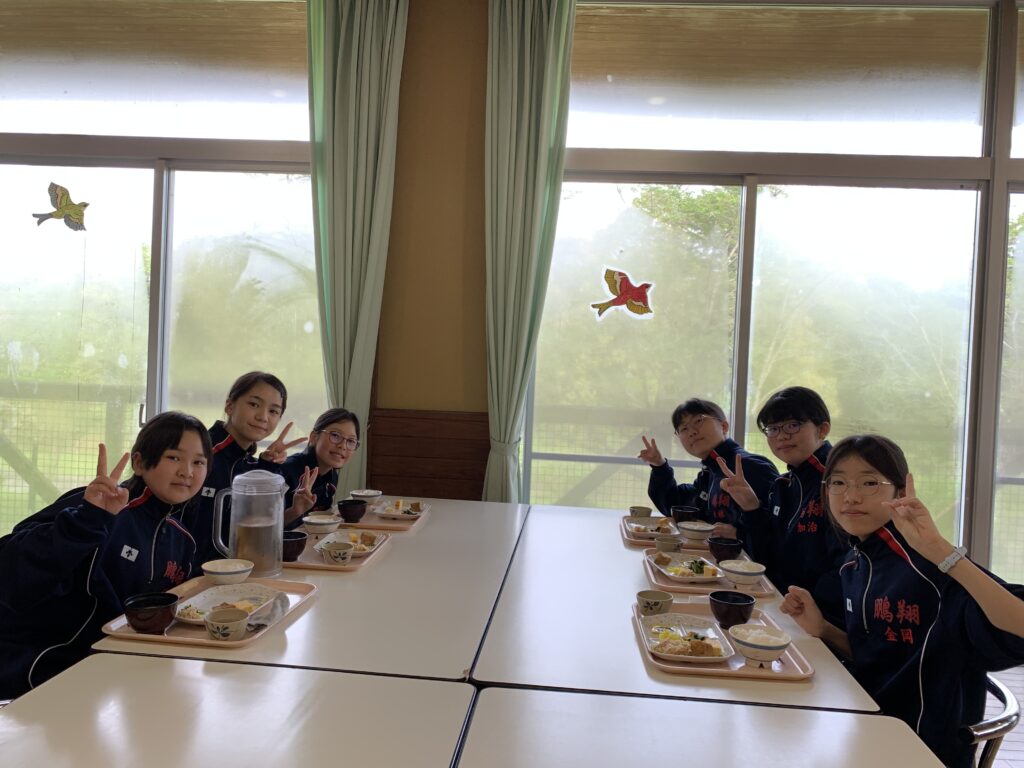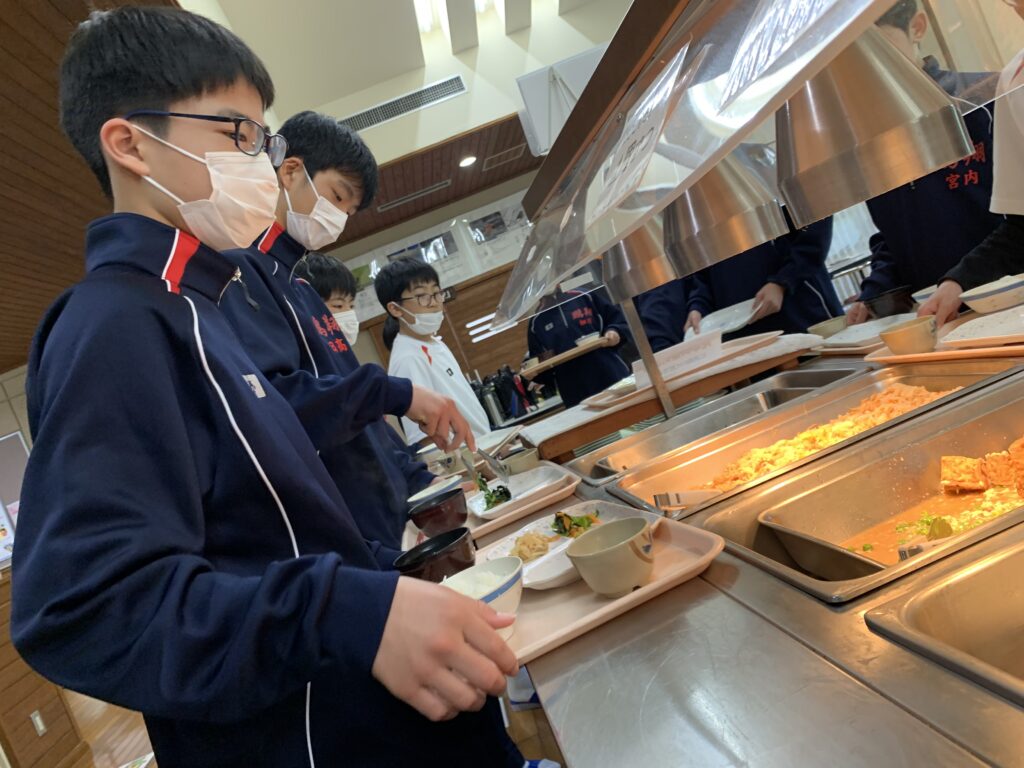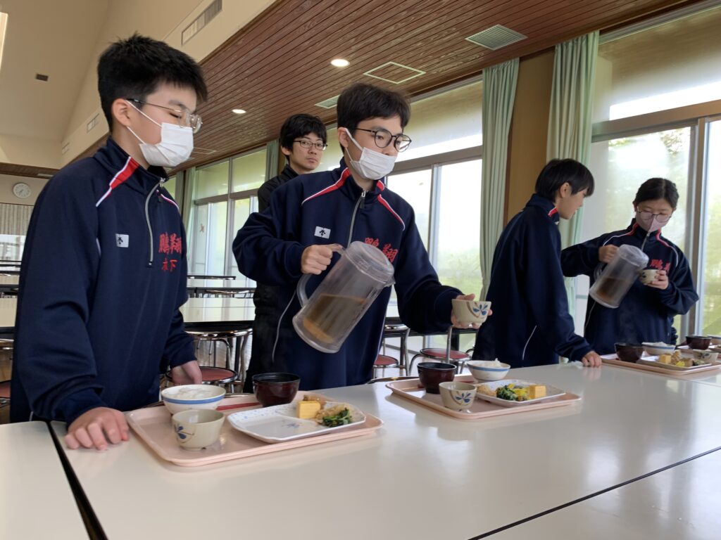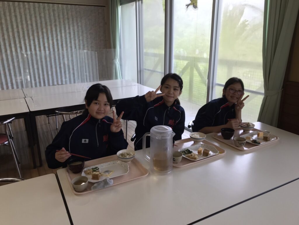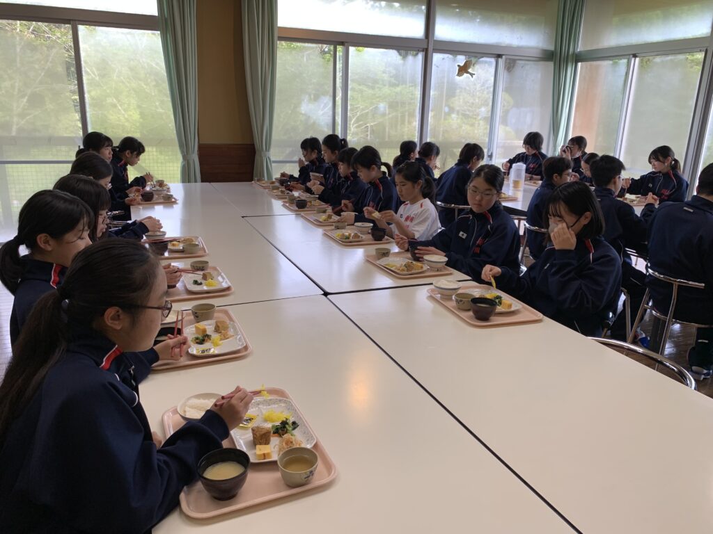 朝のつどいのあとは、朝食の時間です。毎日のご飯が楽しみなようで、ご飯前に献立を見に来る生徒の姿がたくさん見られました。3日間、美味しいご飯をありがとうございました‼︎