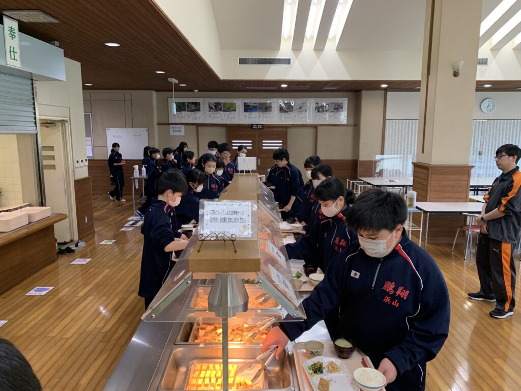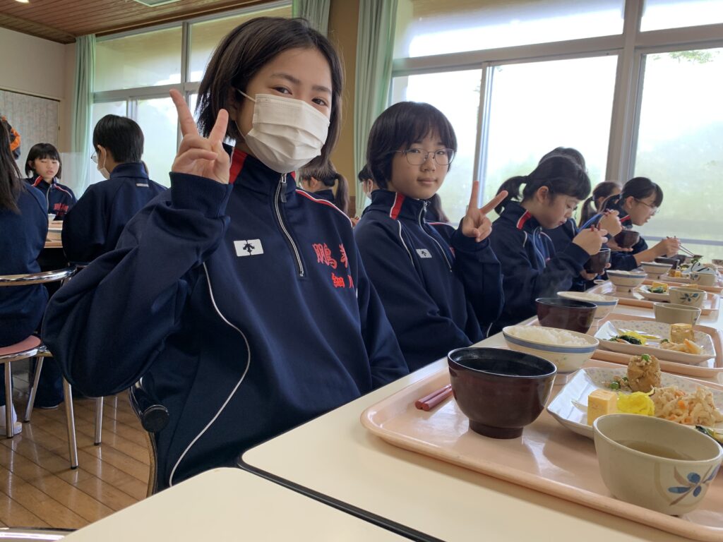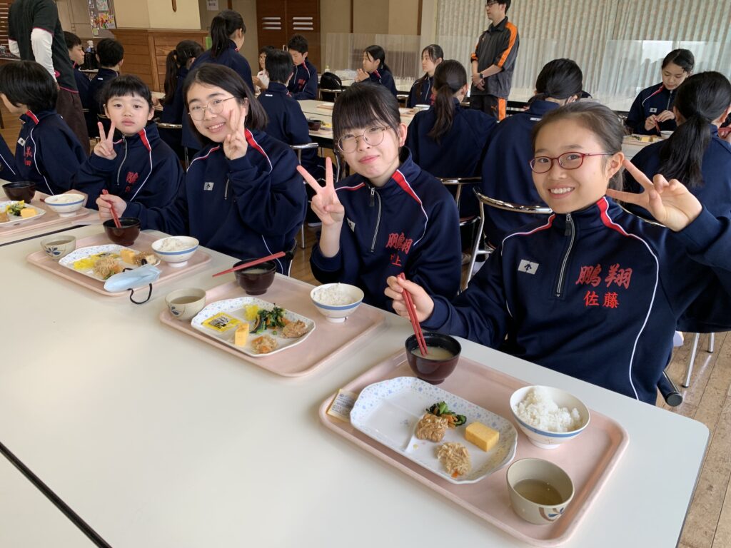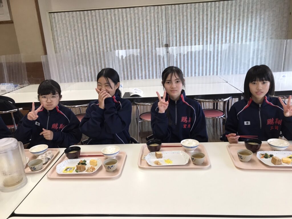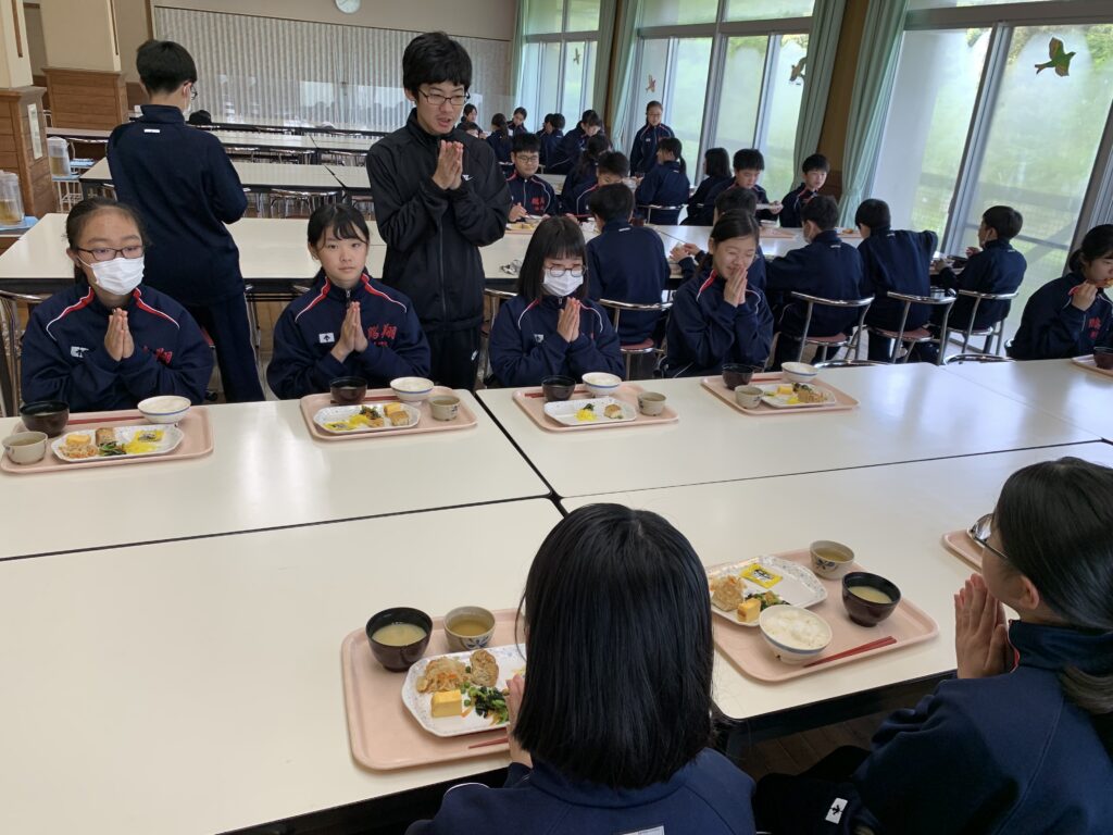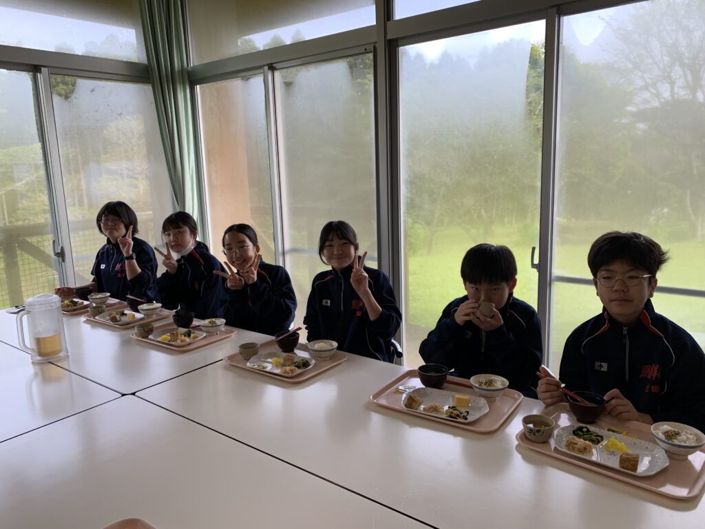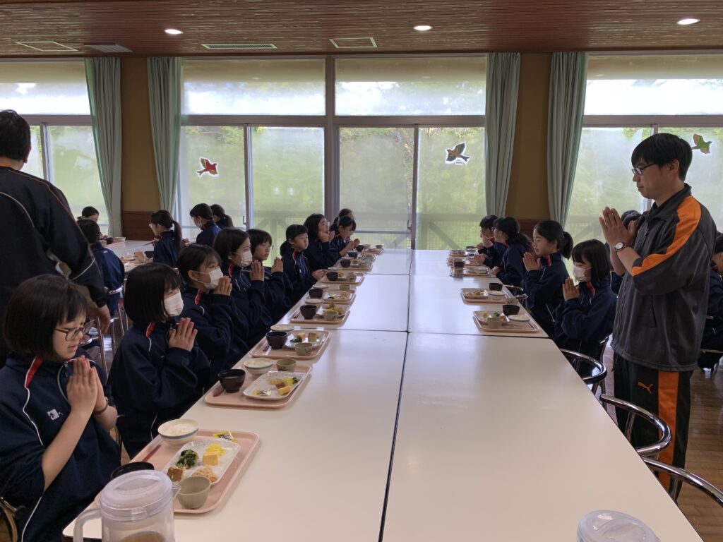 朝のつどいのあとは、朝食の時間です。毎日のご飯が楽しみなようで、ご飯前に献立を見に来る生徒の姿がたくさん見られました。3日間、美味しいご飯をありがとうございました‼︎