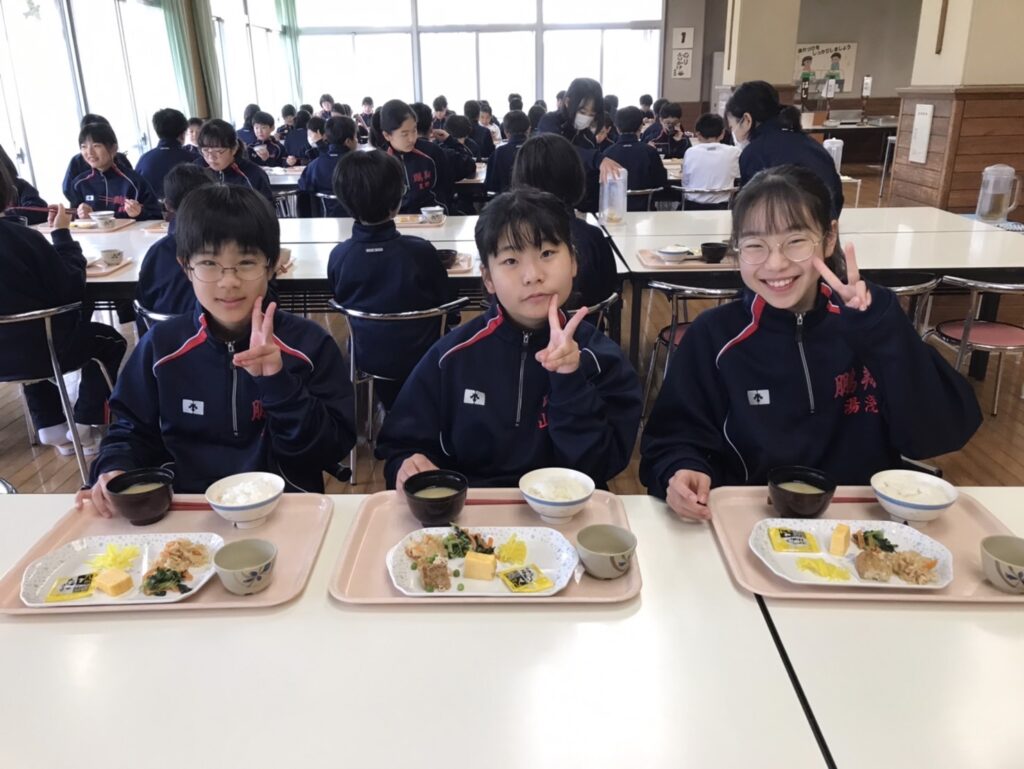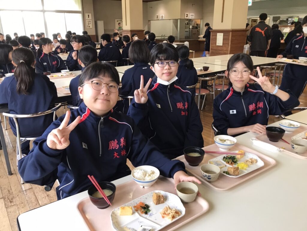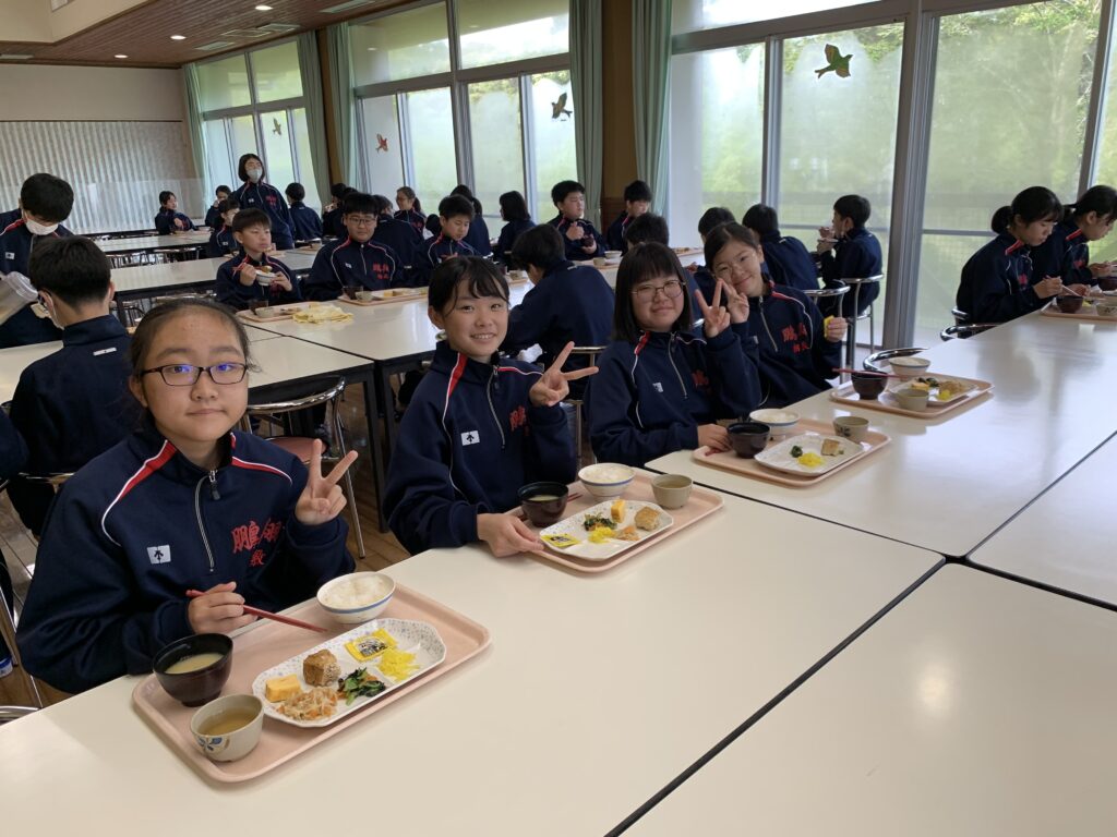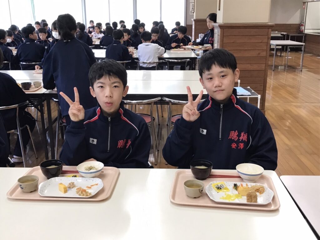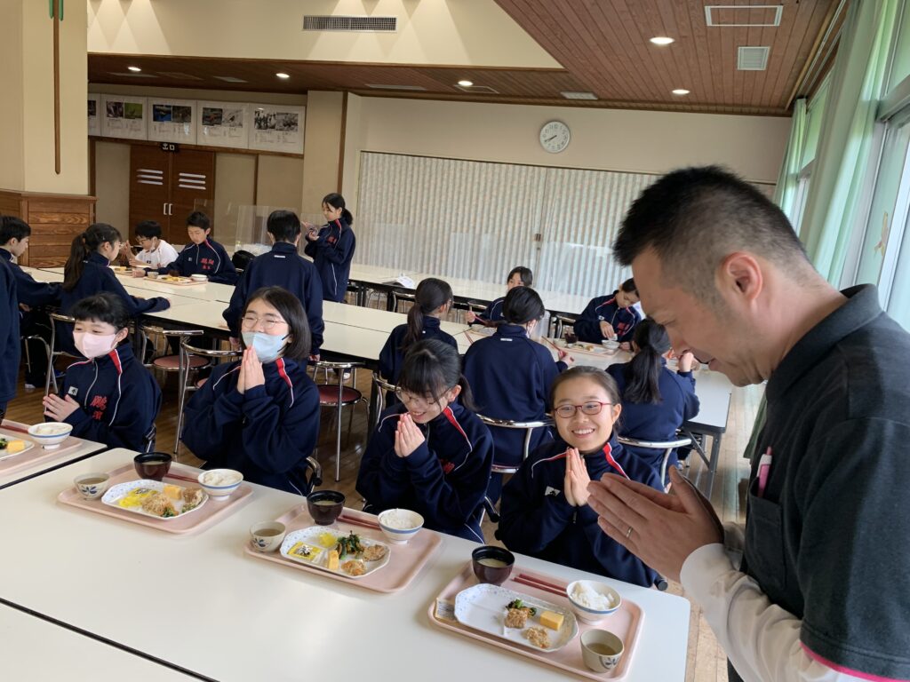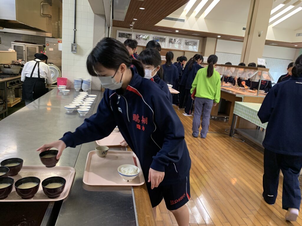 朝のつどいのあとは、朝食の時間です。毎日のご飯が楽しみなようで、ご飯前に献立を見に来る生徒の姿がたくさん見られました。3日間、美味しいご飯をありがとうございました‼︎