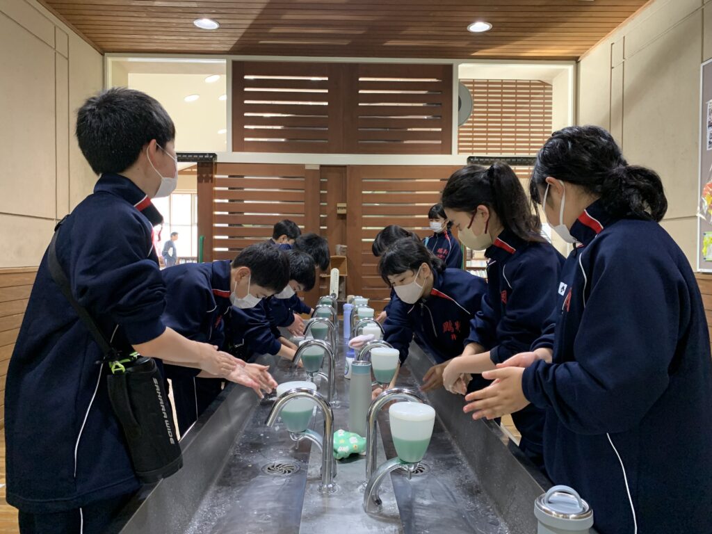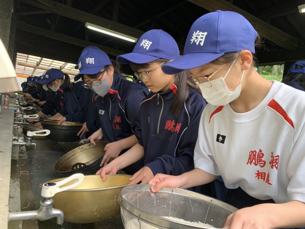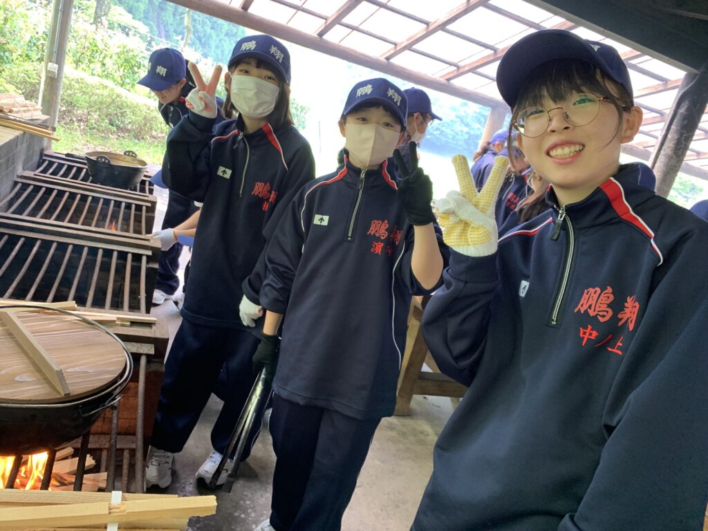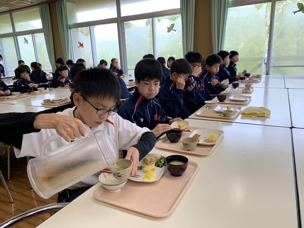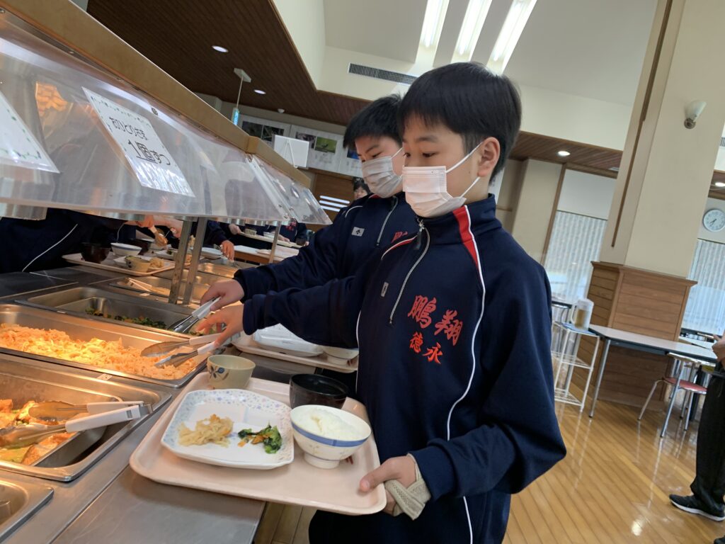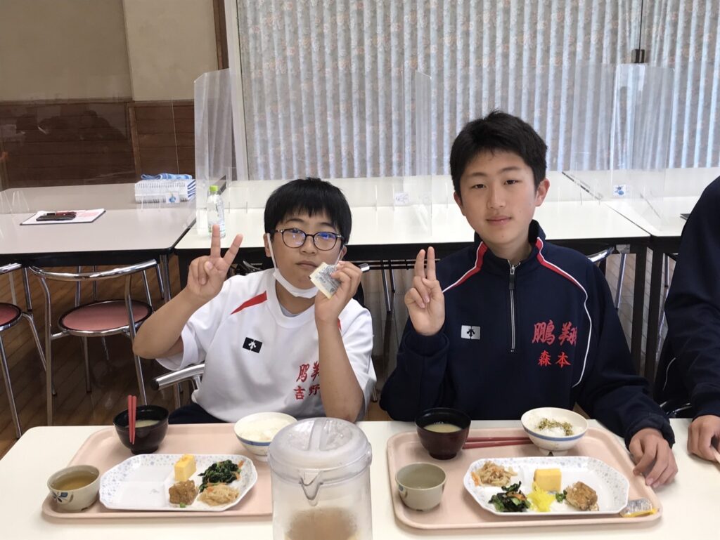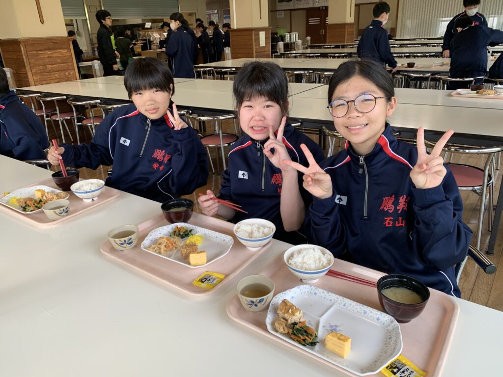 朝のつどいのあとは、朝食の時間です。毎日のご飯が楽しみなようで、ご飯前に献立を見に来る生徒の姿がたくさん見られました。3日間、美味しいご飯をありがとうございました‼︎