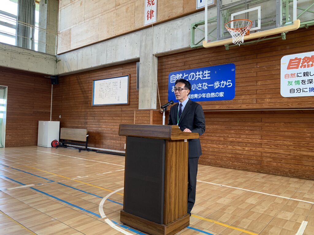 御池青少年自然の皆さま、3日間貴重な体験をさせていただきありがとうございました。永山先生のお言葉にあったように、ここで過ごした体験、またこれから経験することを積み重ねて素晴らしい6年間の学校生活を送ってほしいと思います。
