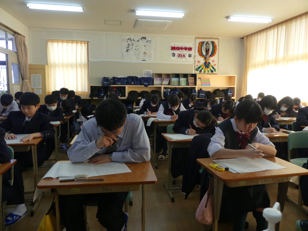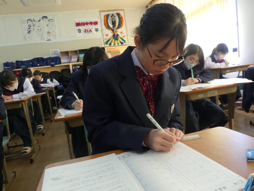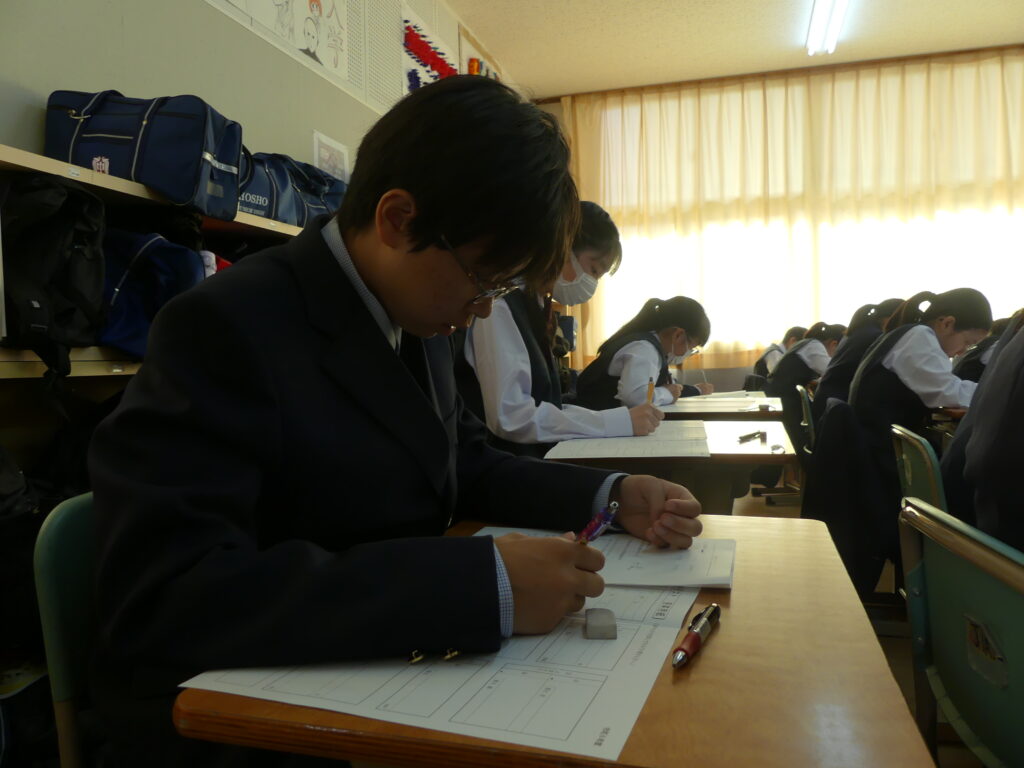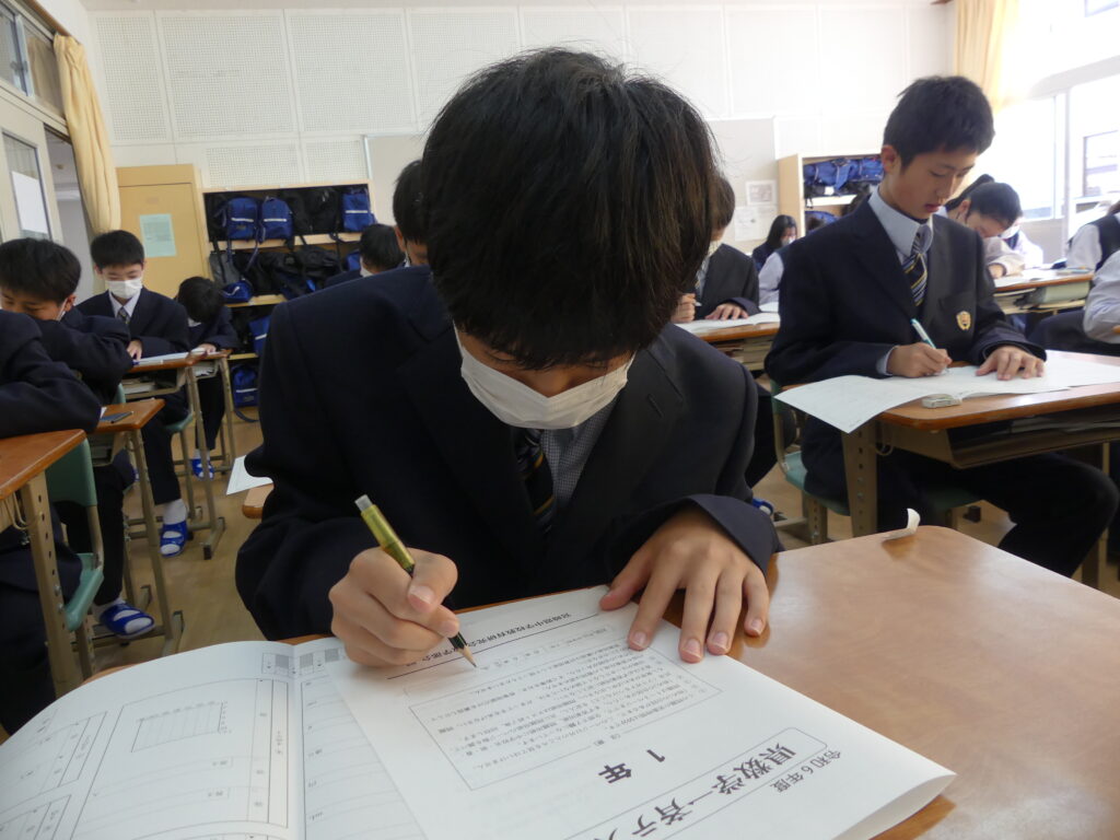 本日、J1生は1時間目に県数テストを受けました。