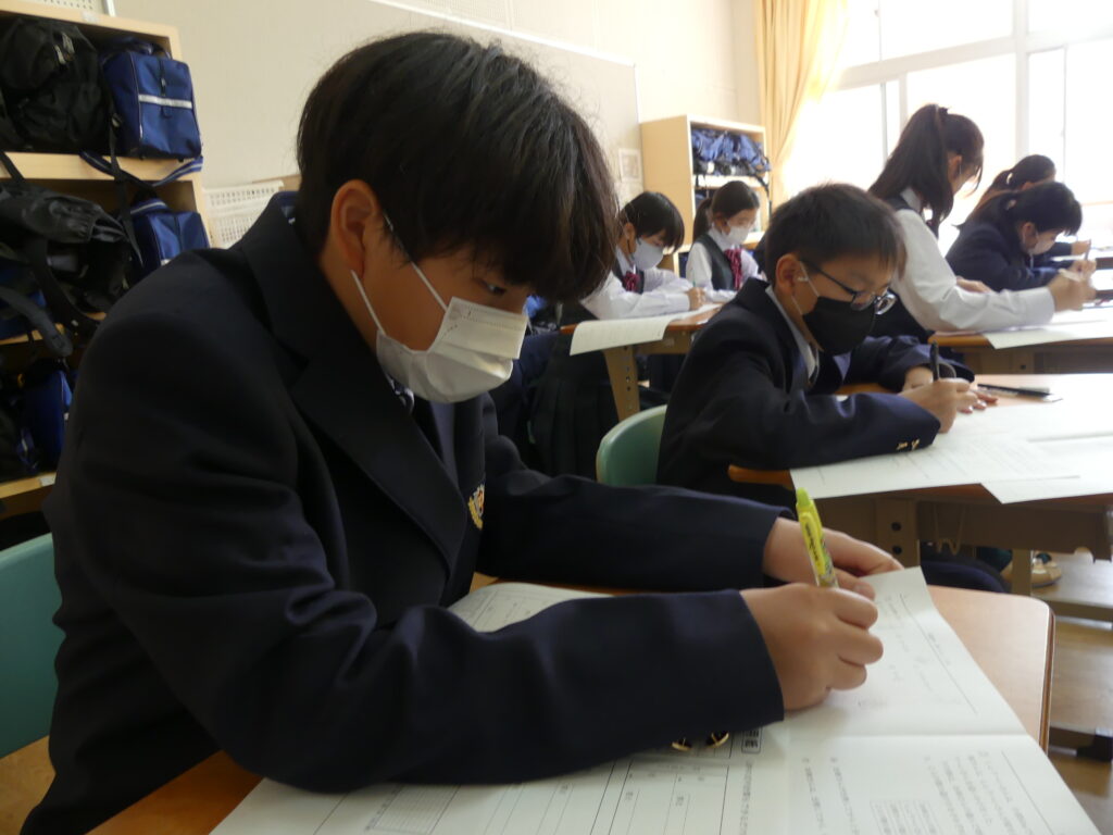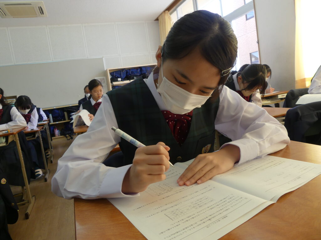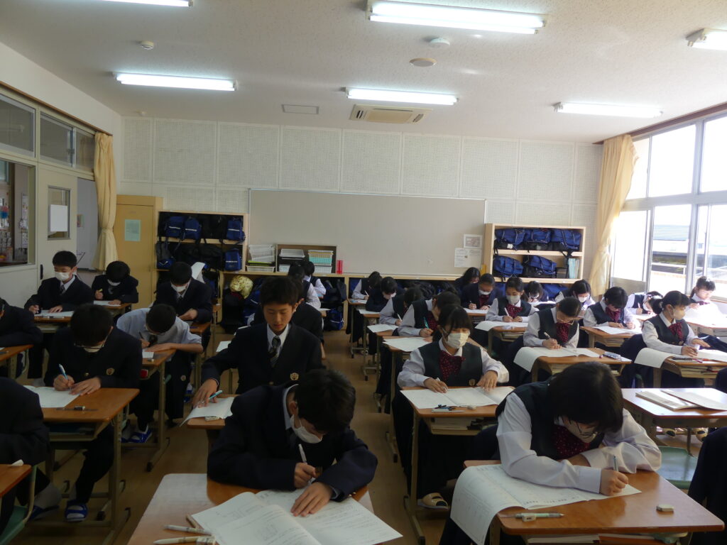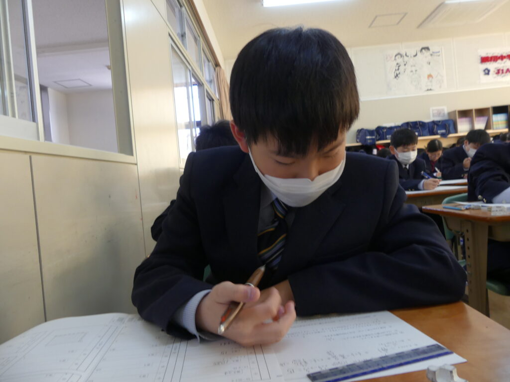 本日、J1生は1時間目に県数テストを受けました。