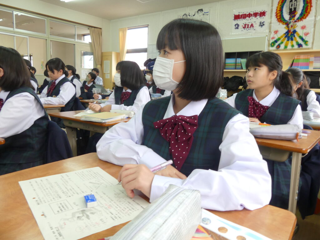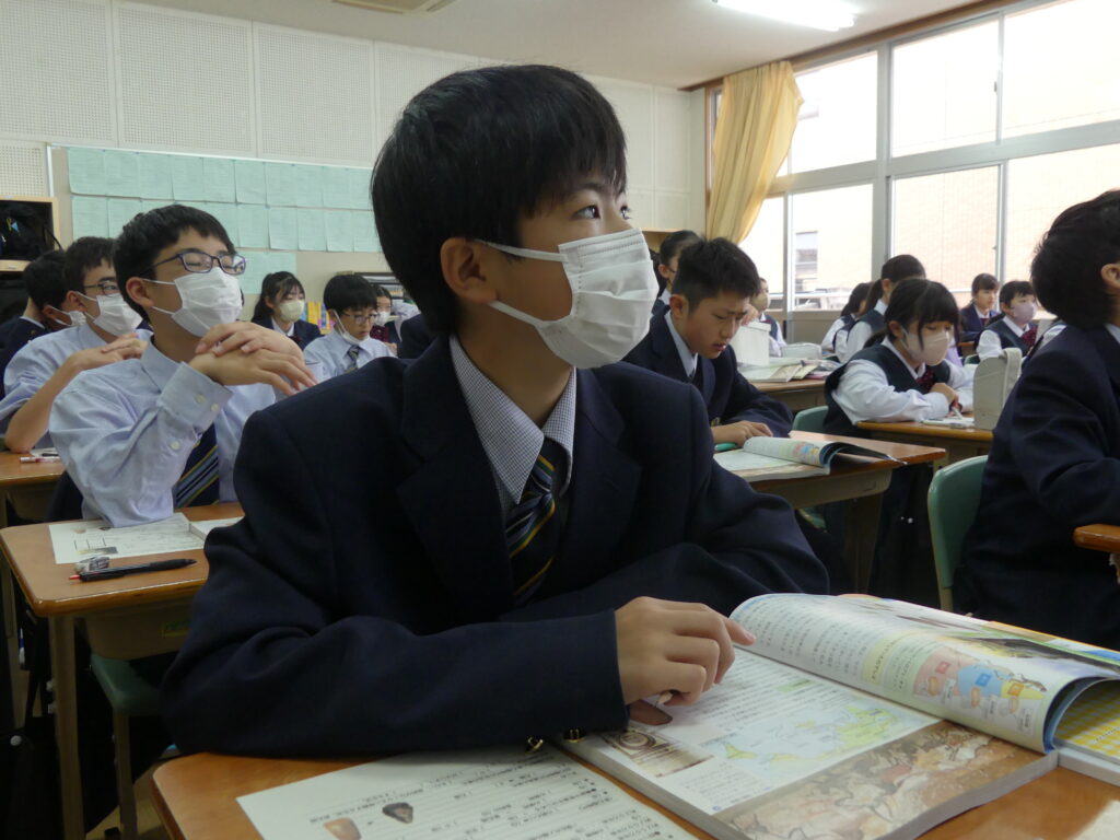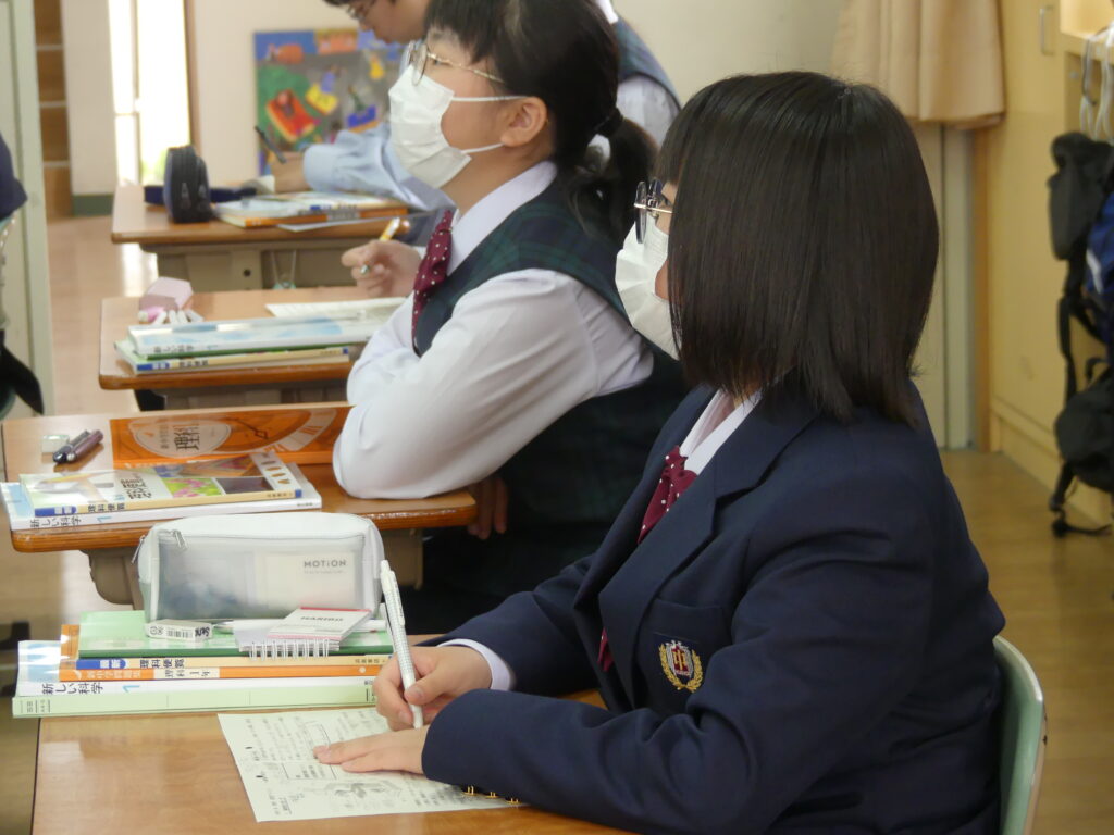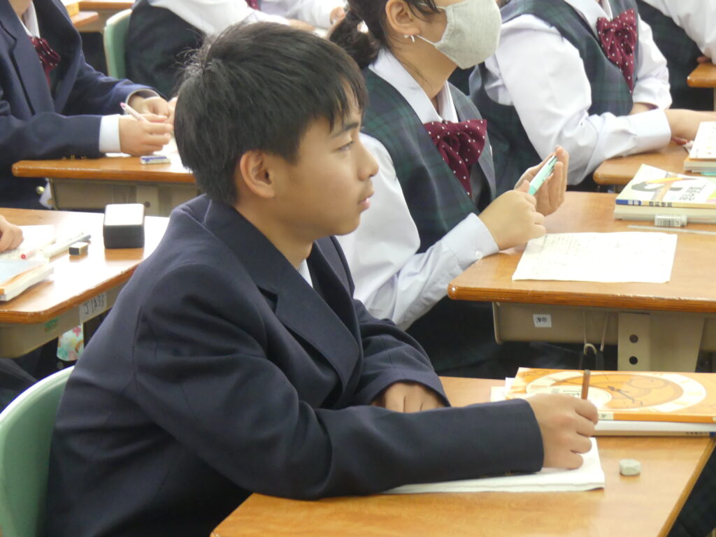 この時間はどちらのクラスも歯科検診のため途中で移動となりました。授業の雰囲気は静かながらも反応の良い授業が展開されていました。各教科始まったばかりですが、課題がでていると思います。範囲が示された科目にはやめに取り掛かって第一回定期テストに向けてがんばっていってください!