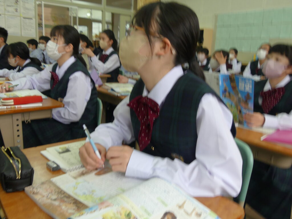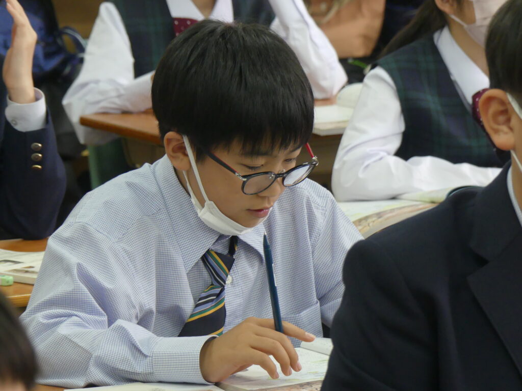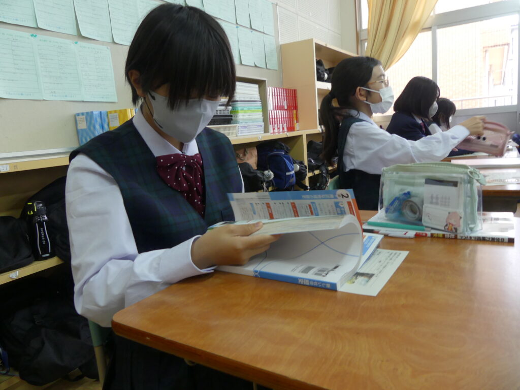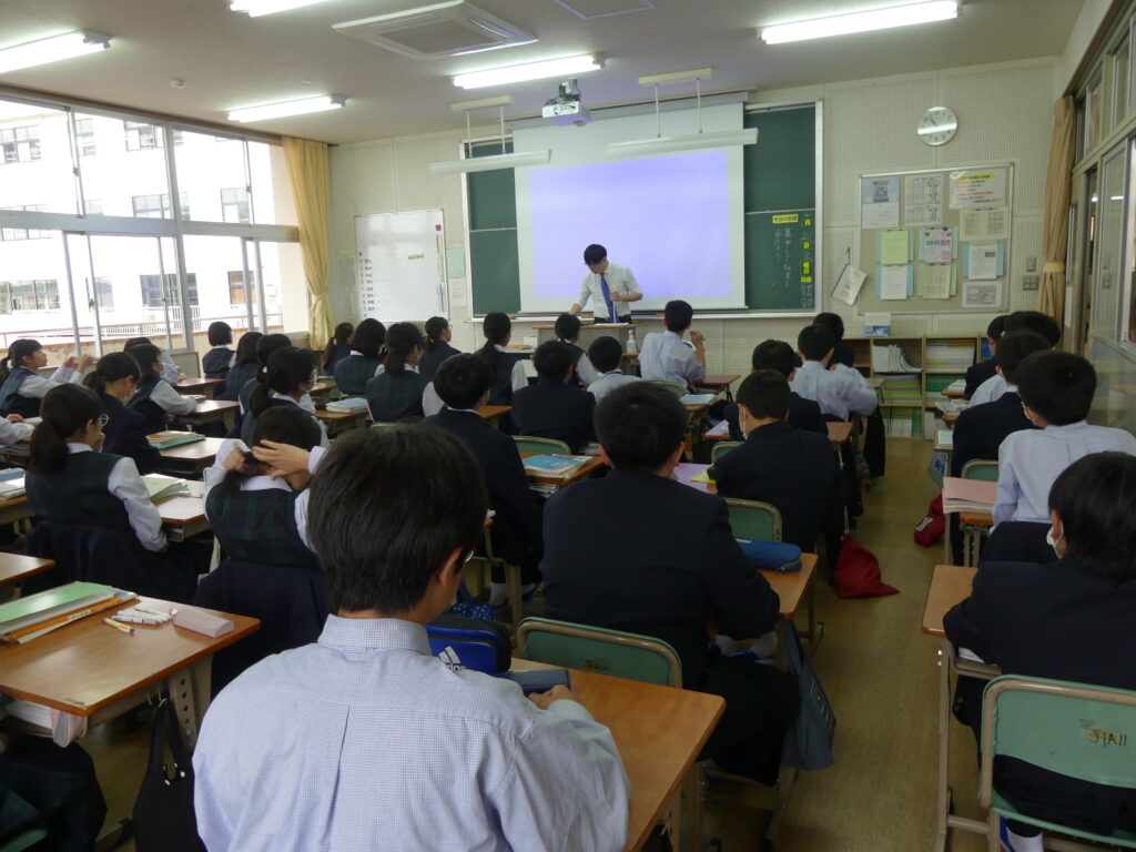 この時間はどちらのクラスも歯科検診のため途中で移動となりました。授業の雰囲気は静かながらも反応の良い授業が展開されていました。各教科始まったばかりですが、課題がでていると思います。範囲が示された科目にはやめに取り掛かって第一回定期テストに向けてがんばっていってください!