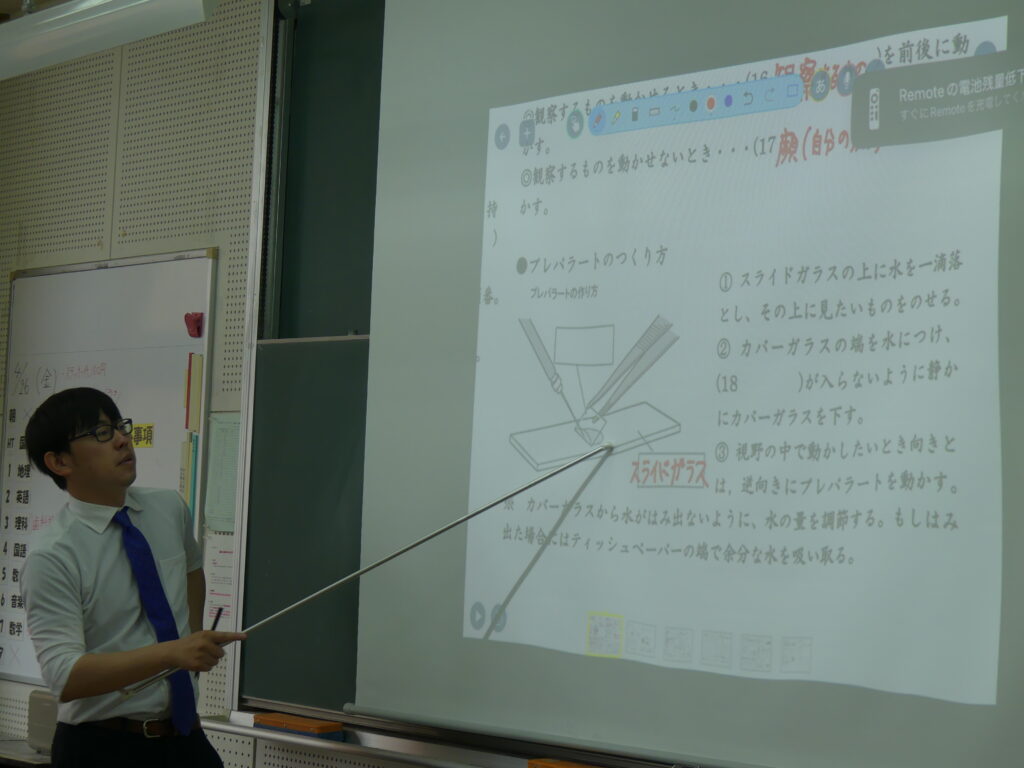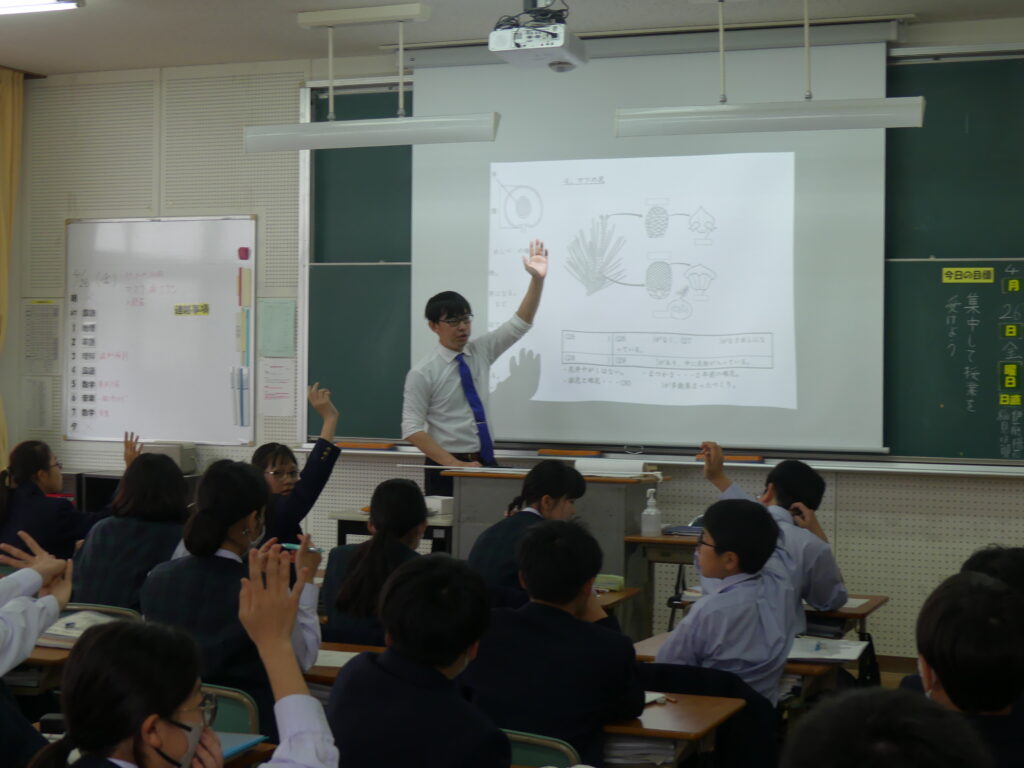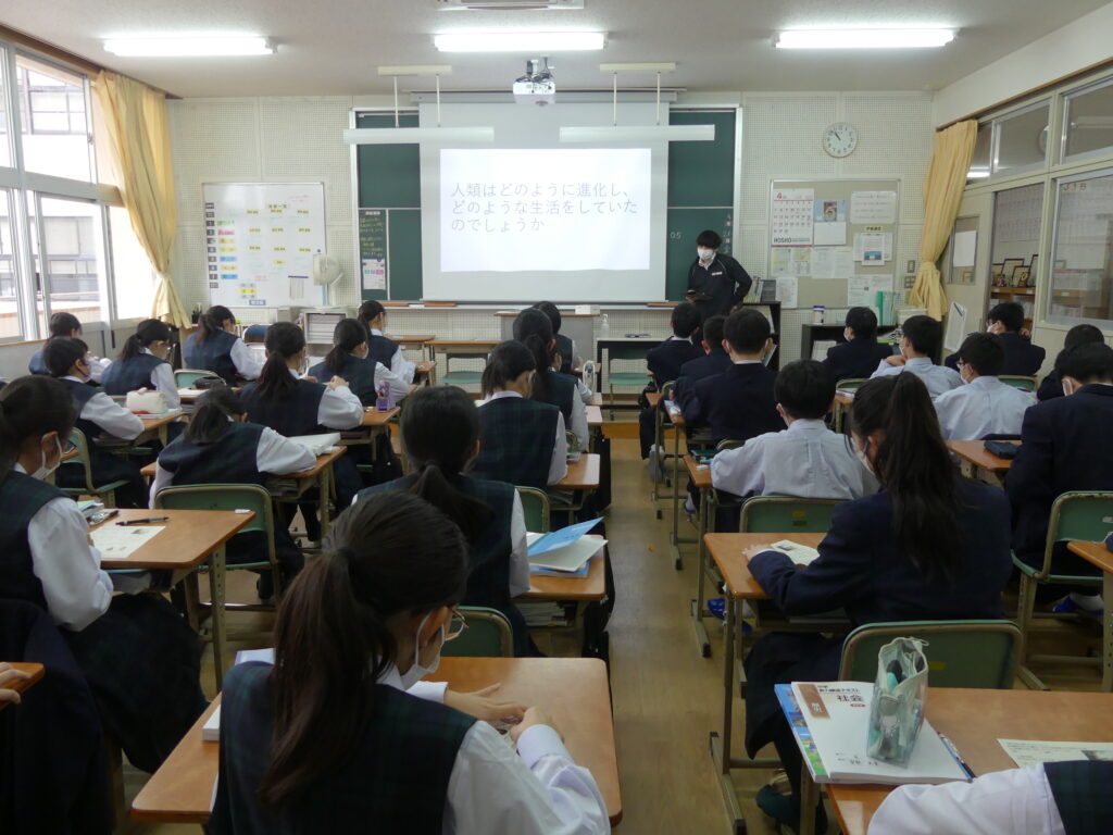 今日の3限目のJ1生は、A組で理科、B組で歴史の授業が行われていました。