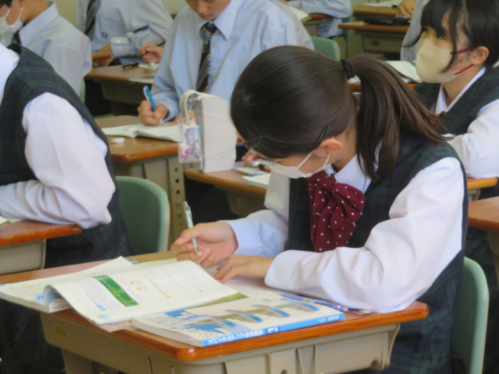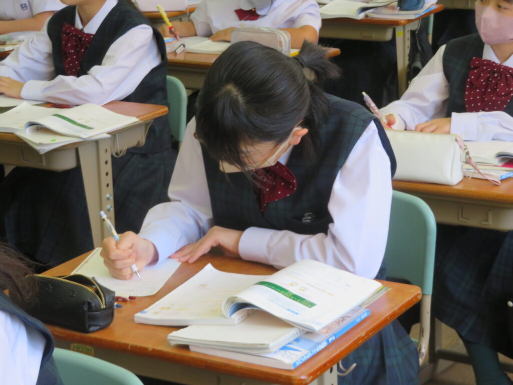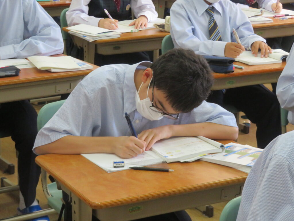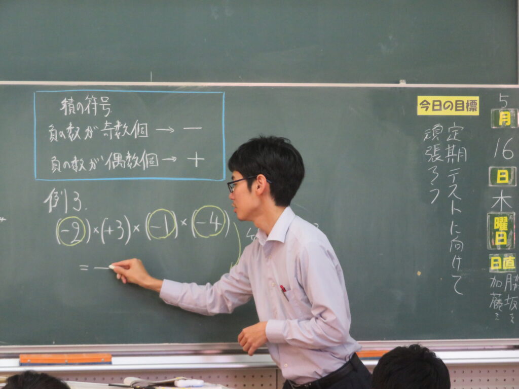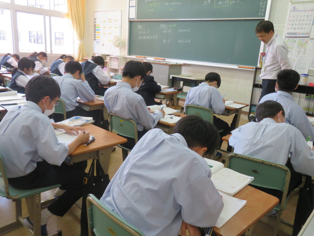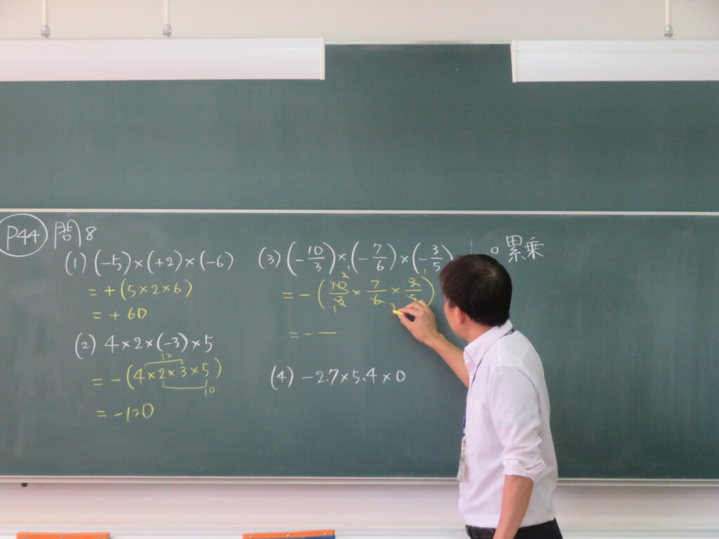 「正の数・負の数」の乗法(掛け算)と累乗について学んでいました。1つでも多くの知識を自分のものとして吸収しようと、みなさん真剣に授業を聞いていました。