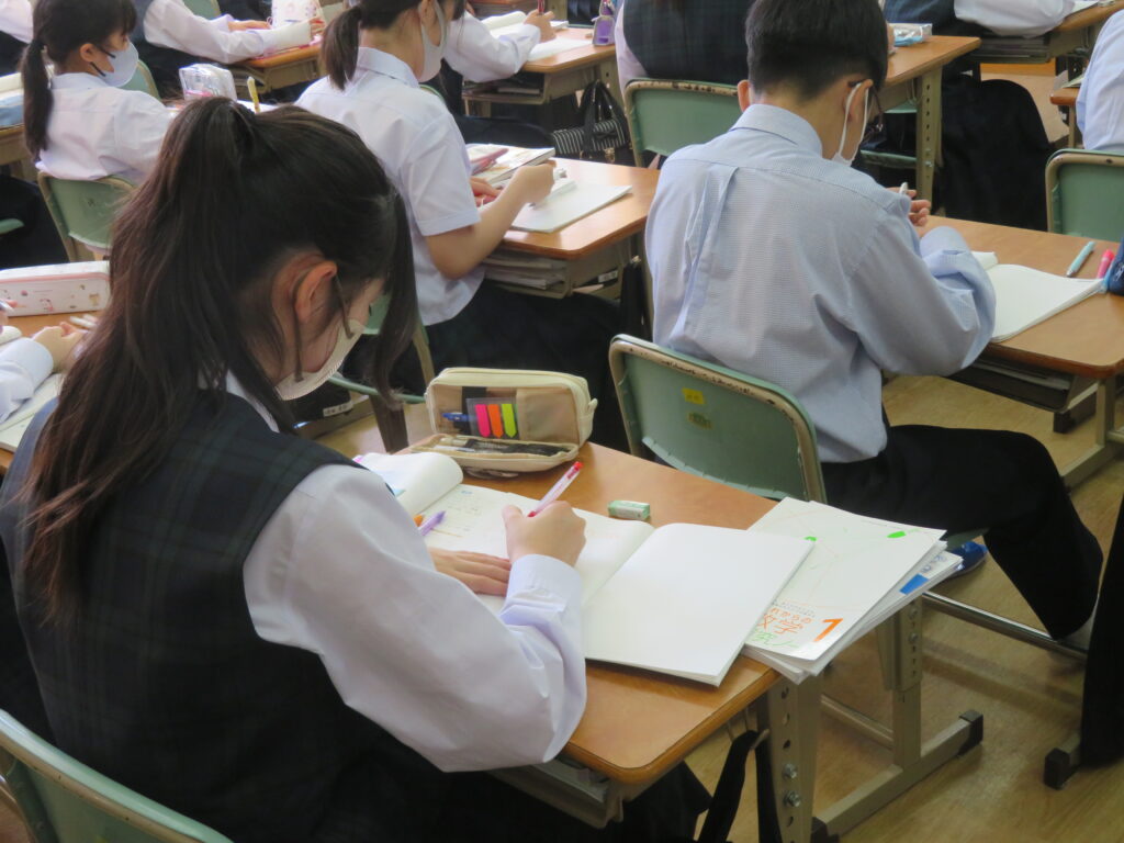 来週に迫った定期テストに向けて、中学生のみなさん一生懸命勉強に励んでいます。休み時間や放課後学習など、時間を有効的に活用して、自分の掲げている目標を達成できるように、全力で取り組んで欲しいと思います。頑張ってください!