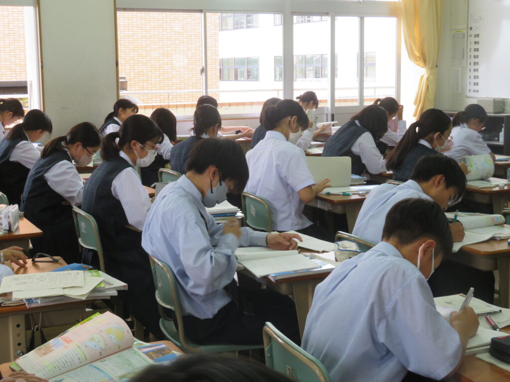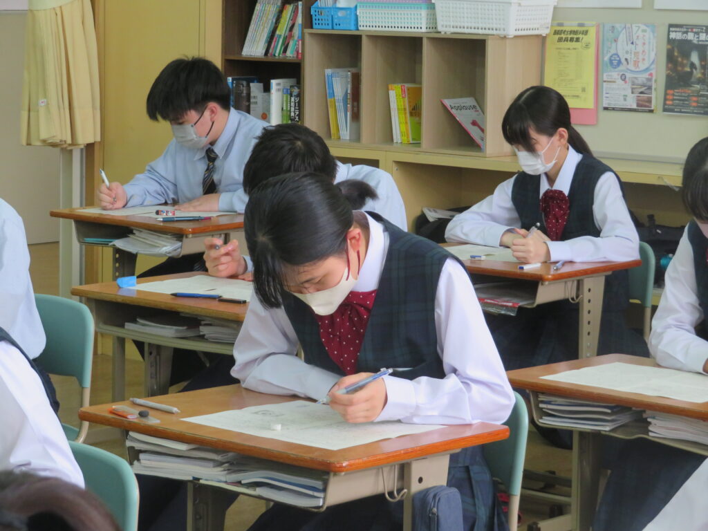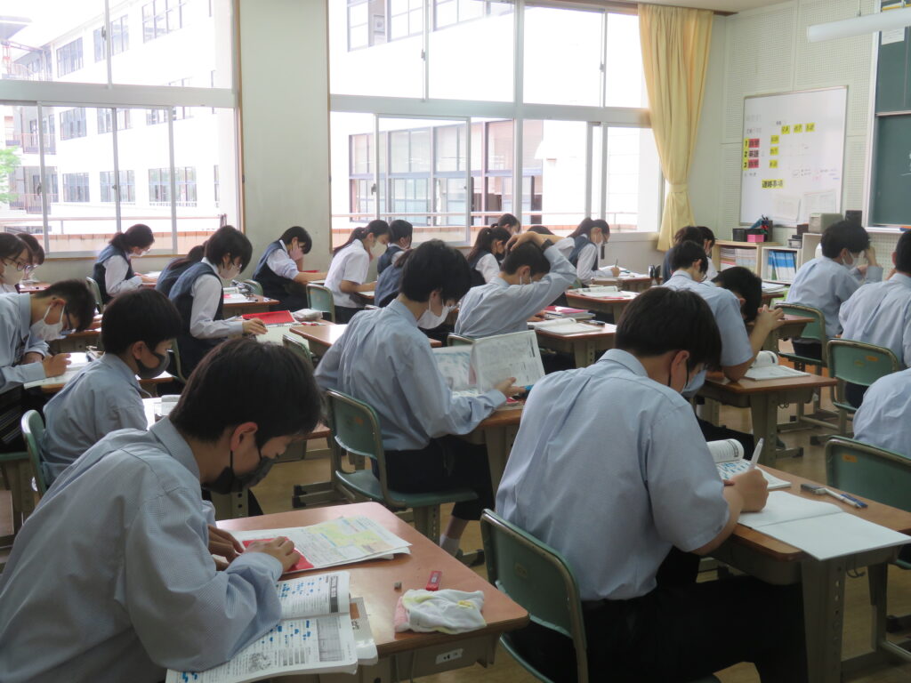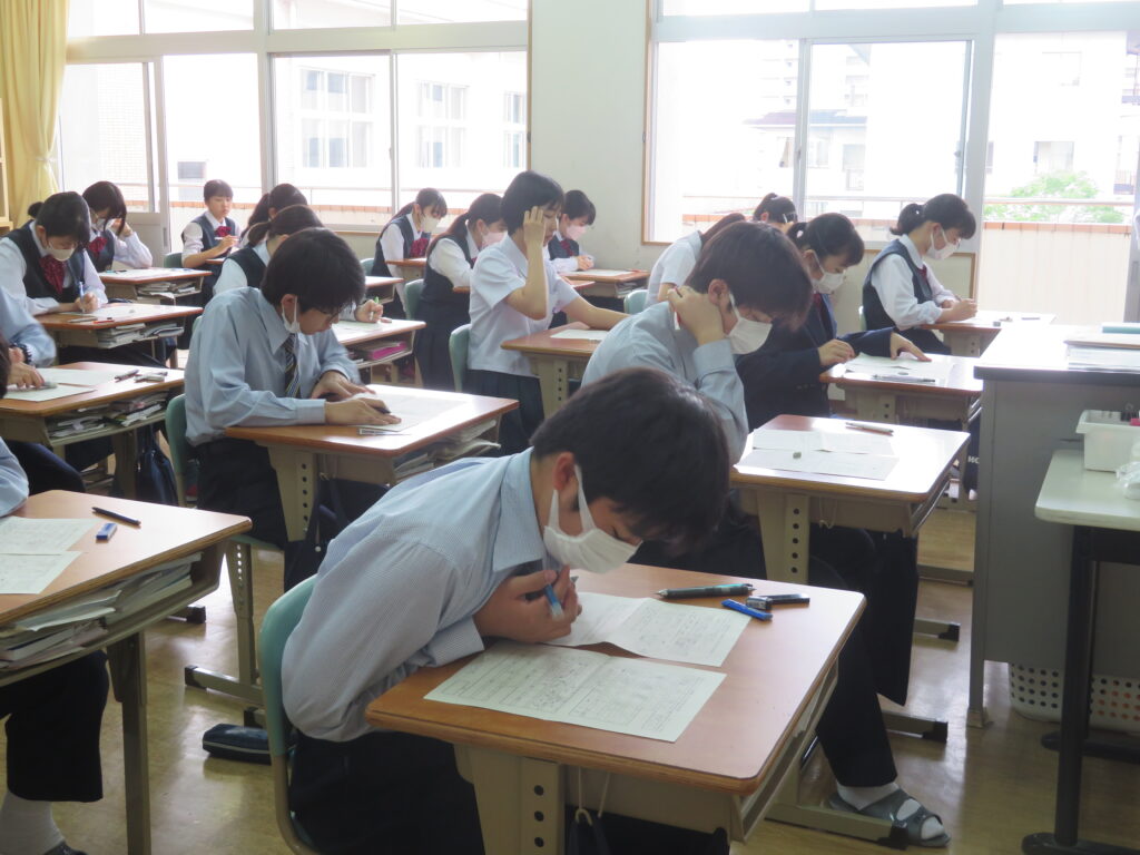 定期考査も最終日となりました。疲れも若干ありますが、最後までしっかりと頑張る様子が見られました。