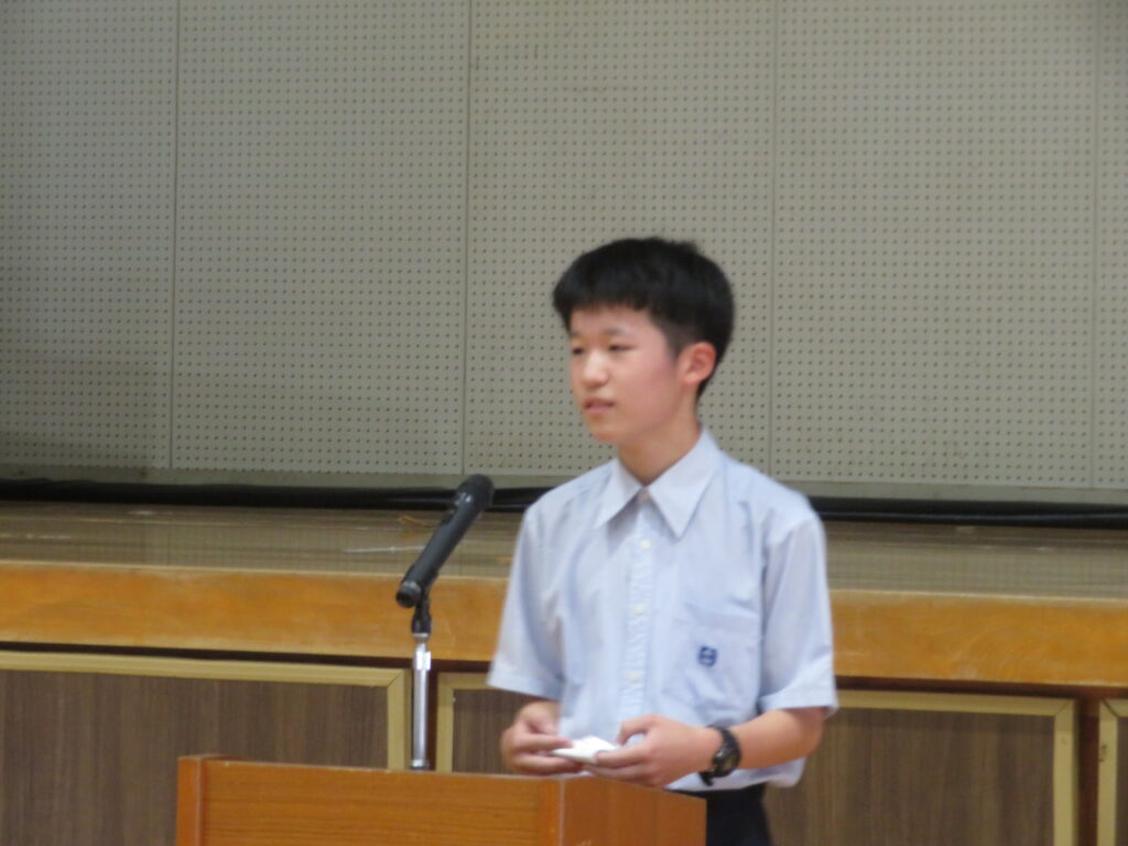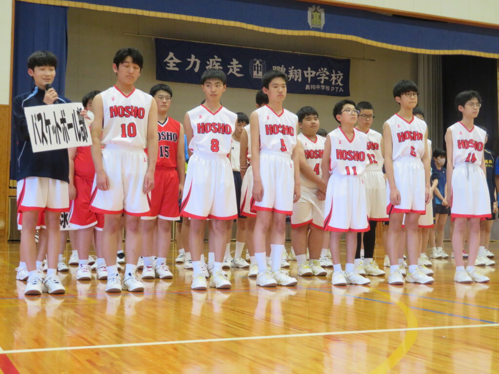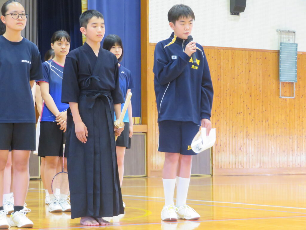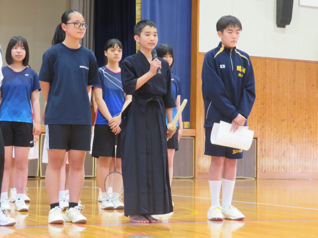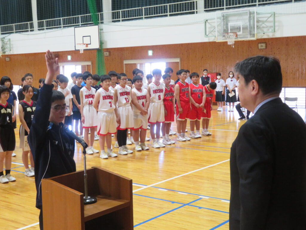本日、6月8日(土)から始まる中体連に向けて、壮行式を行いました。