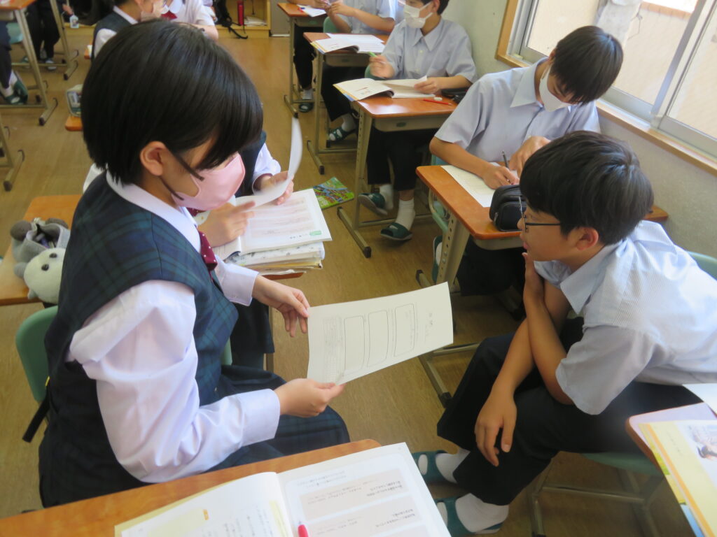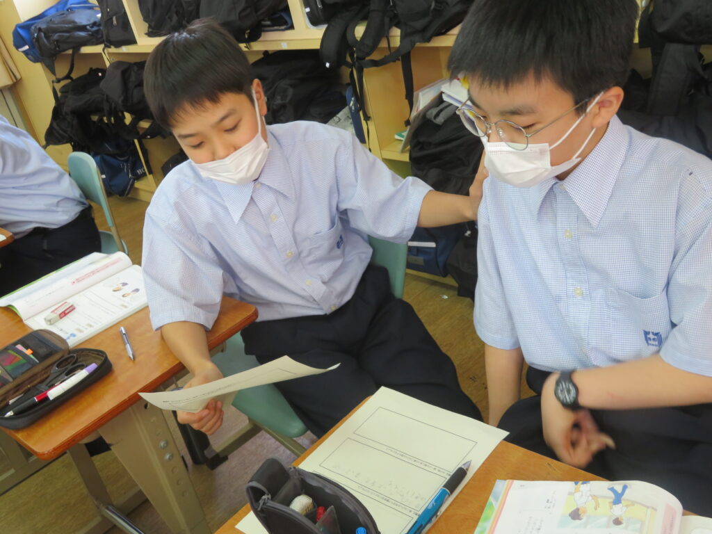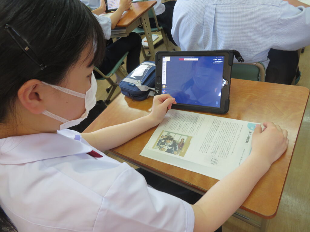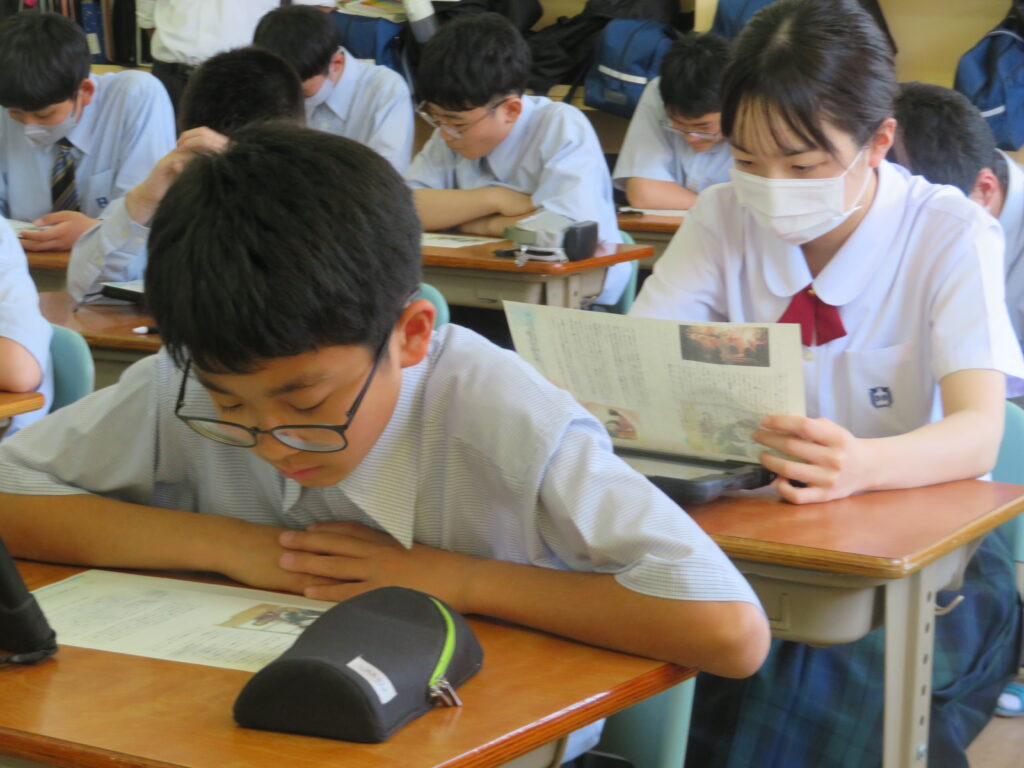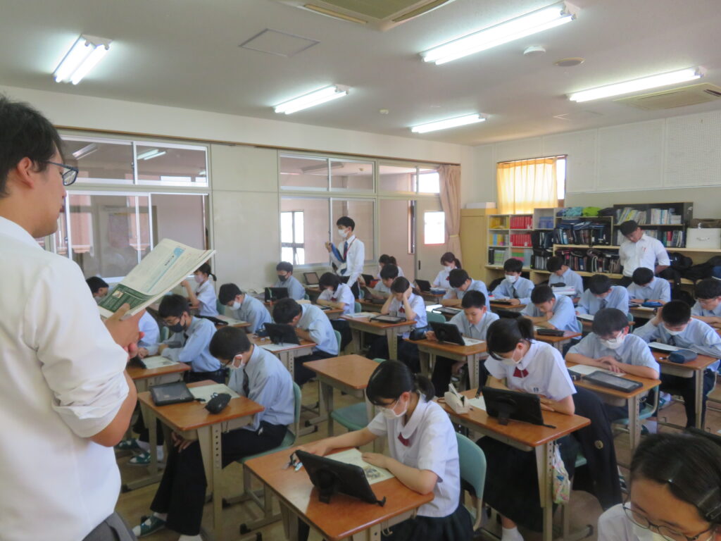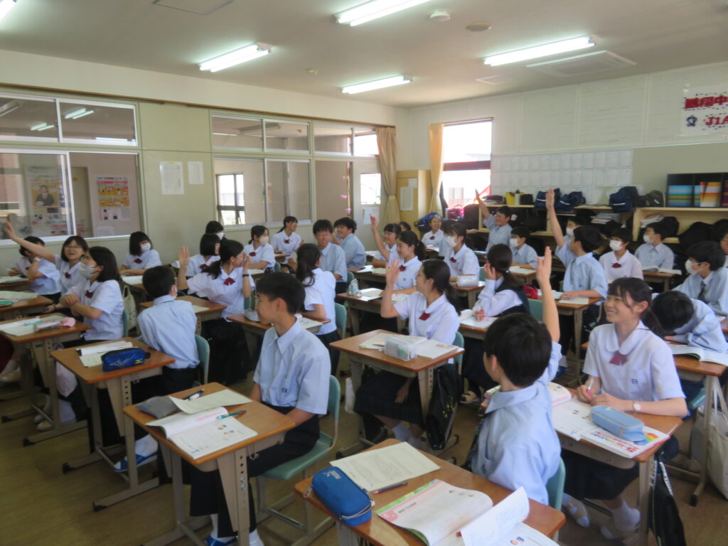 グループ討論をしたり、自分の考えを発表したりして、クラスみんなで今日の題材について考えていました。J1-Aは、たくさんの生徒が挙手をし、積極的に自分の意見を述べていました。友人の意見を聞き、いろんな気づきをもらい、新しい価値観等に気づく貴重な時間となっています。