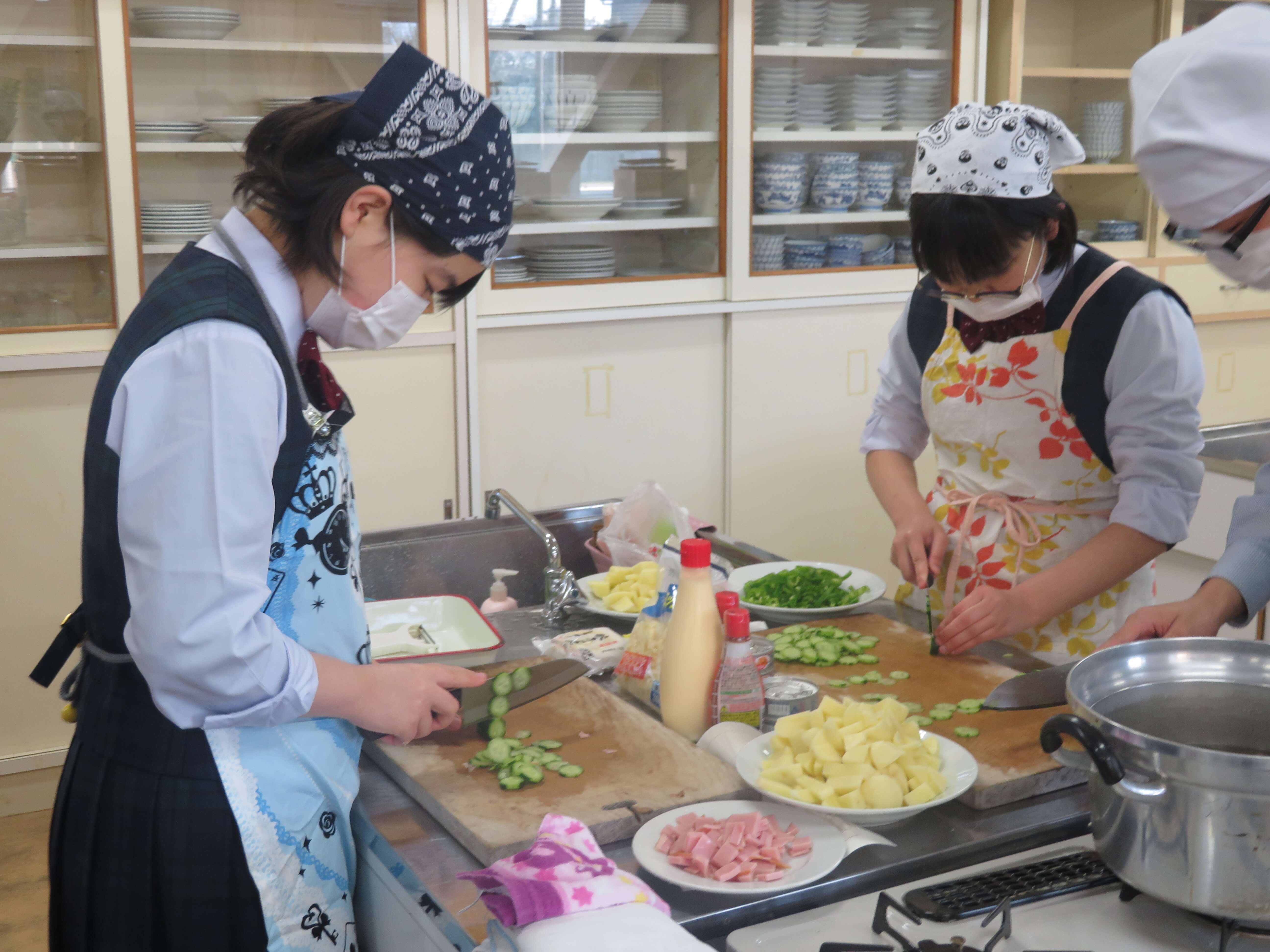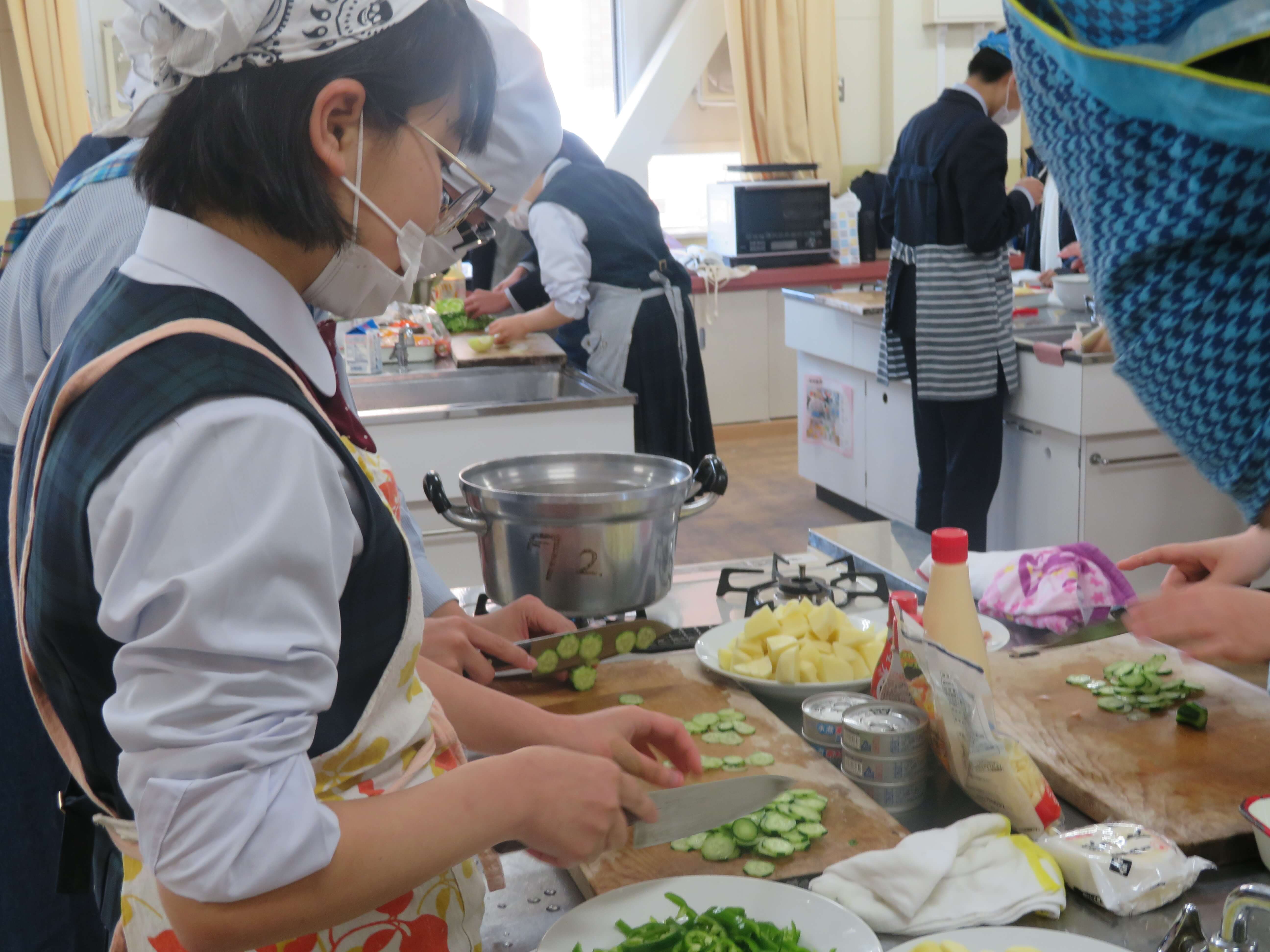 本日J3Bは、中学課程最後の調理実習を行いました。各班ごとにメニューを考えて作りました。見た目も味も最高でした!