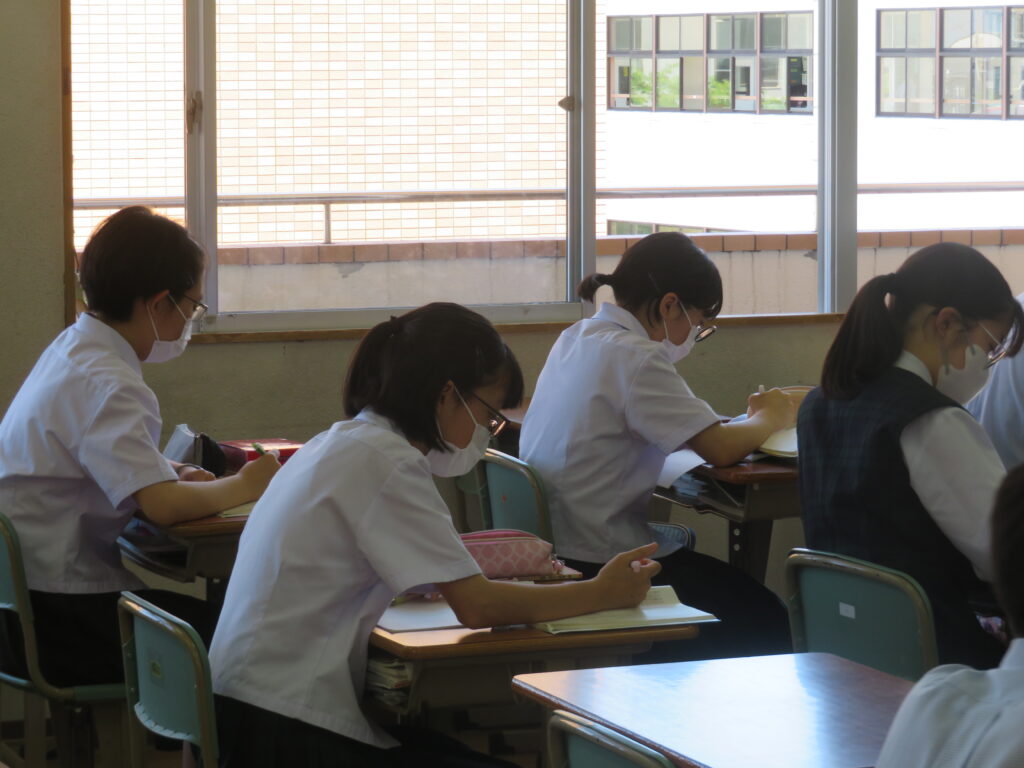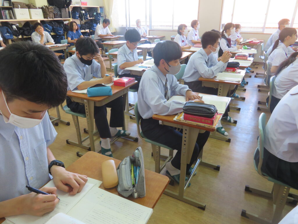 J2の国語発展クラスで「小説 盆土産」の授業を行いました。色々な先生方が参観される中、先生も生徒も緊張した様子でしたが、しっかりと授業を受けていました!