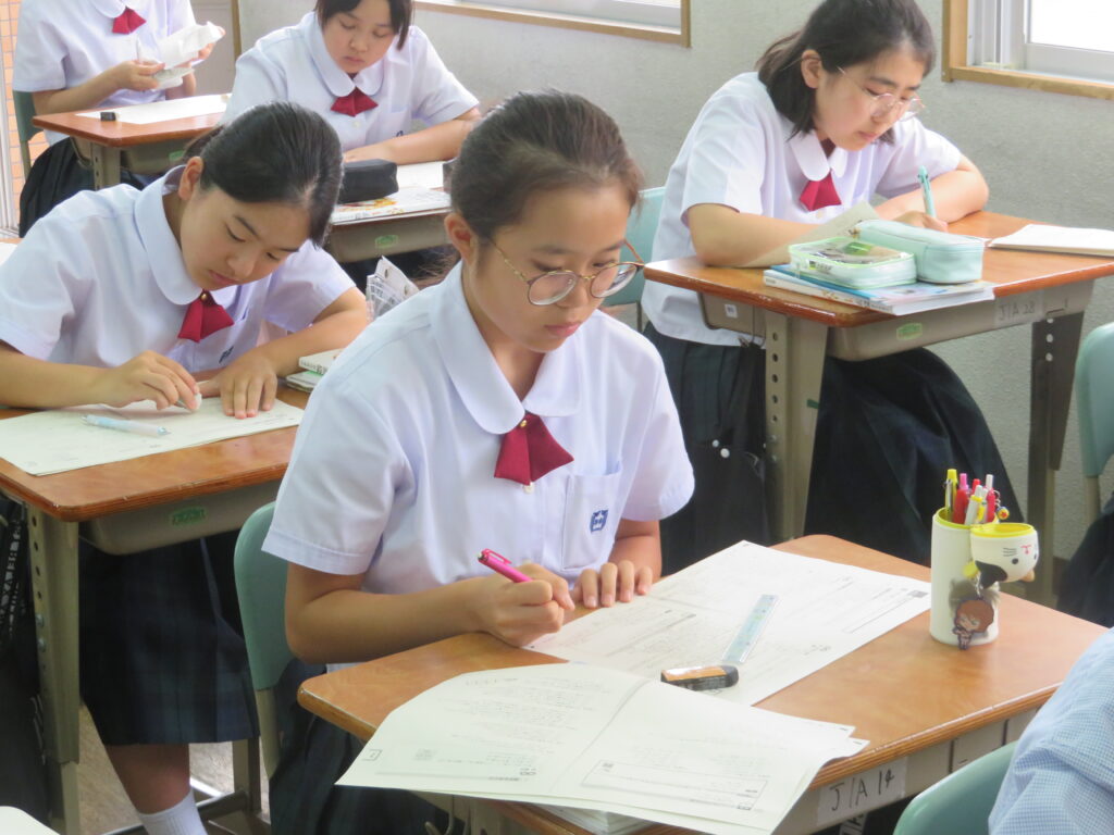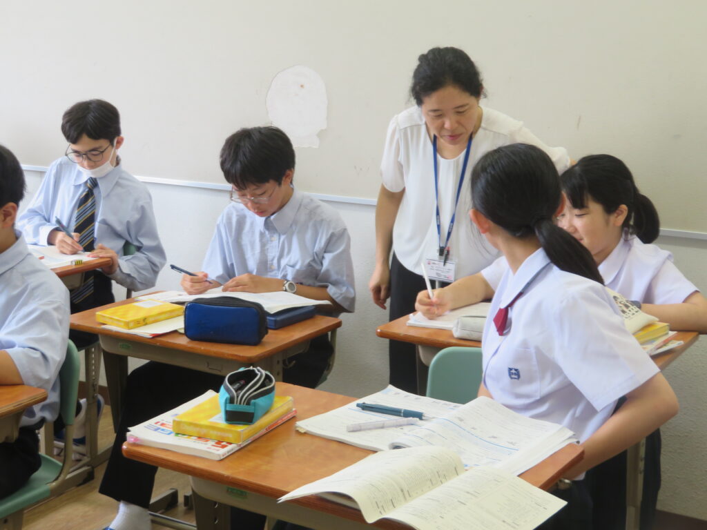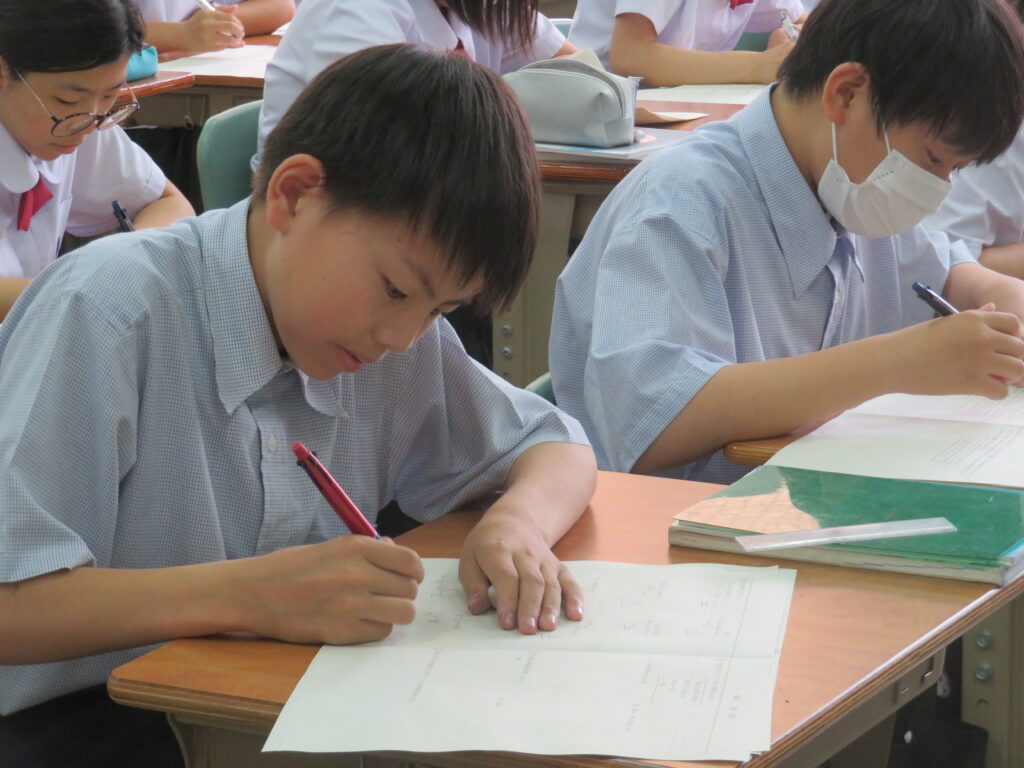 解き方が分からなかったり、いきづまったりすると個別に質問をしたりしながら問題に取り組む姿もあります。習熟度別クラスでは、先生への質問がしやすかったり自分に合った課題にチャレンジできたりと個々の実力を伸ばすチャンスがたくさんあります。様々なチャンスはチャレンジすることによって生まれます。様々な問題に取り組み、どんどん実力を伸ばしていきましょう。