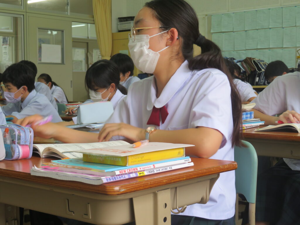 J1生も習熟度別に分かれた授業が始まっています。生徒たちは真剣な表情で授業に挑んでいます。