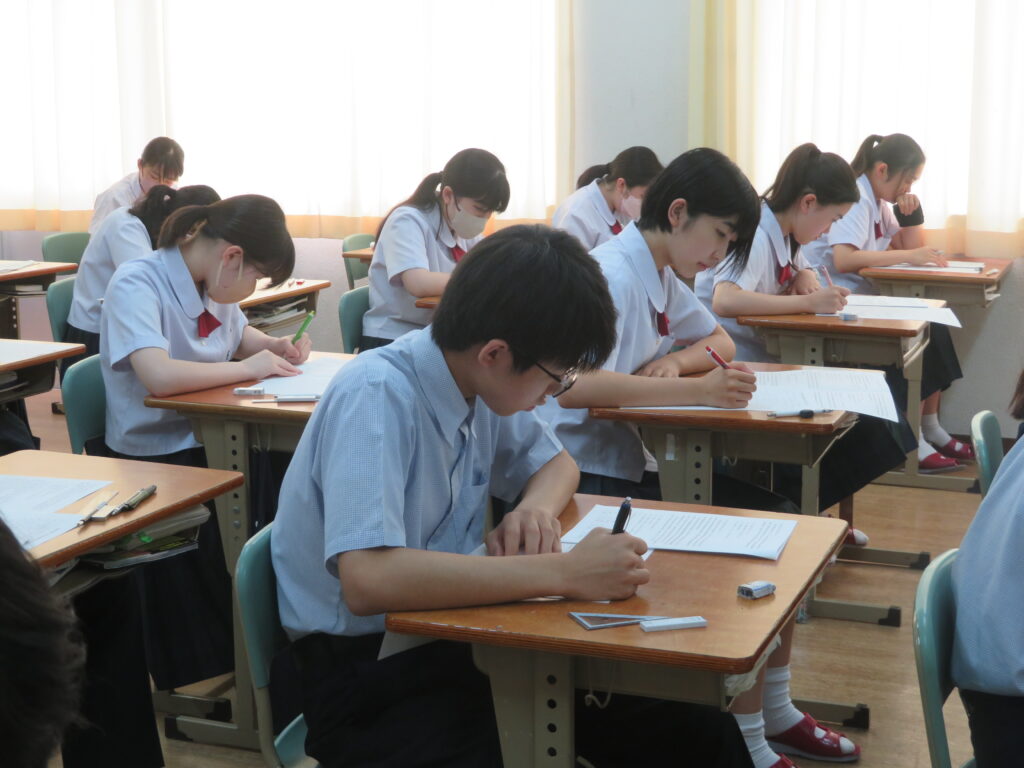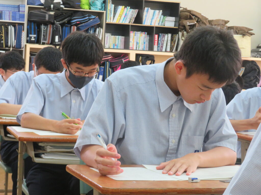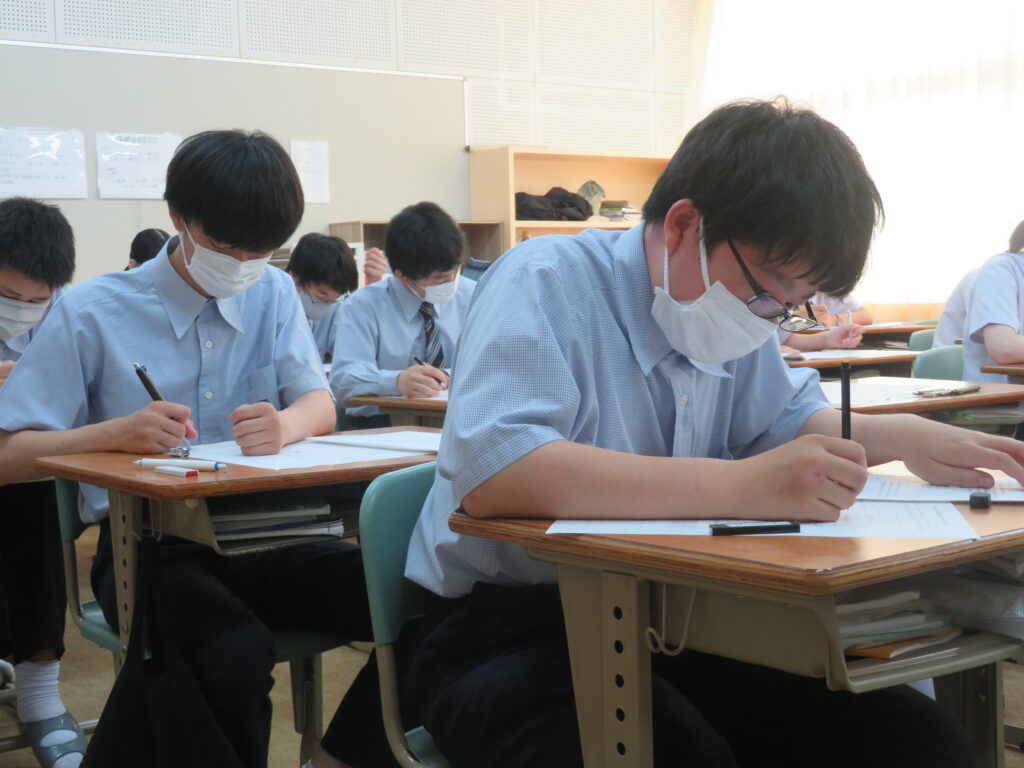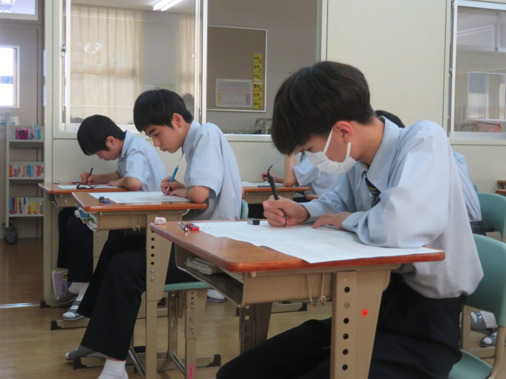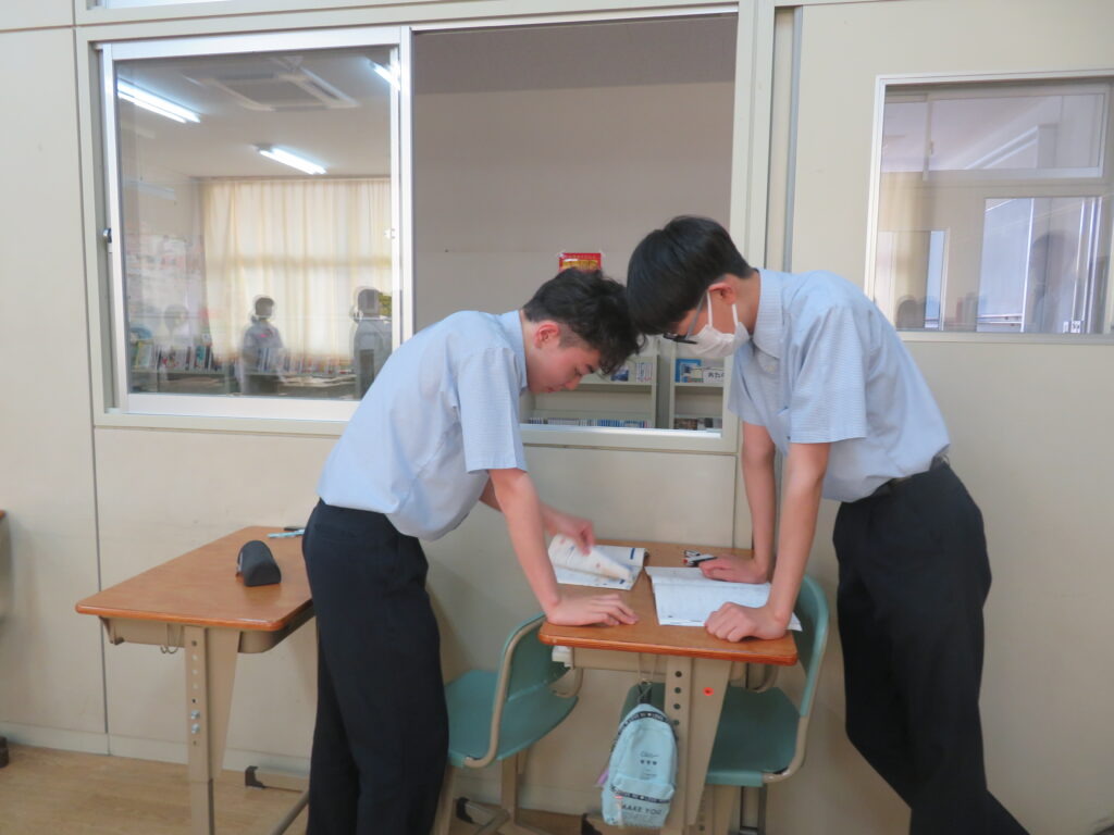本日、第2回定期考査2日目です。休み時間は、自分でまとめたノートや教材を黙々と確認する姿や、友人同時で問題を出し合って最終確認をする姿が見られます。どの学年も真剣です。