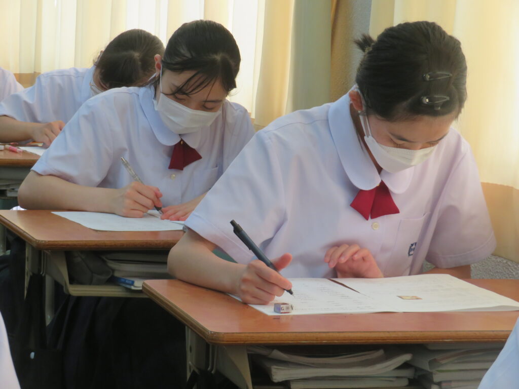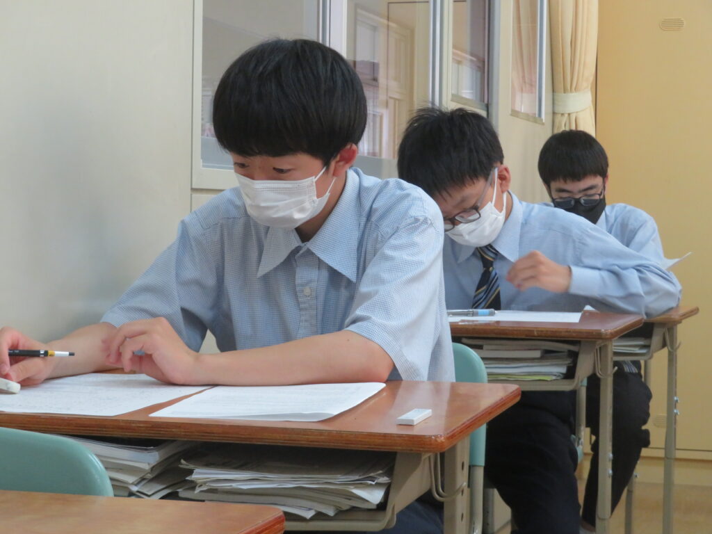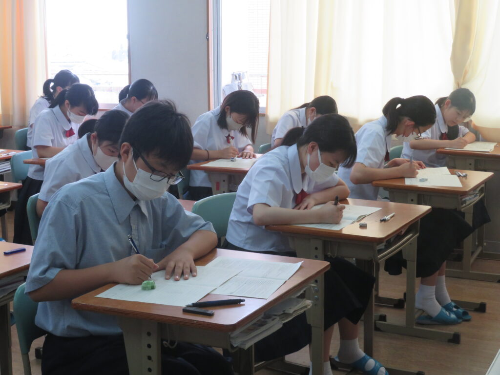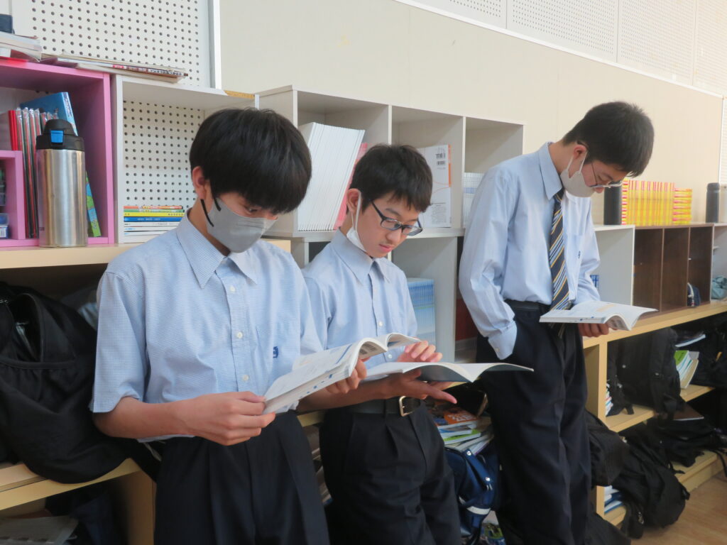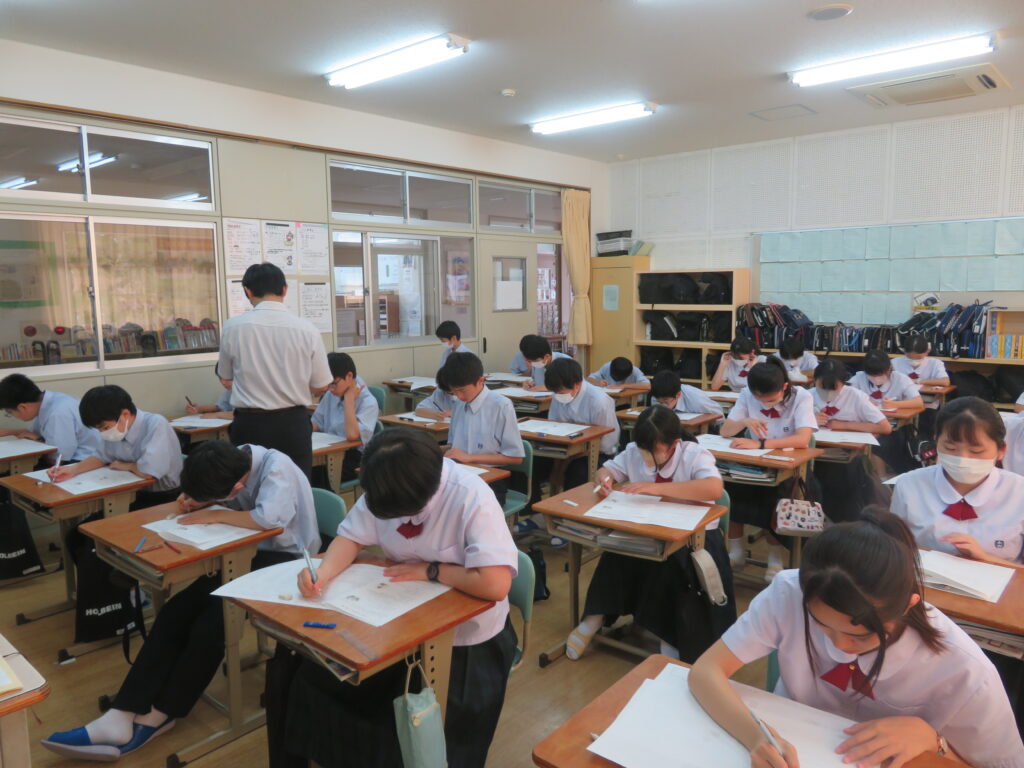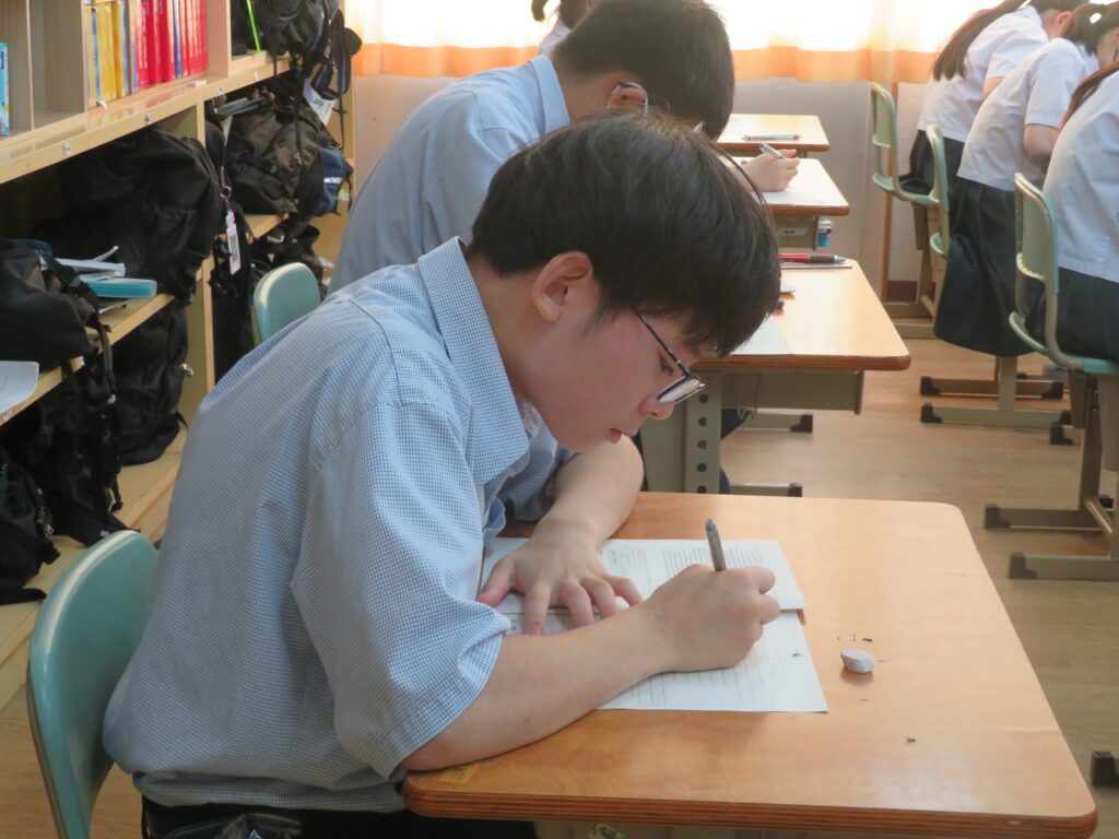 本日、第2回定期考査2日目です。休み時間は、自分でまとめたノートや教材を黙々と確認する姿や、友人同時で問題を出し合って最終確認をする姿が見られます。どの学年も真剣です。