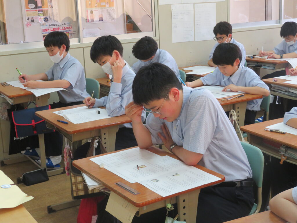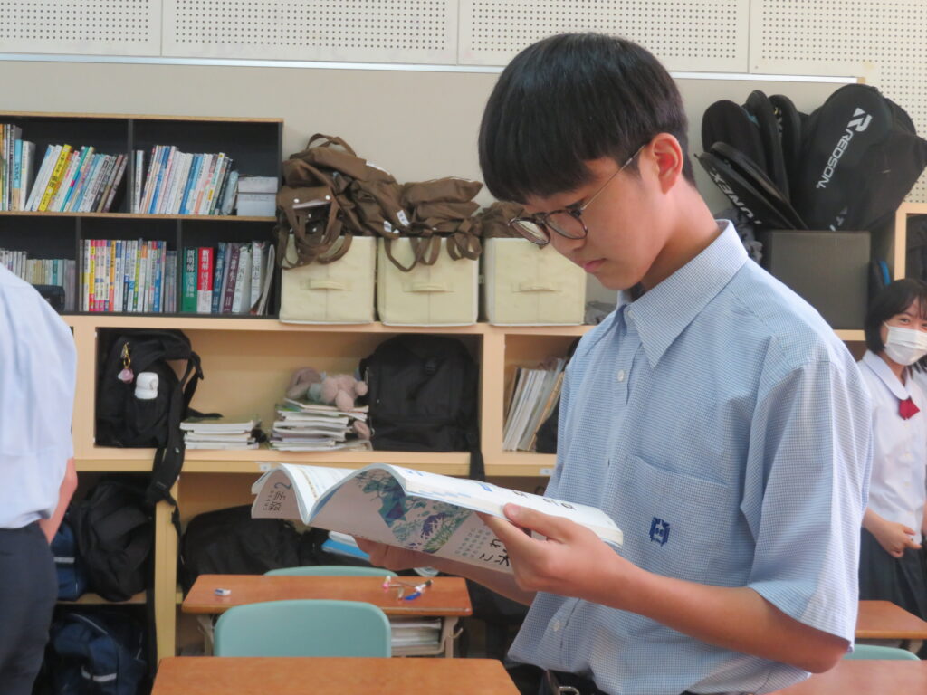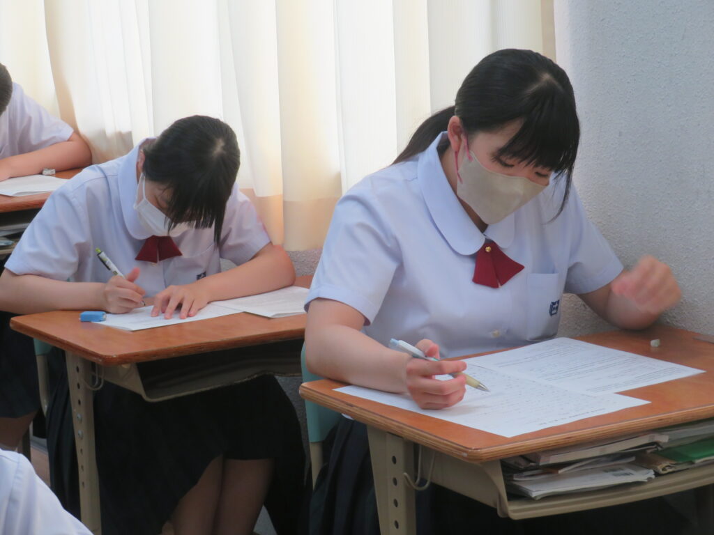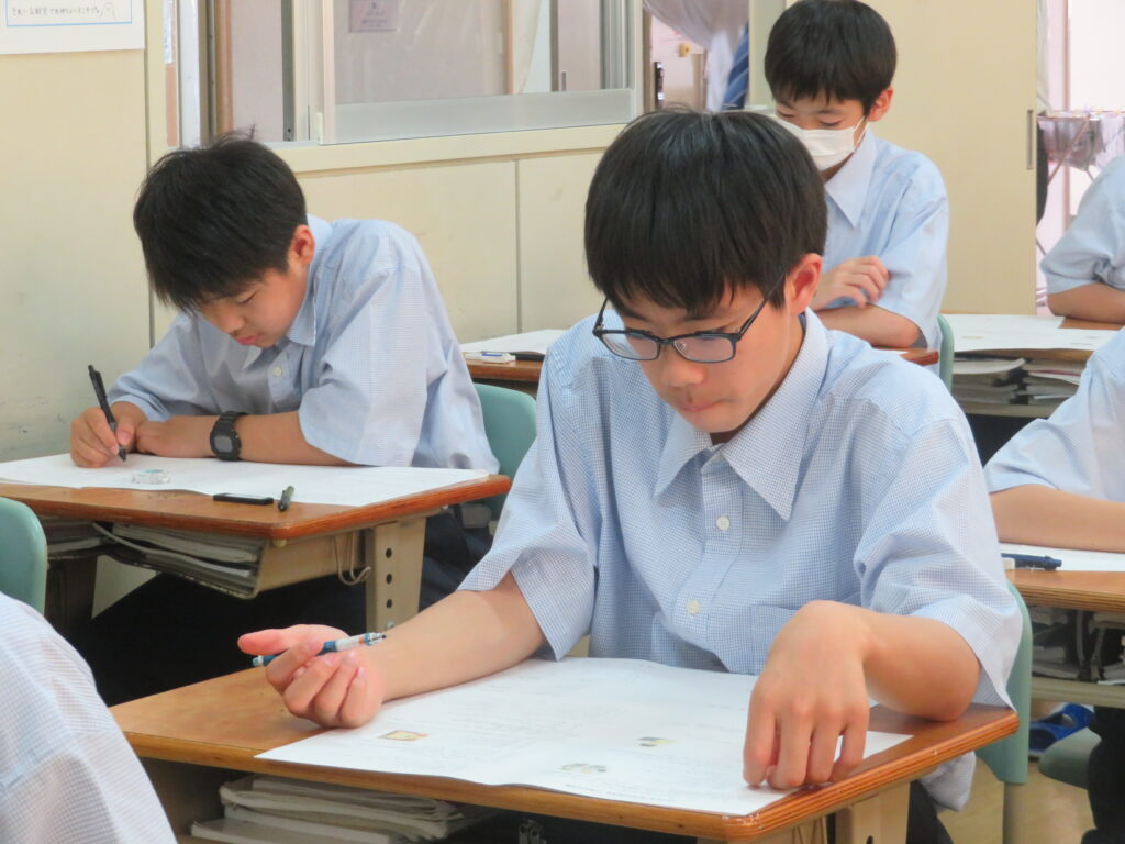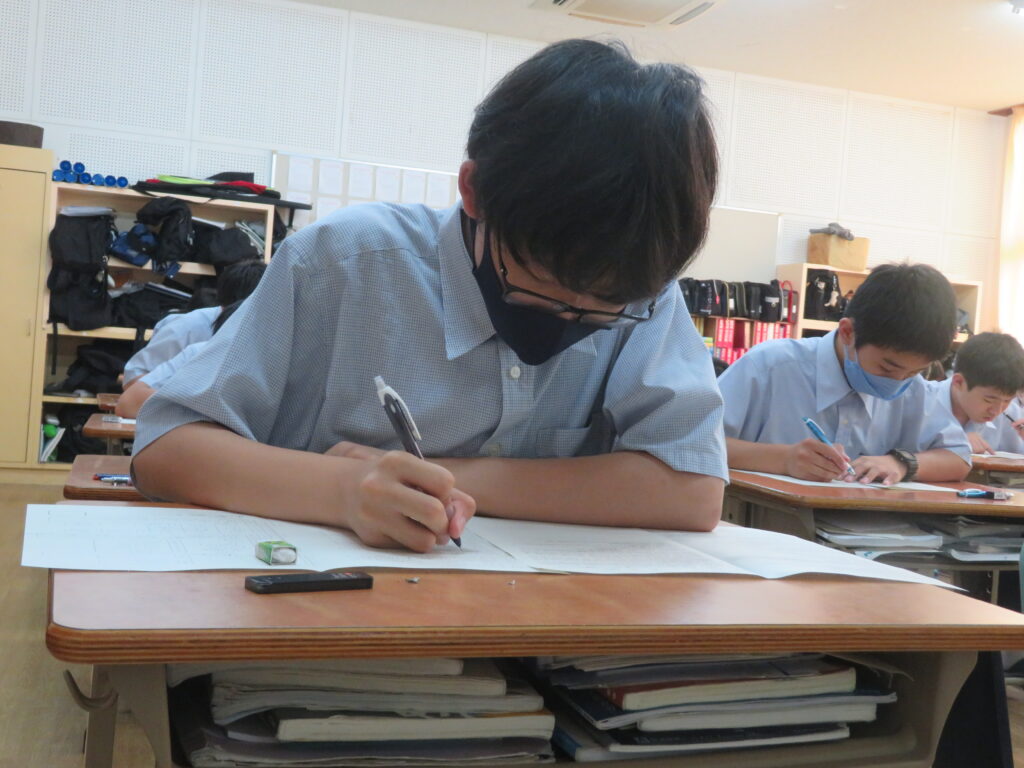 本日、第2回定期考査2日目です。休み時間は、自分でまとめたノートや教材を黙々と確認する姿や、友人同時で問題を出し合って最終確認をする姿が見られます。どの学年も真剣です。