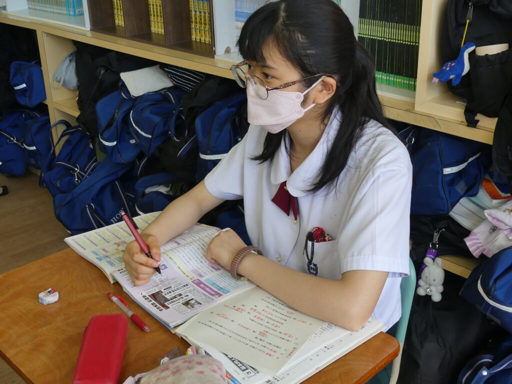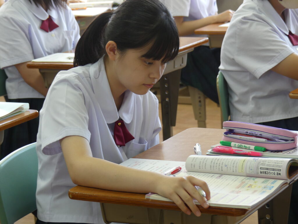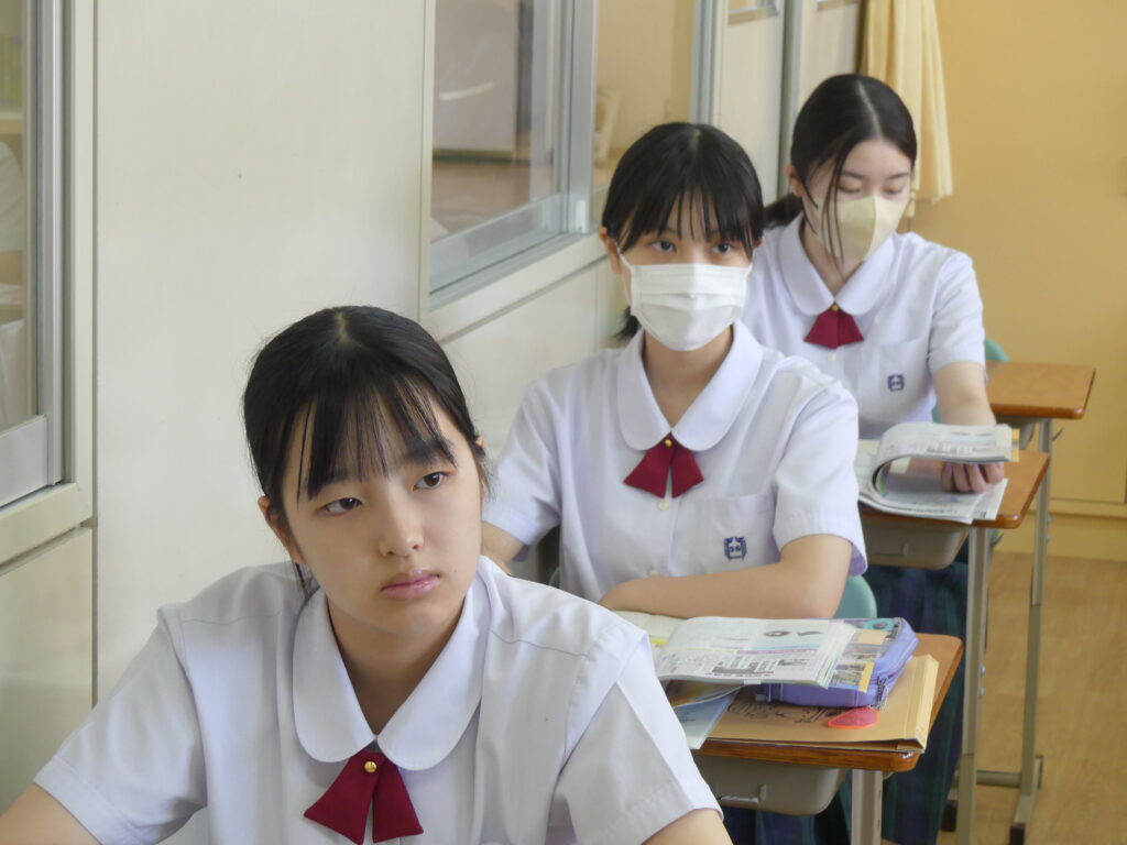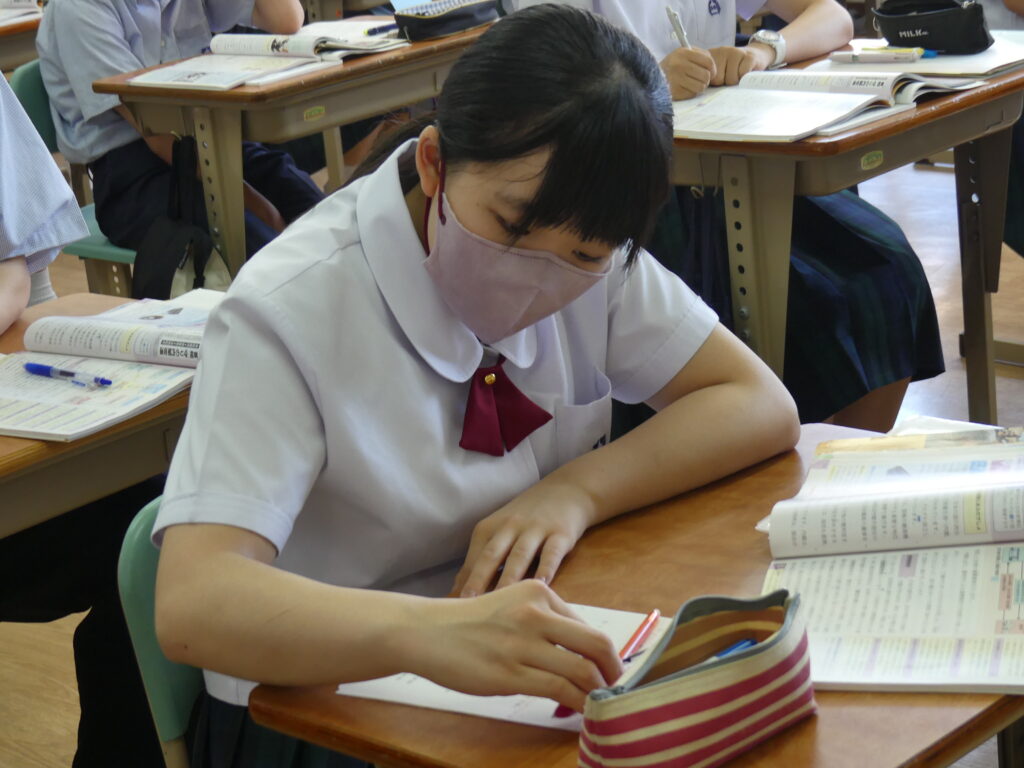 生徒と対話する中で、最近の話題などをからめて行う授業展開がなされていました。