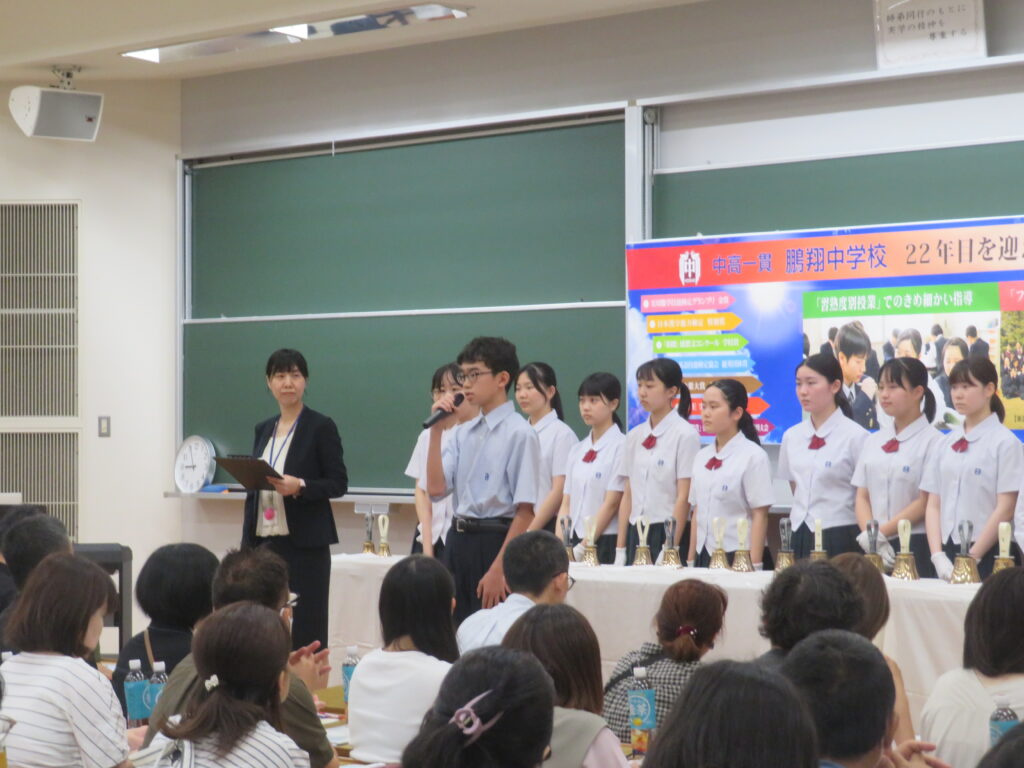 まず初めに、合唱部・ハンドベル部による合唱と演奏を聴いていただきました。