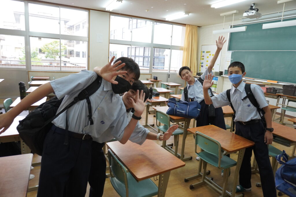 カメラに気づくと、にこにこ笑顔をくれました‼︎明日も暑くなるようです。暑さに負けず、にこにこ笑顔で過ごせるよう体調管理に努めましょう。明日も元気に登校してきてください‼︎