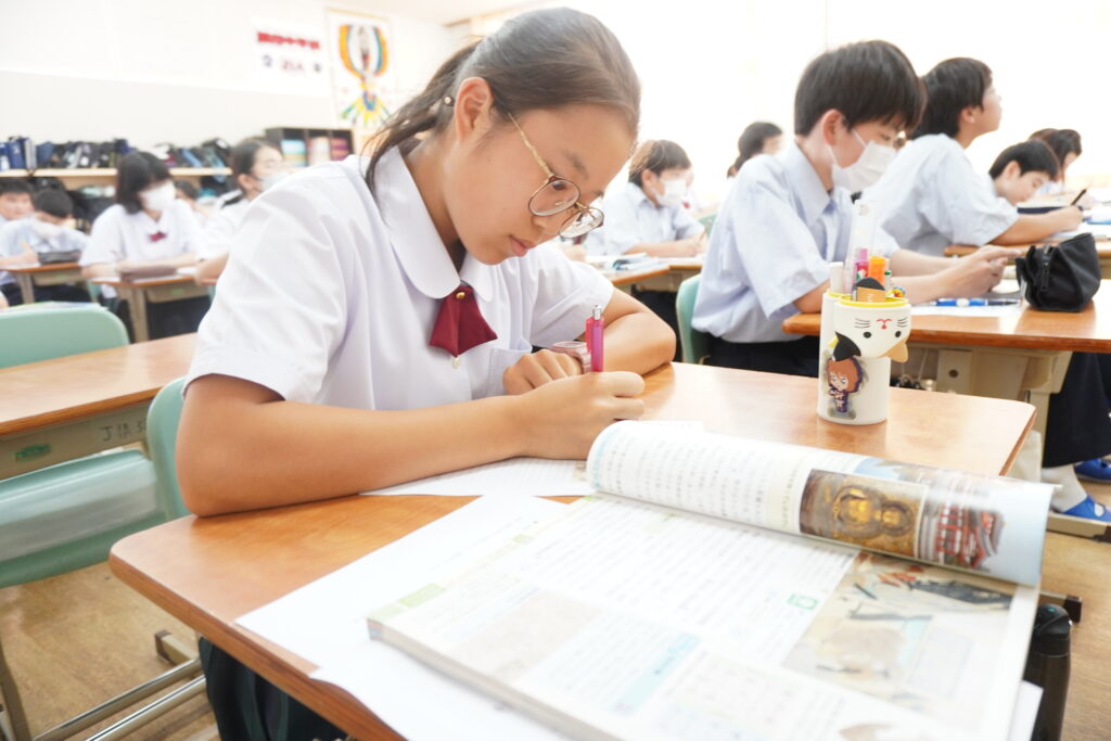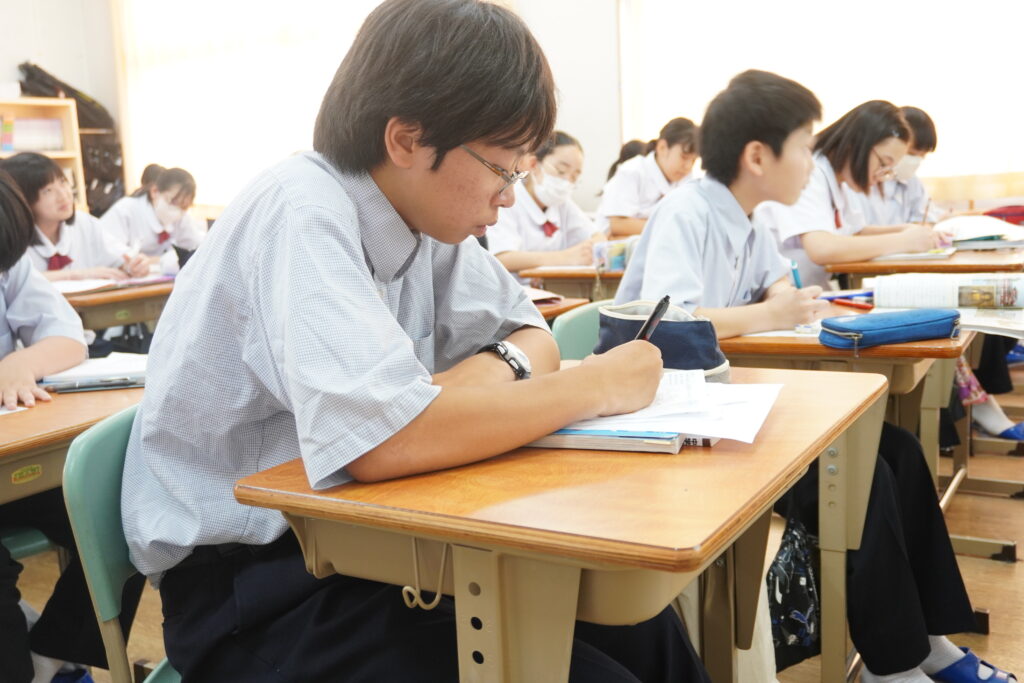 課外期間では5教科を集中的に学習しています。本日のJ1では、歴史と理科の授業が行われていました。