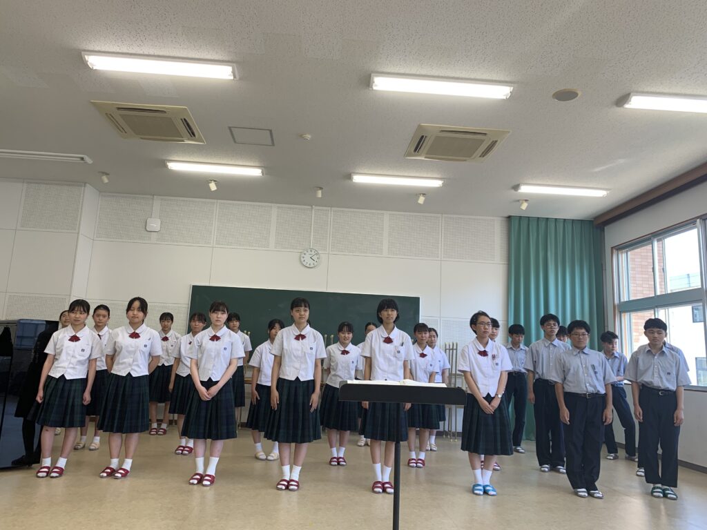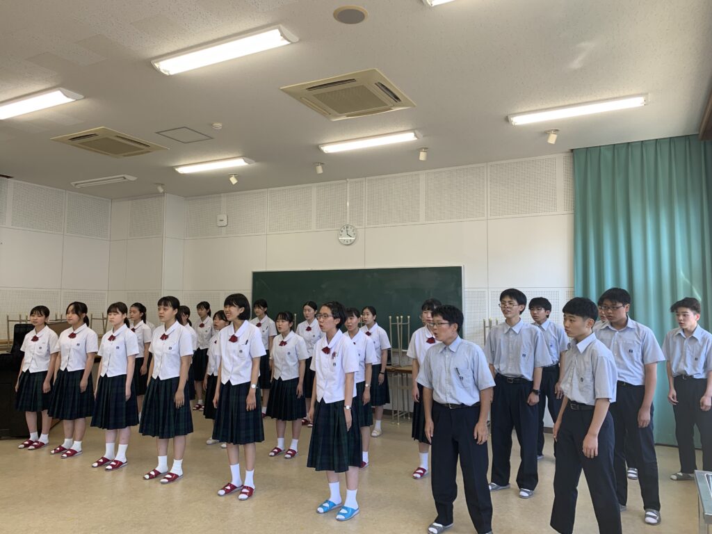 本番を1週間後に控えた合唱部の部員たちは緊張の表情がありながらも、楽しく歌う姿が印象的でした。美しいハーモニーが音楽室に響き渡っていました。