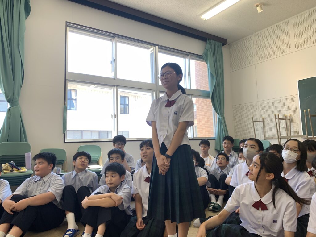 在校生を代表してJ1A石山明依さん(大淀小出身)が激励の言葉を述べてくれました。