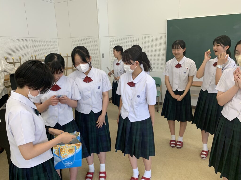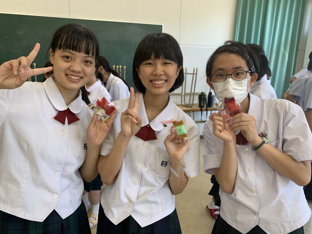 また、高校1年生の岩切悠さん(高鍋西小出身)から、1人1人に手作りのお守りが渡されました。お守りを受け取った部員たちは非常に嬉しそうでした!
