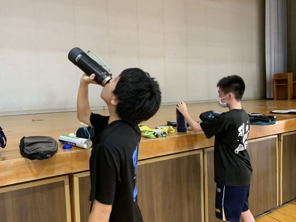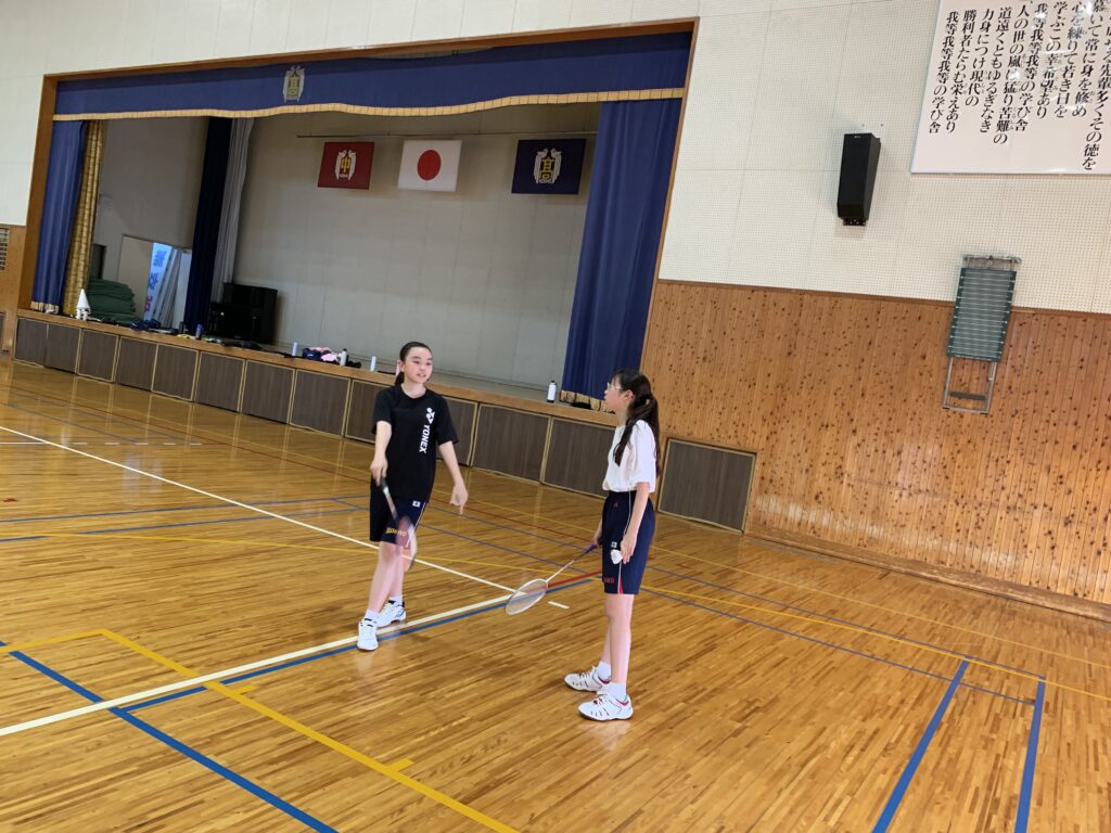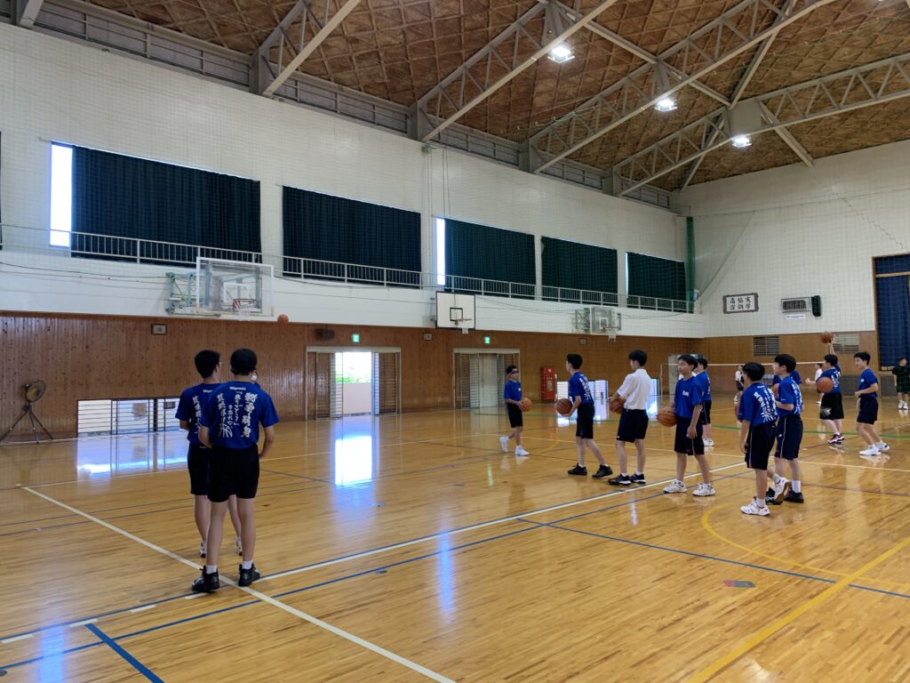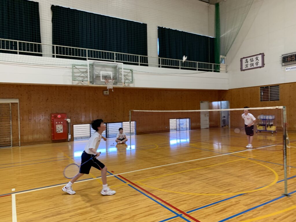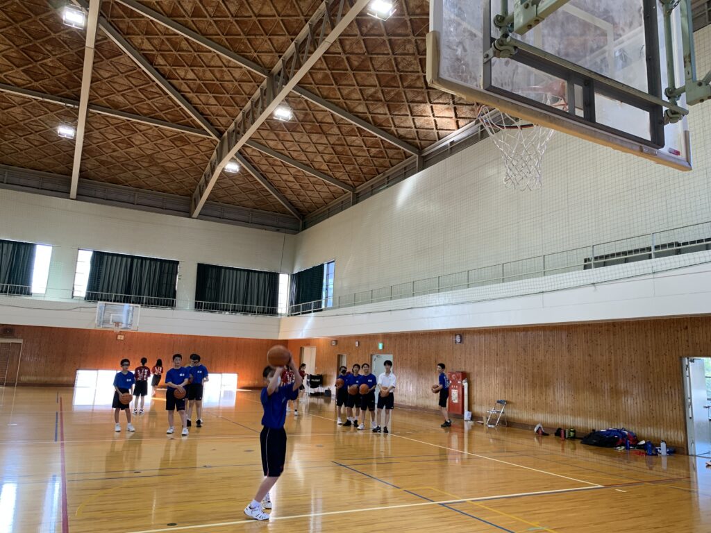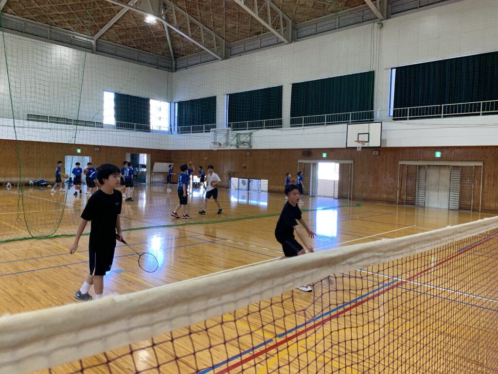 夏期課外中も、バドミントン部とバスケットボール部は体育館で練習に励んでいます。両部活とも準備運動アップを入念に行い、こまめに休憩水分補給をしながら汗を流していました。
