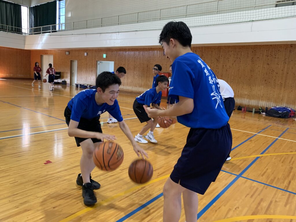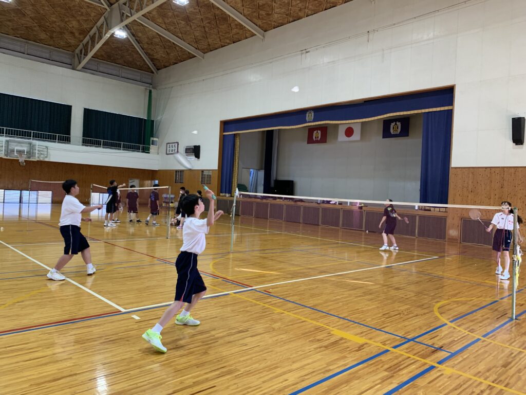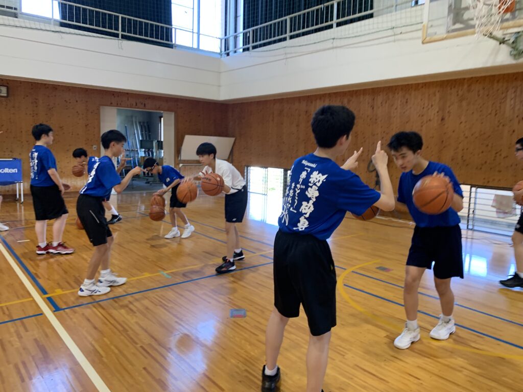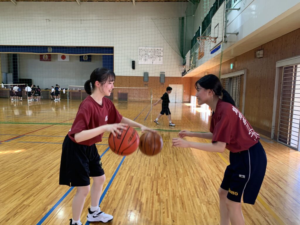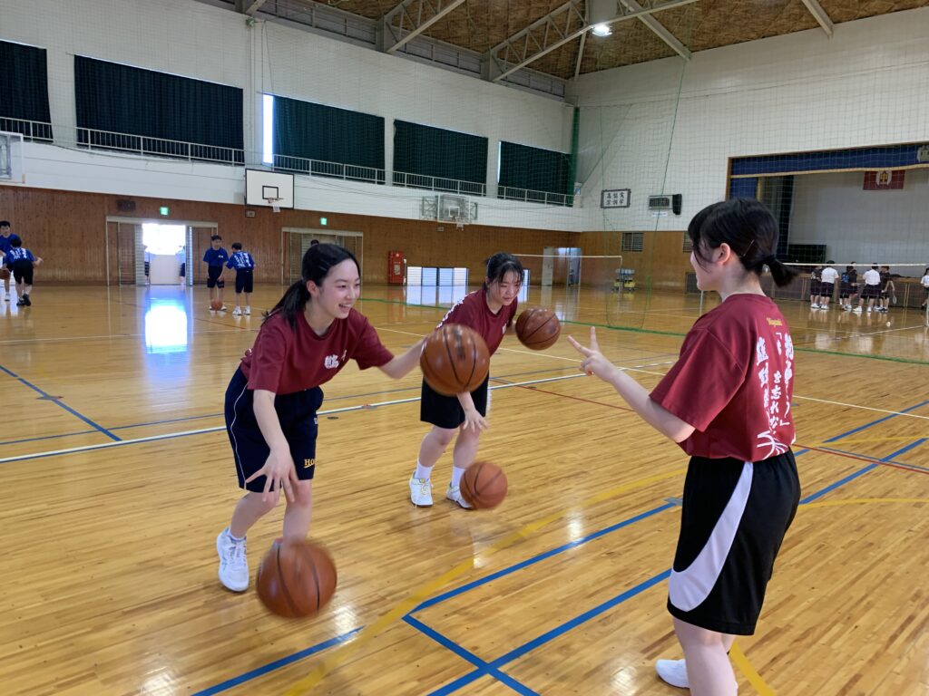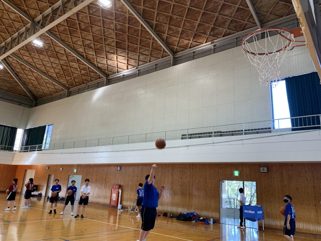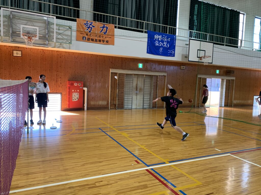 夏期課外中も、バドミントン部とバスケットボール部は体育館で練習に励んでいます。両部活とも準備運動アップを入念に行い、こまめに休憩水分補給をしながら汗を流していました。