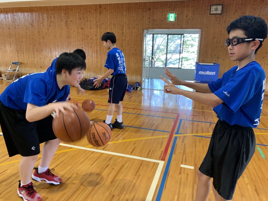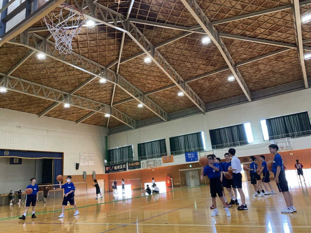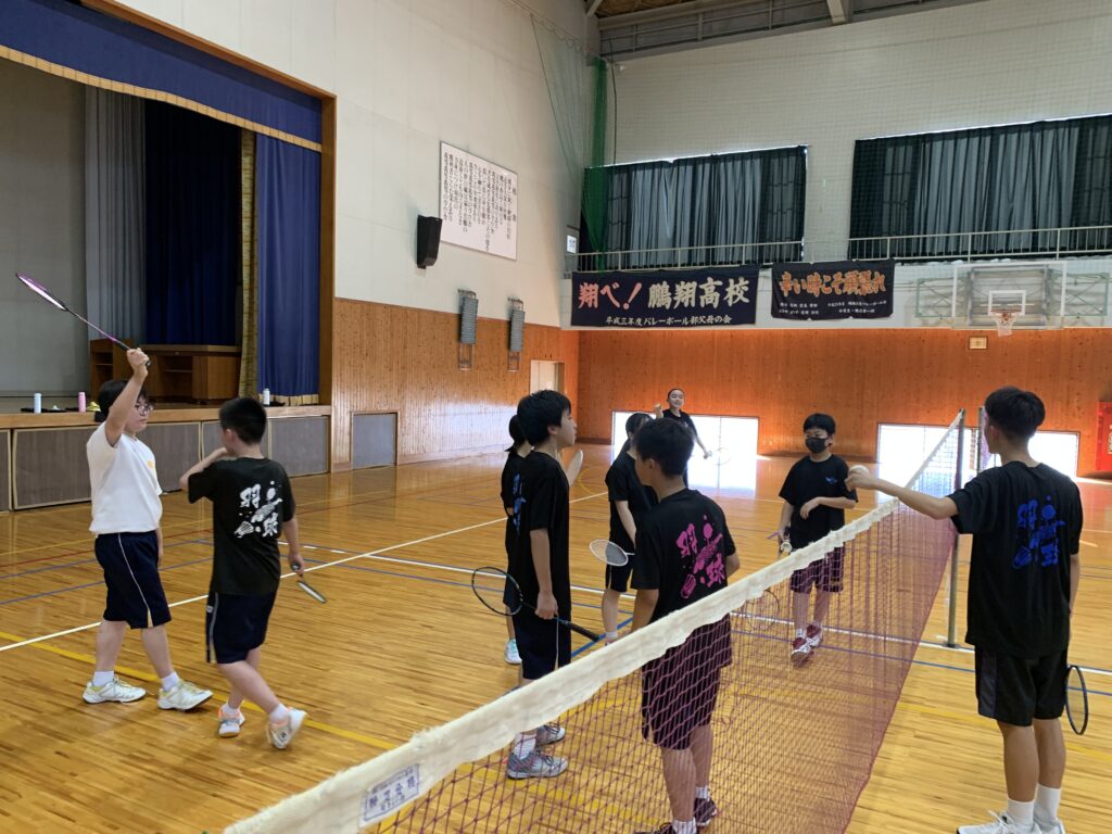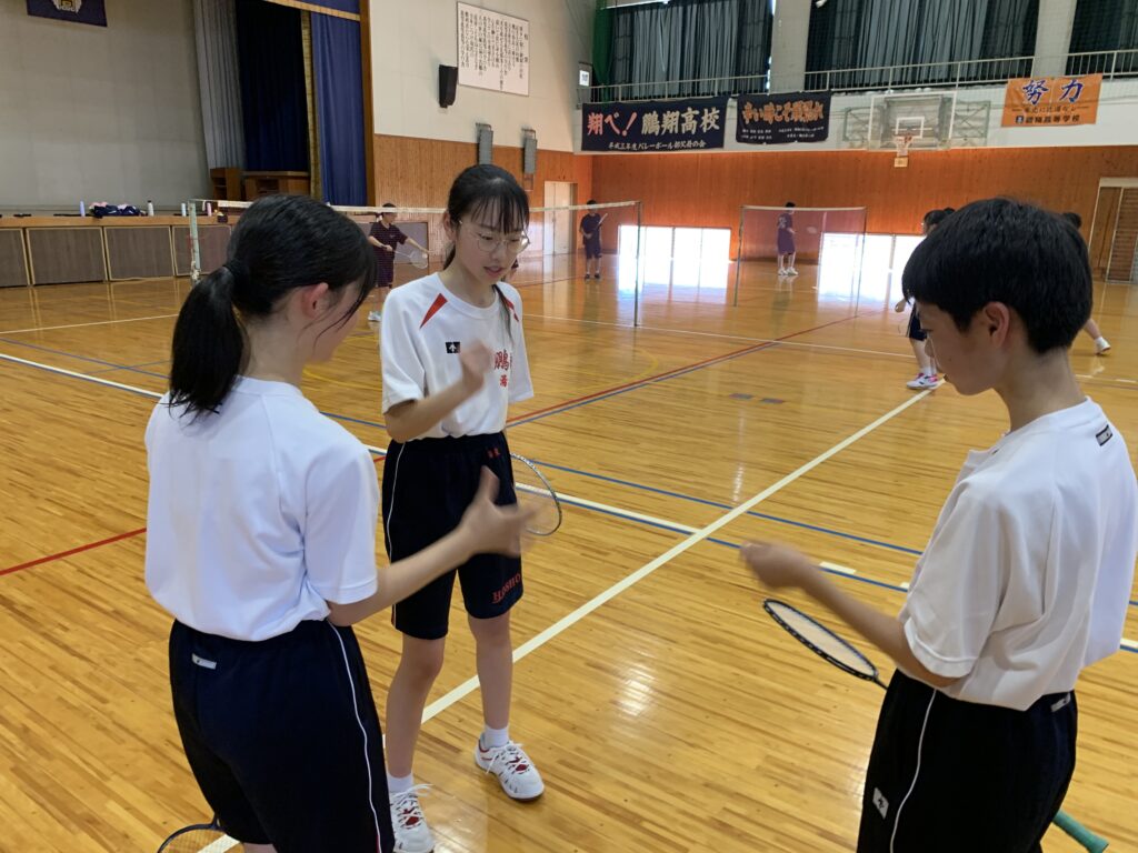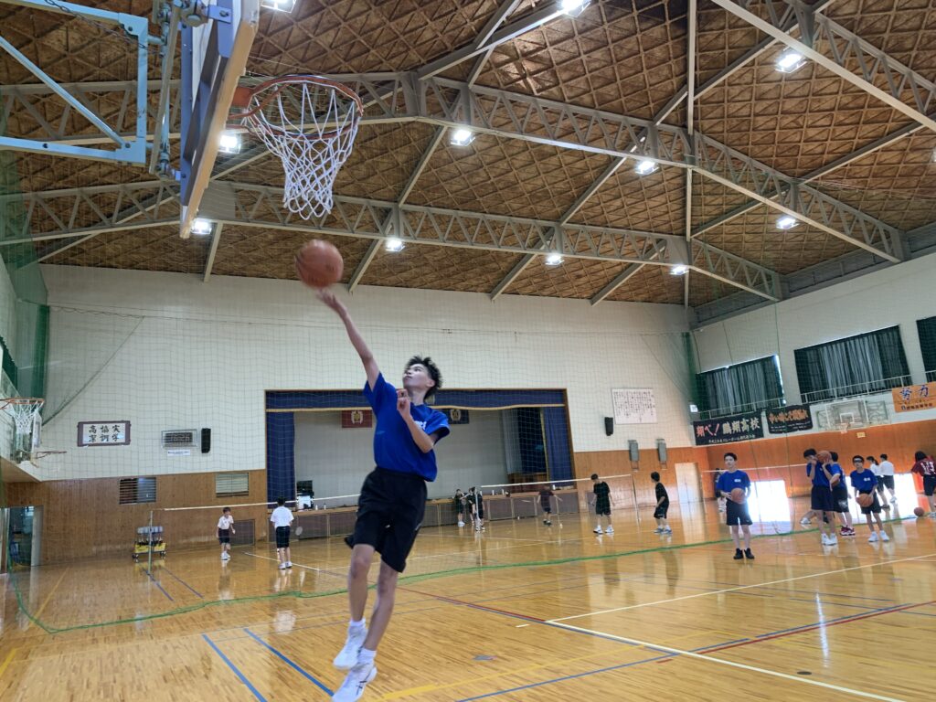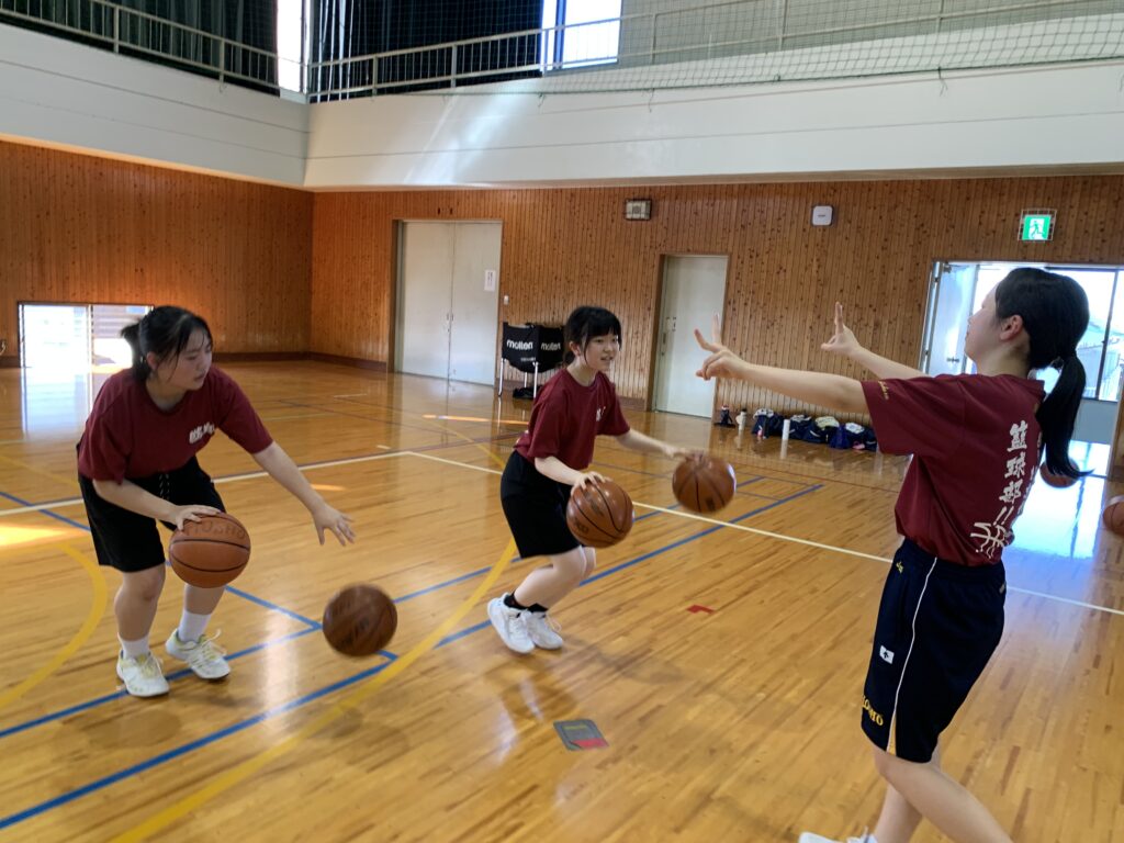 夏期課外中も、バドミントン部とバスケットボール部は体育館で練習に励んでいます。両部活とも準備運動アップを入念に行い、こまめに休憩水分補給をしながら汗を流していました。