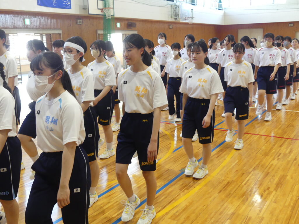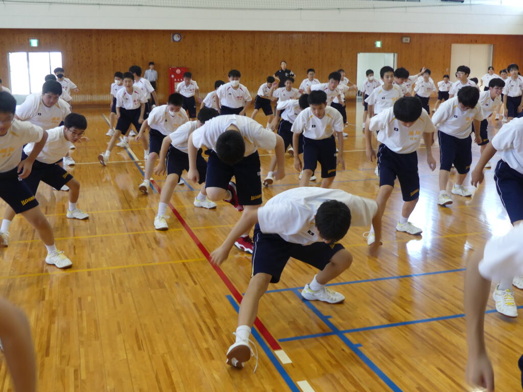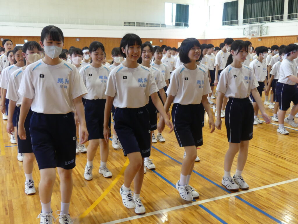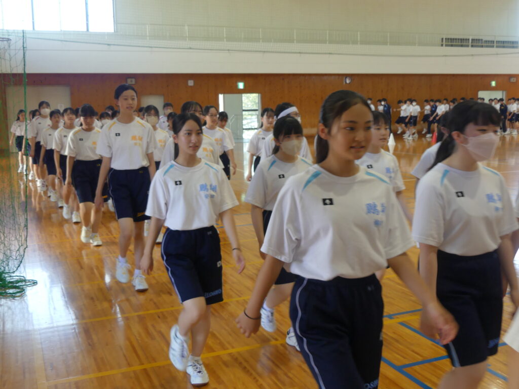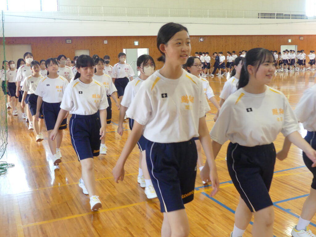 本日は体育大会に向けて、全学年合同の体育が行われました。天気も良く、暑い中ではありましたが、生徒のみなさん、体育の先生の話をしっかり聞きながら、練習を頑張っていました。