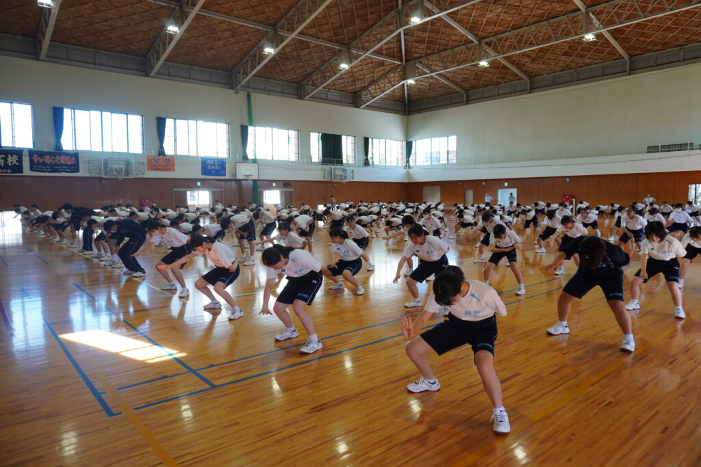 昨日に引き続き体育大会練習が行われました。今日はまずソーラン節の練習からです。どの学年も大きな掛け声で懸命に頑張っていました。