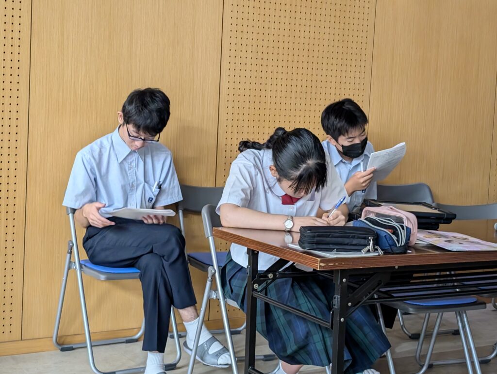 J1生は緊張した様子でしたが、流れの確認をしっかり行いました。生徒会役員も司会進行の準備などをし、準備は万全です。