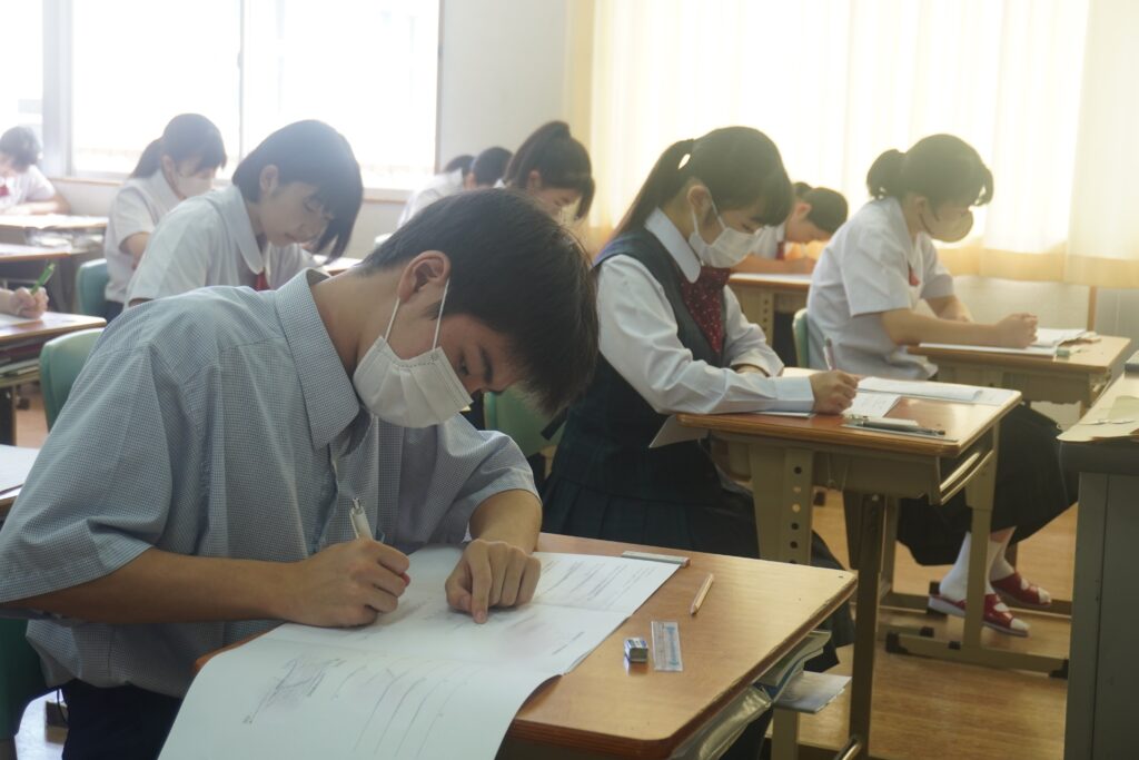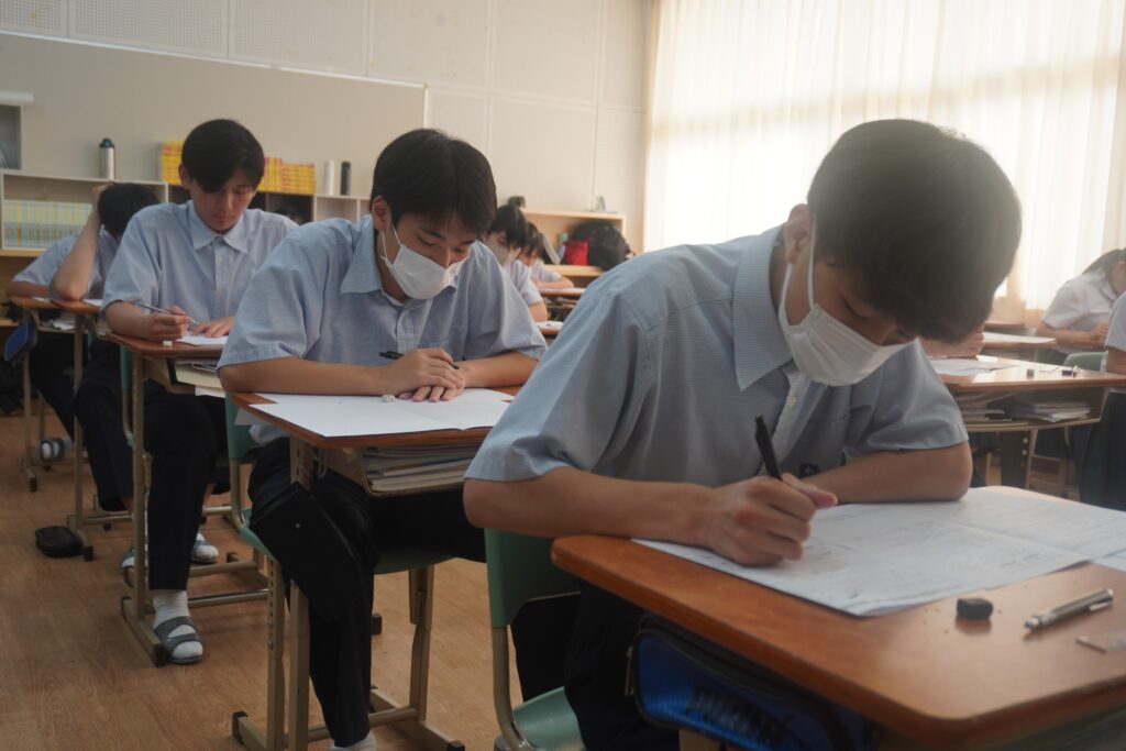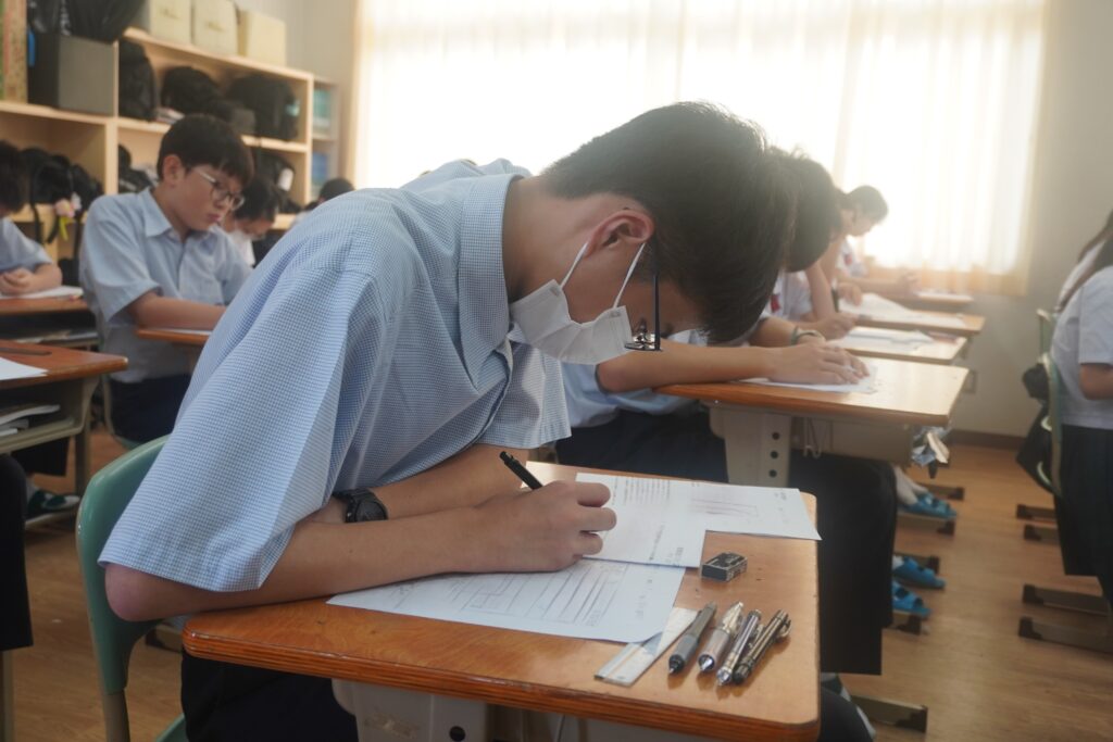本日、課題定着テストを行いました。 今までの学習がどれくらい定着しているかを把握し、今後の勉強の効率化に役立ててください。 明日J2・J3生は朝課外があります。時間に余裕をもって安全に登校してきてください!
