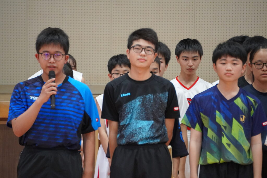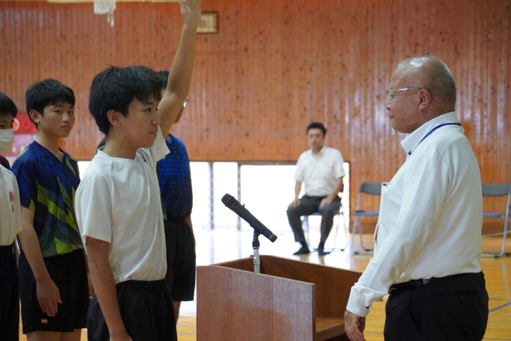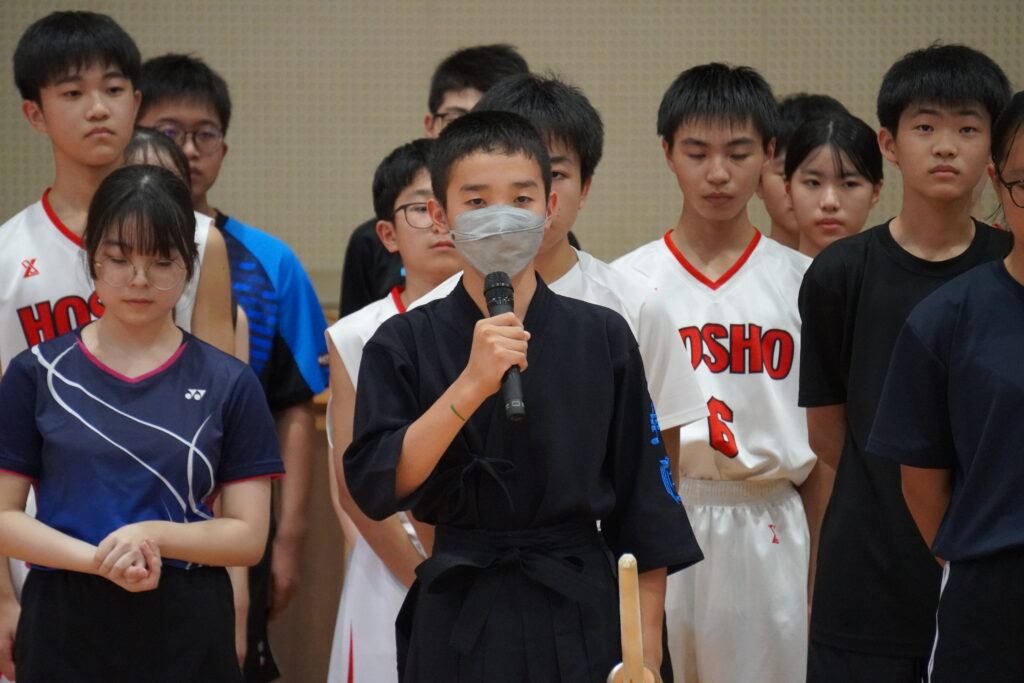 バドミントン部主将の坂本蒼晋さん(宮大附属小出身)が選手宣誓を行いました。