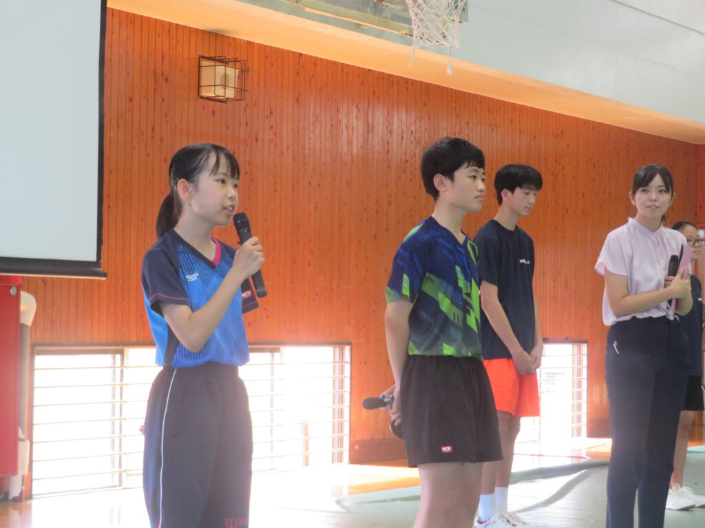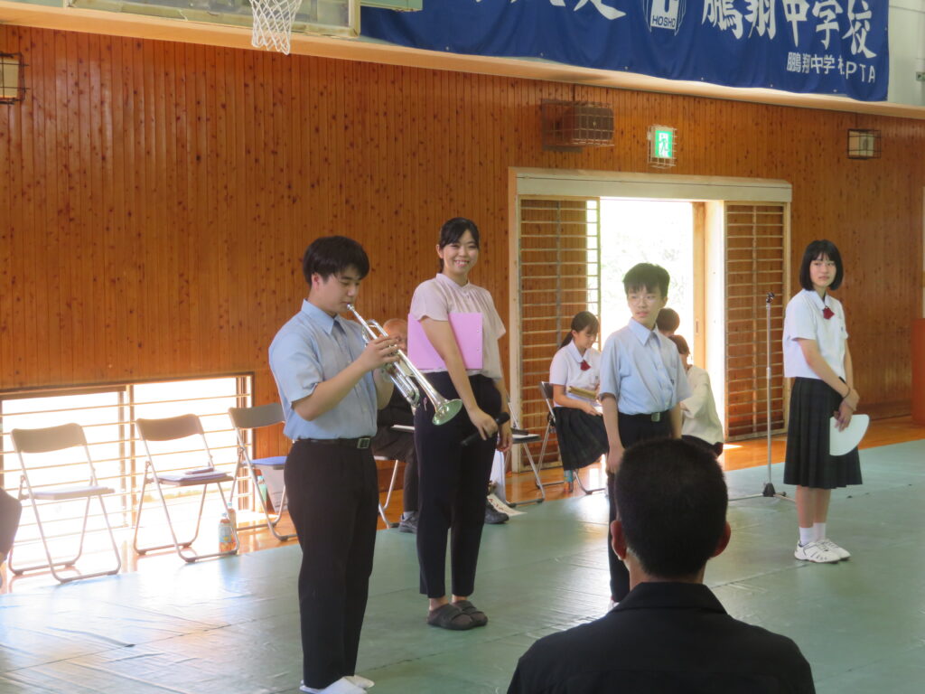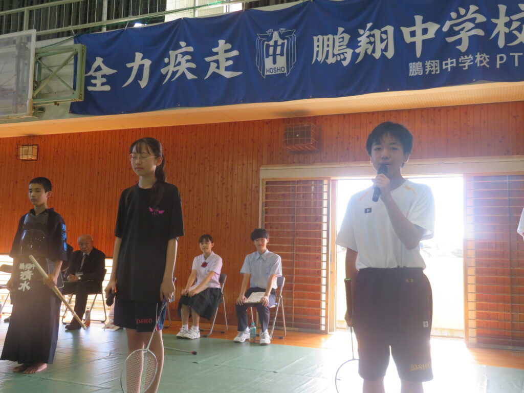 部活動紹介では、鵬翔中で活動している全部活動の紹介を行いました。どの部活動も楽しく活動していることが伝わったでしょうか。