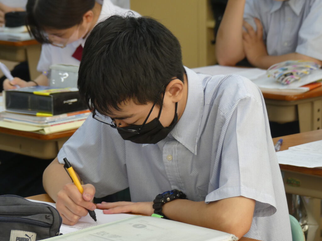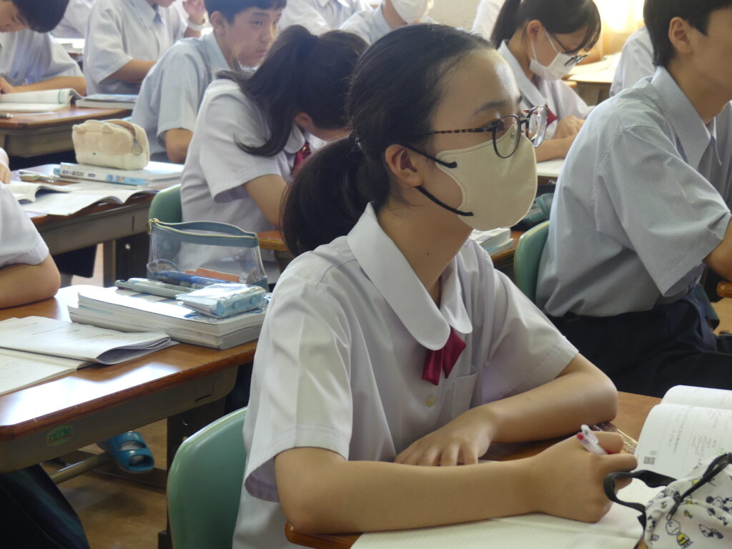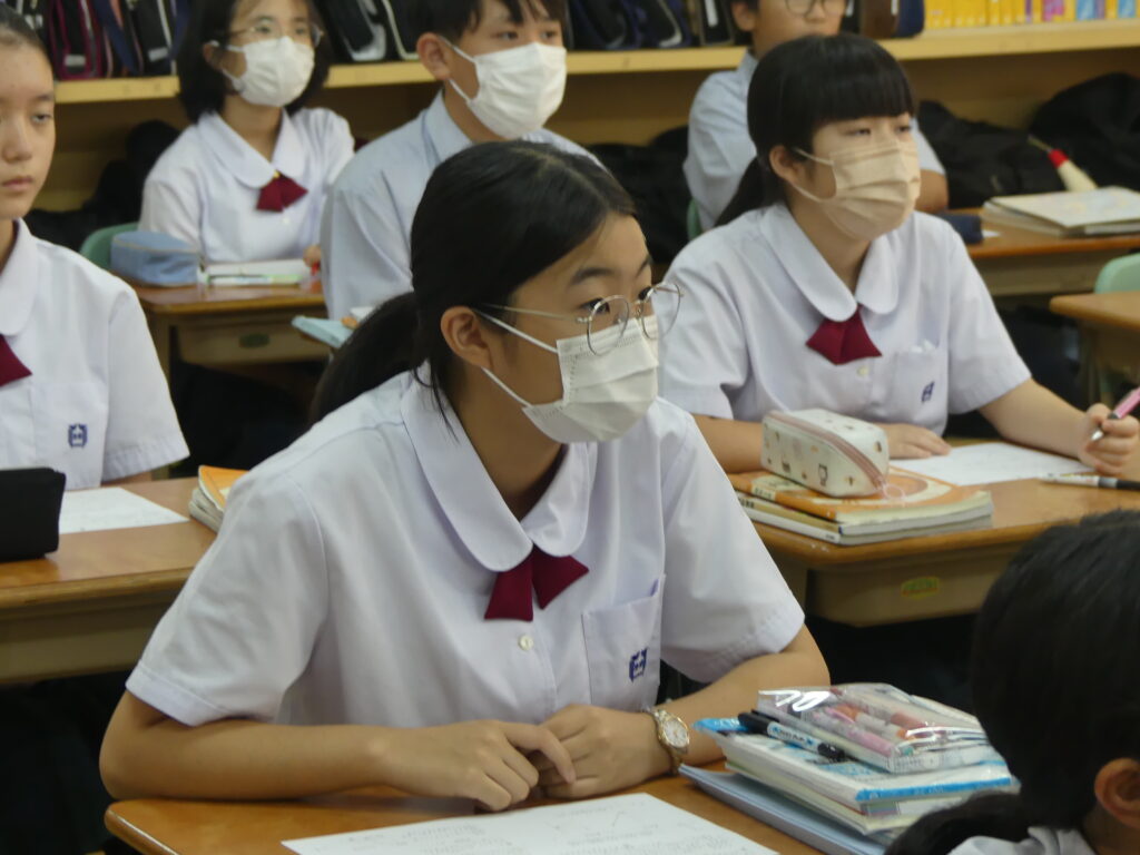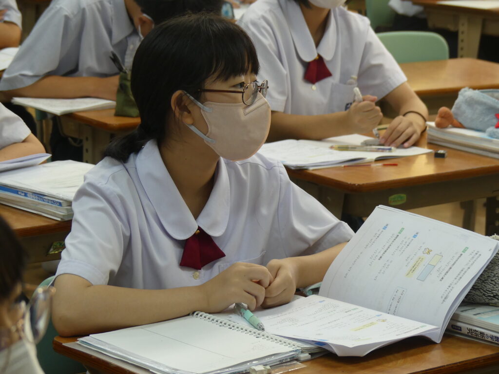 全体会終了後は、中学棟に移動していただき、在校生が実際に授業を受けている様子をみていただきました。集中し、そして楽しく授業に臨んでいる姿、鵬翔中の授業の雰囲気を感じていただけたでしょうか。