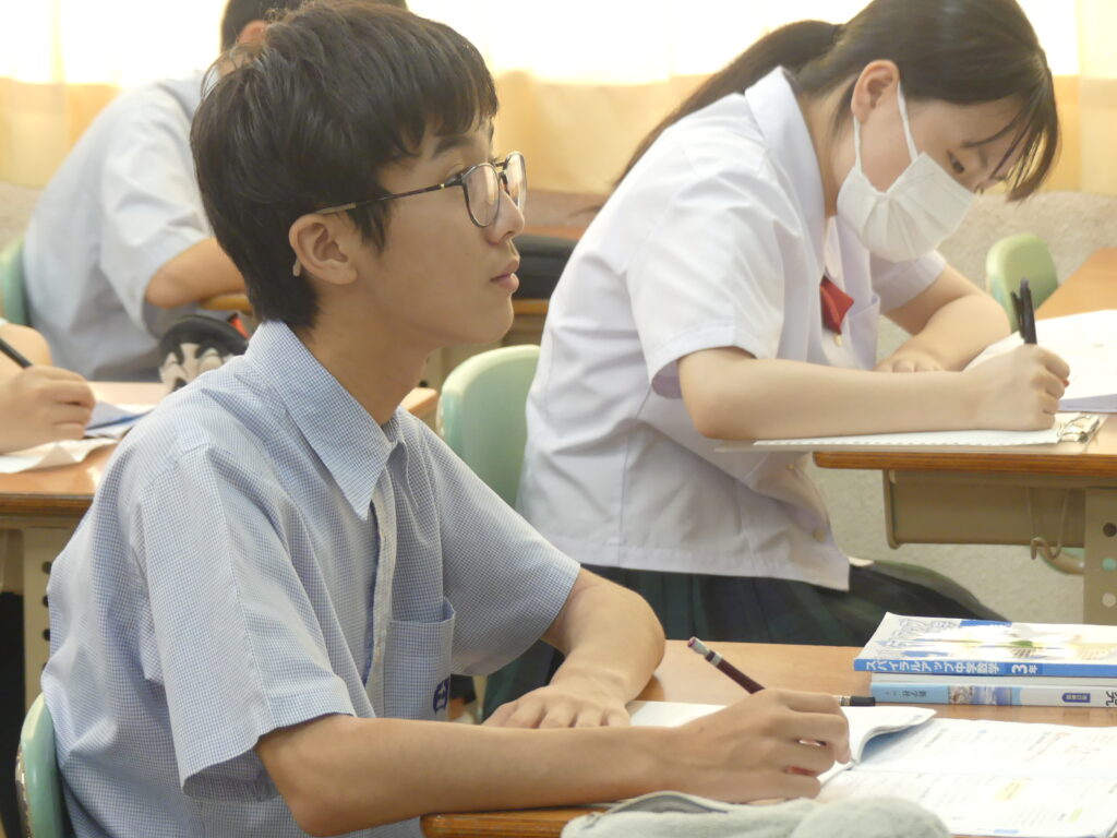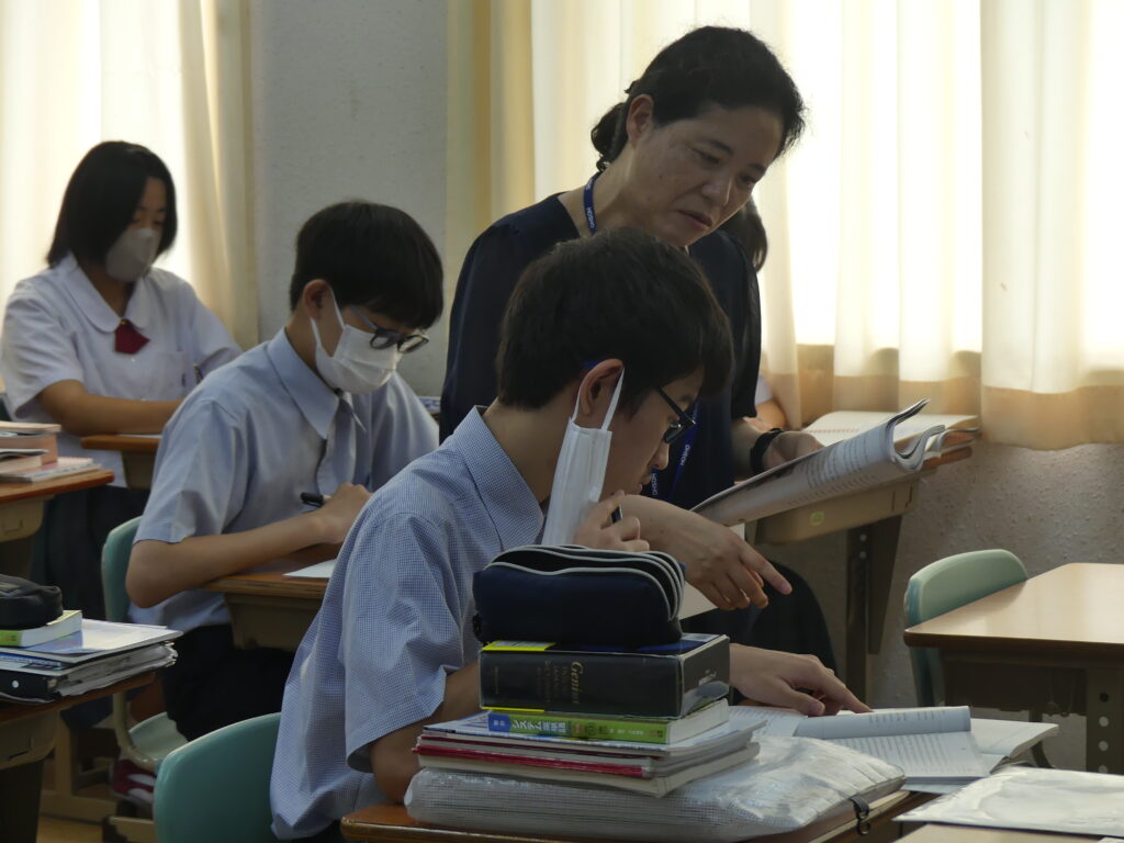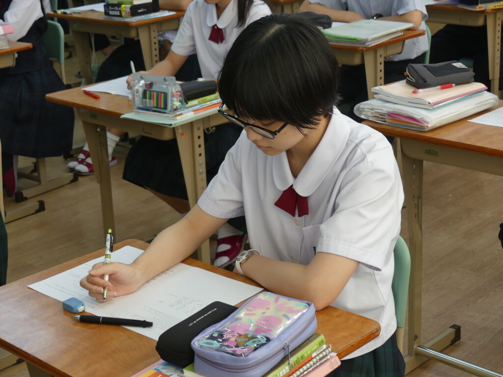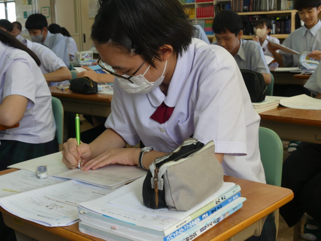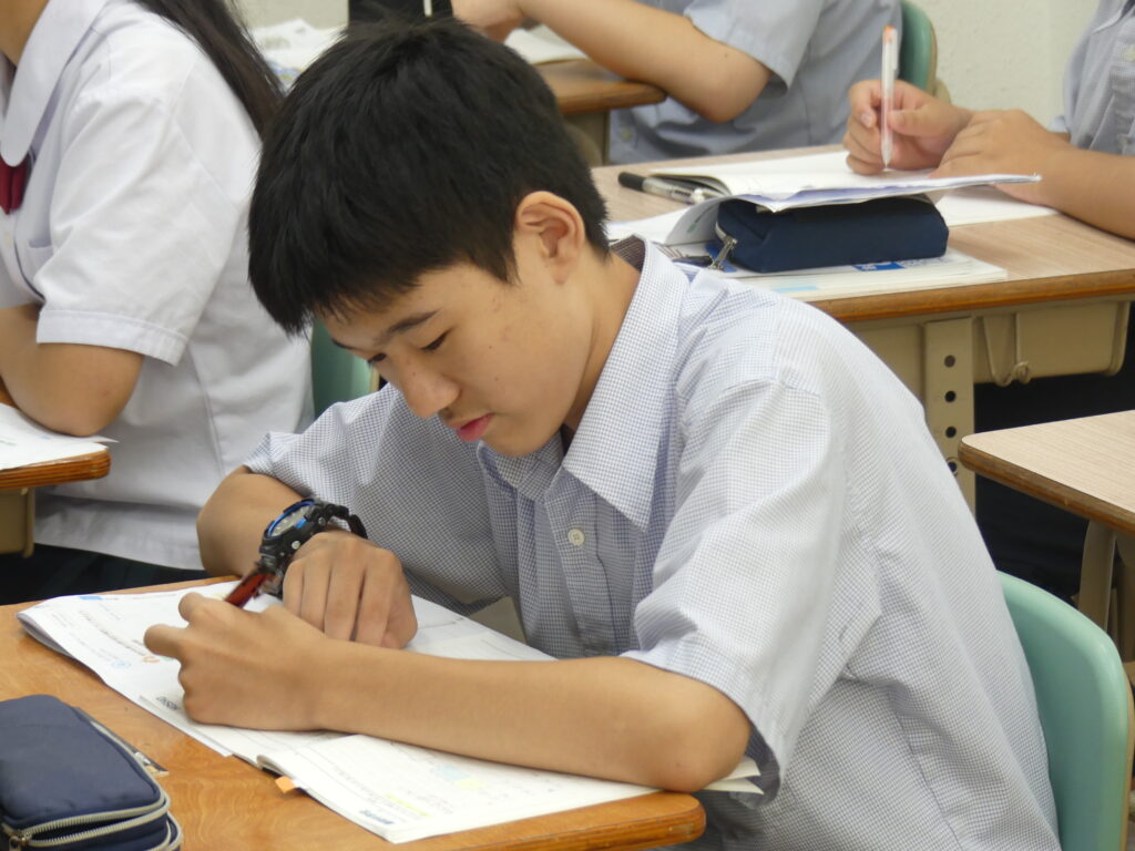 全体会終了後は、中学棟に移動していただき、在校生が実際に授業を受けている様子をみていただきました。集中し、そして楽しく授業に臨んでいる姿、鵬翔中の授業の雰囲気を感じていただけたでしょうか。